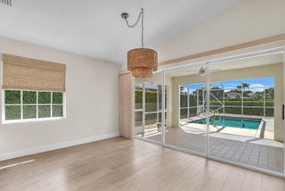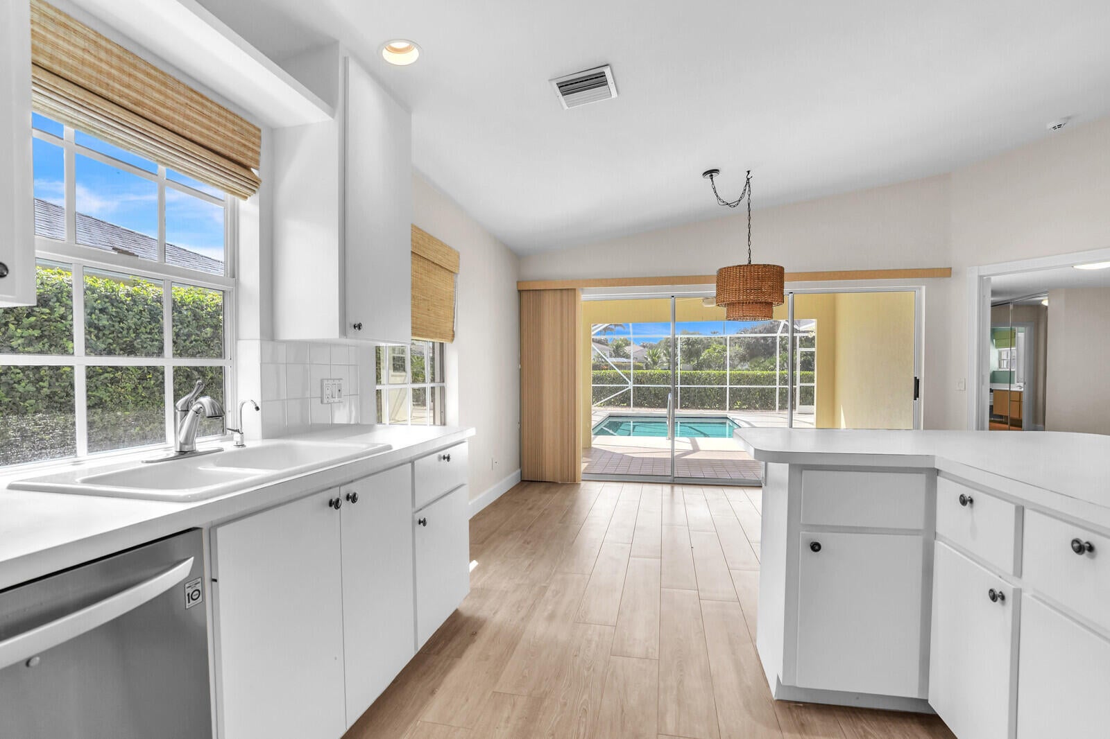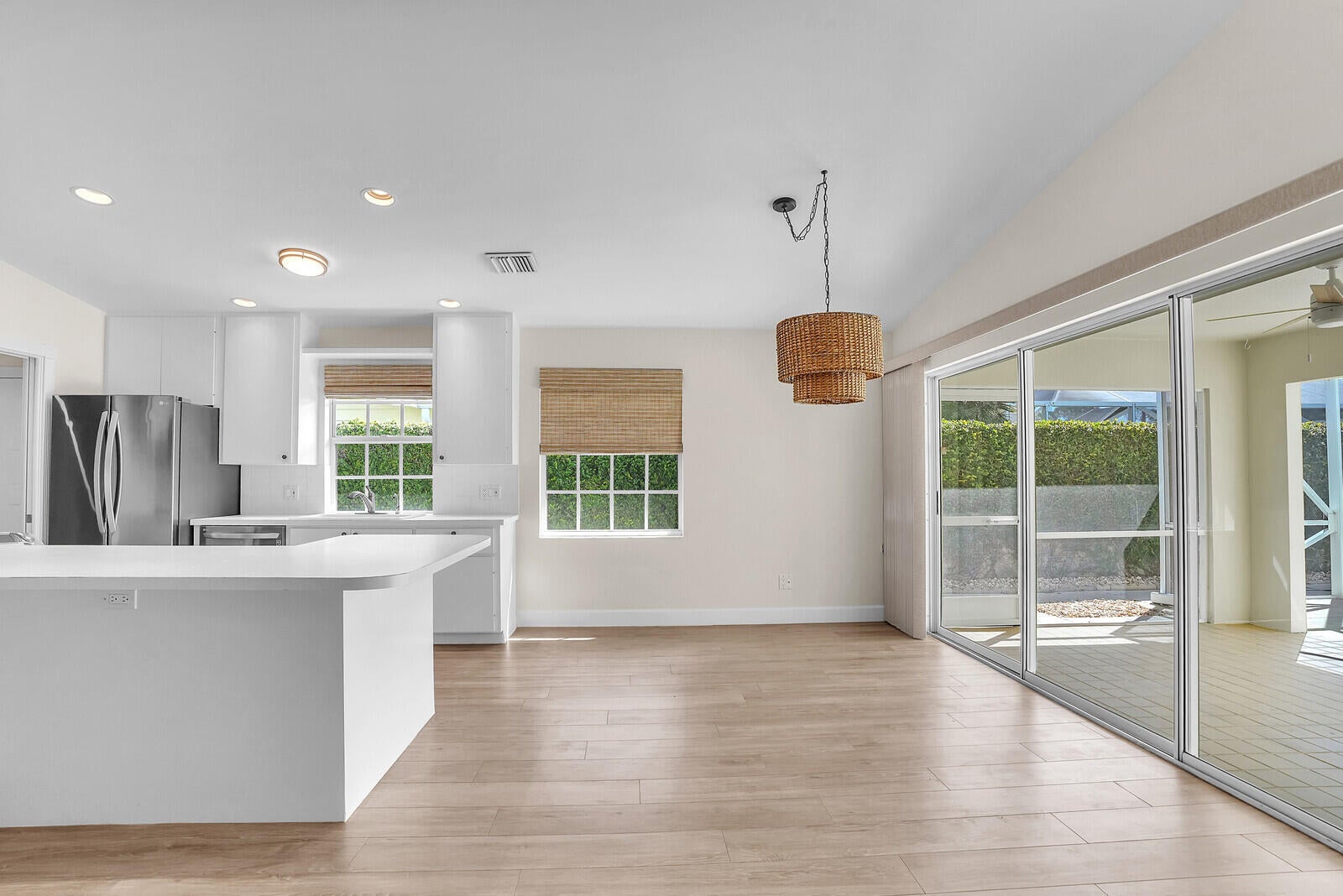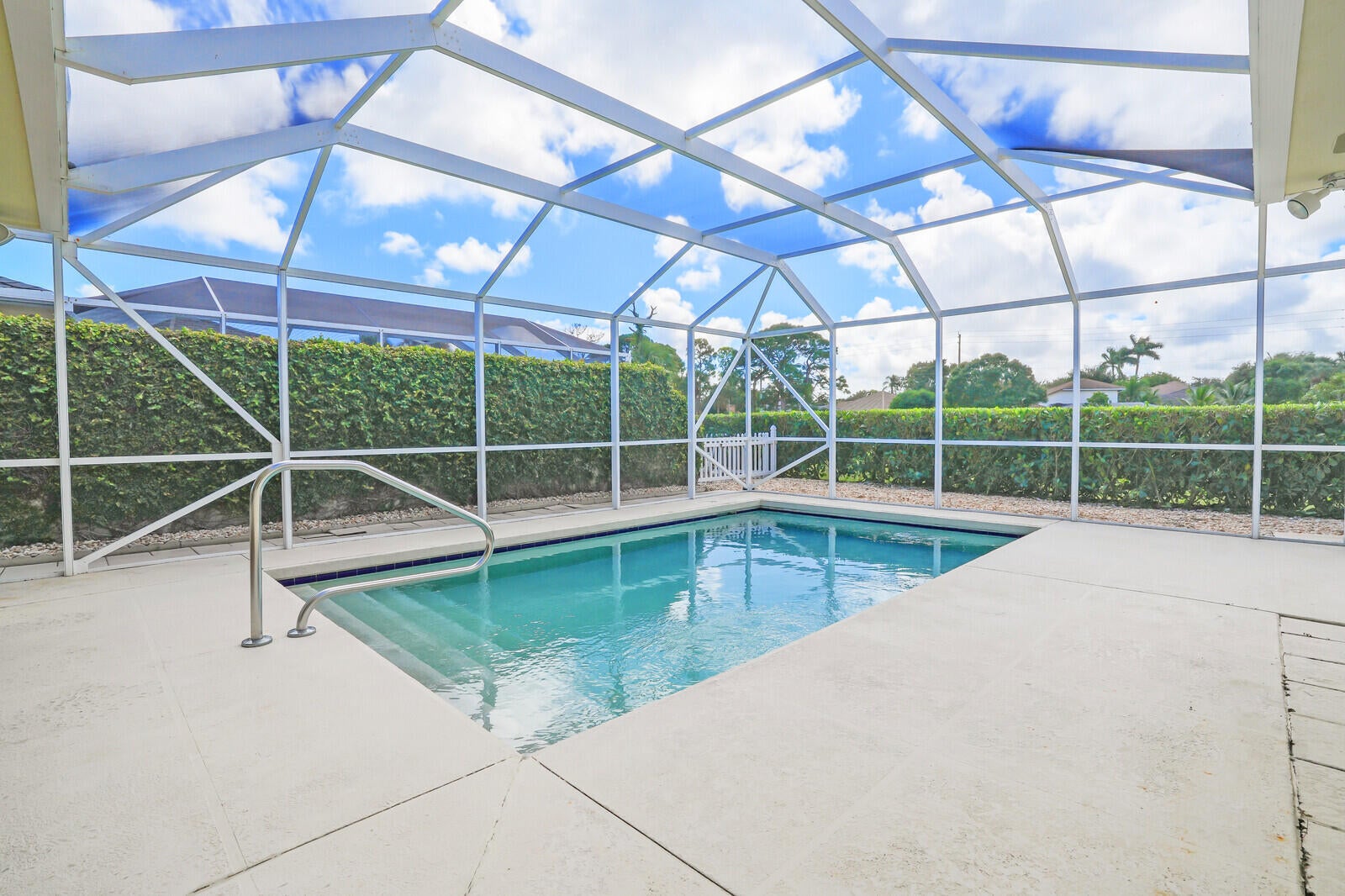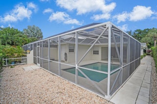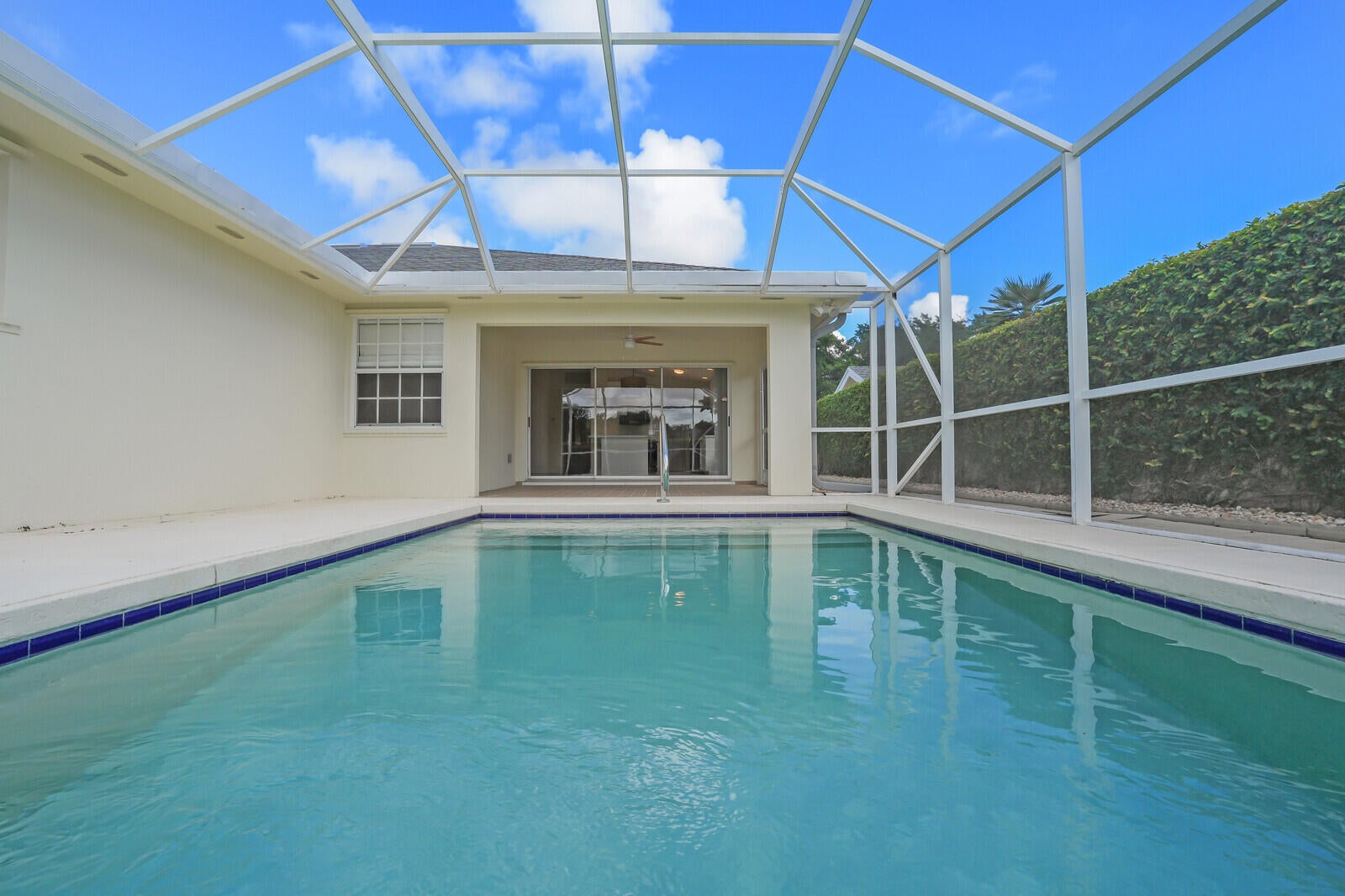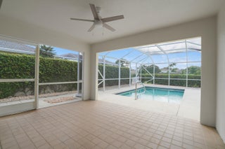 Enjoy golf course views from this bright and airy one-story CBS pool home -- and no high golf fees! This well-built DiVosta villa offers 2 spacious bedrooms, 2 bathrooms, and a 2-car garage. The open kitchen and breakfast bar connect seamlessly to the living area, leading out to a screened pool with relaxing fairway views. Recent updates include a 2022 roof, newer A/C and kitchen appliances, porcelain tile and baseboards, LED lighting, fresh interior paint, new screen, and Insta-hot water. Convenient Jupiter location close to beaches, A rated schools, restaurants, shopping, and golf.