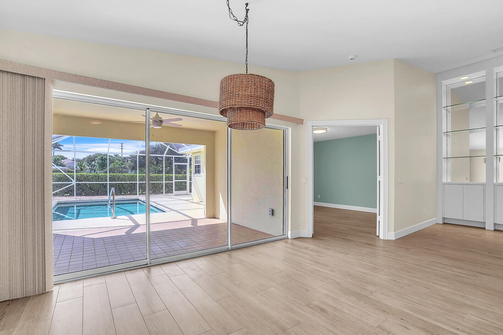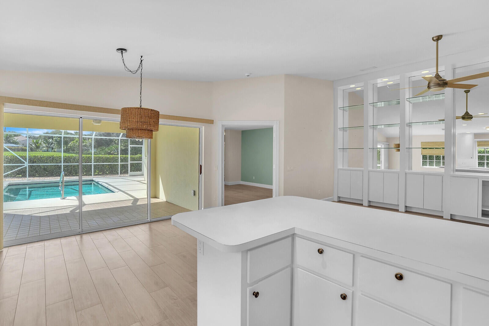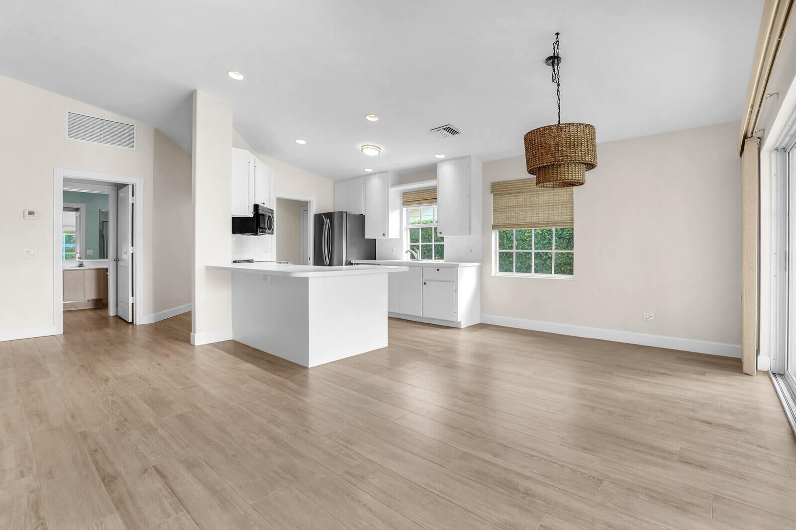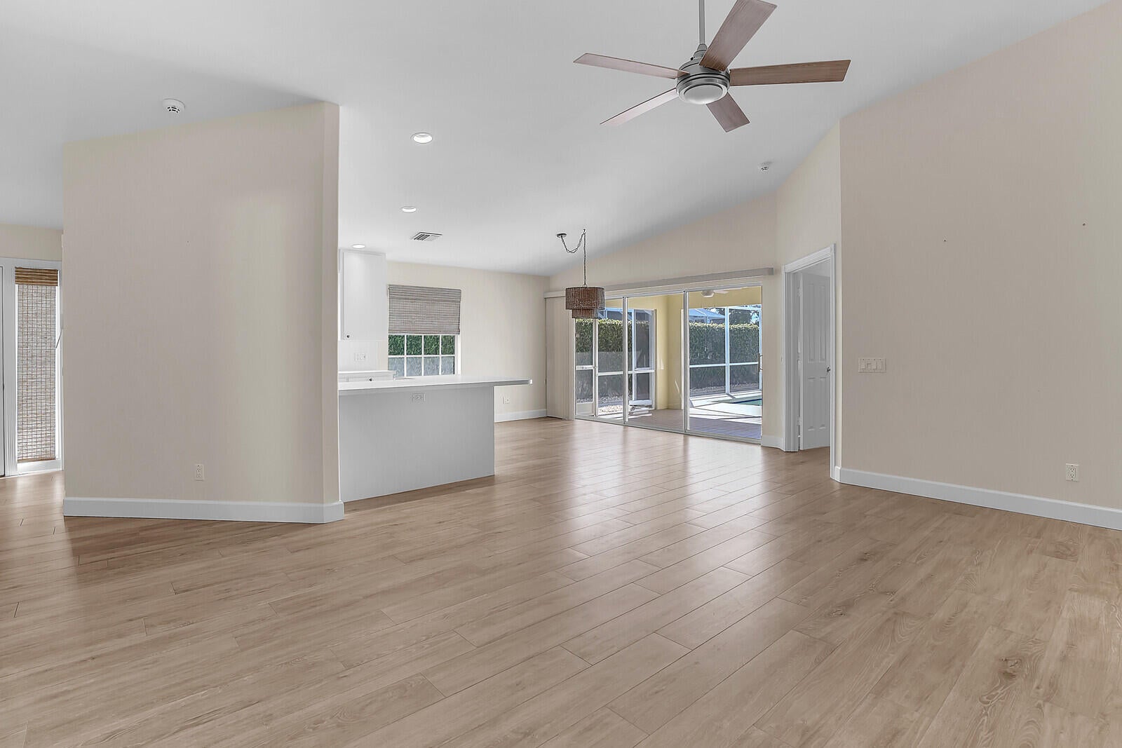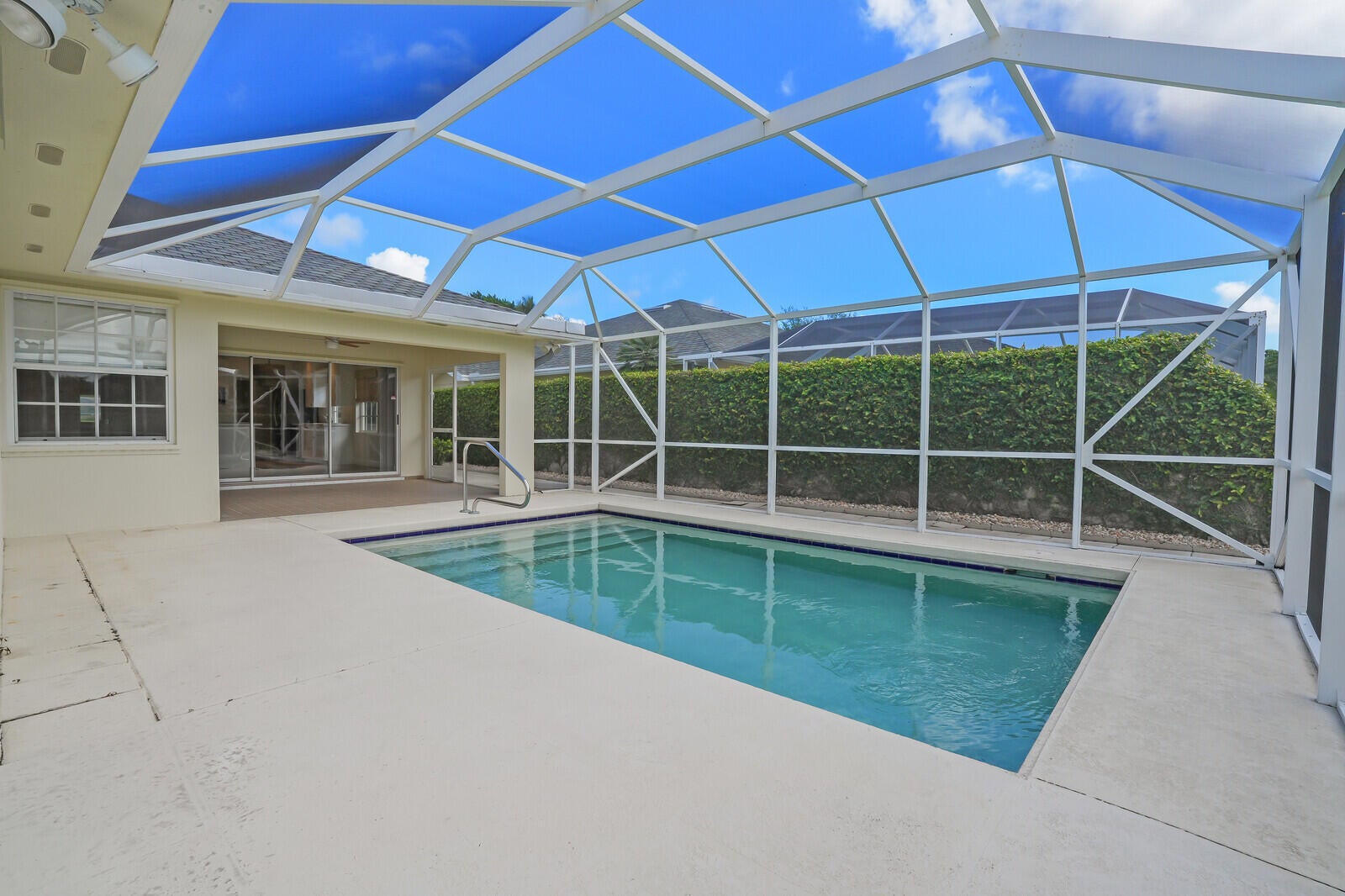 Enjoy golf course views from this bright and airy one-story CBS pool home -- and no high golf fees! This well-built DiVosta villa offers 2 spacious bedrooms, 2 bathrooms, and a 2-car garage. The open kitchen and breakfast bar connect seamlessly to the living area, leading out to a screened pool with relaxing fairway views. Recent updates include a 2022 roof, newer A/C and kitchen appliances, porcelain tile and baseboards, LED lighting, fresh interior paint, new screen, and Insta-hot water. Convenient Jupiter location close to beaches, A rated schools, restaurants, shopping, and golf.