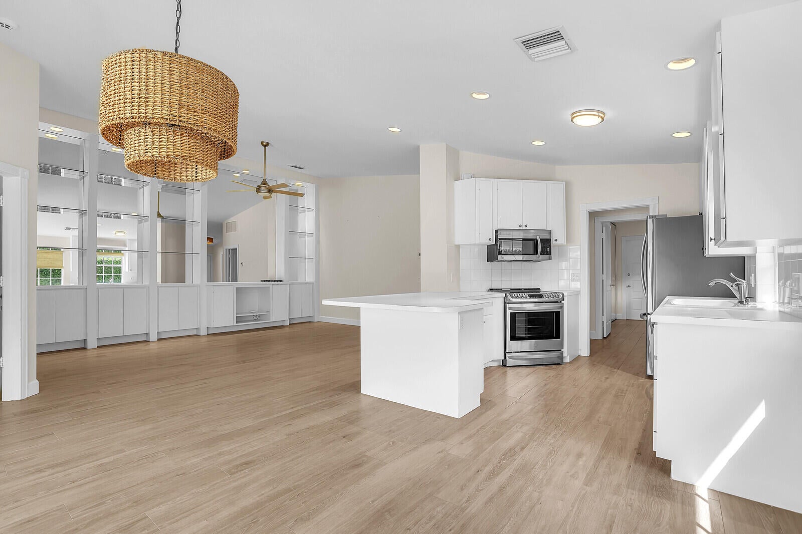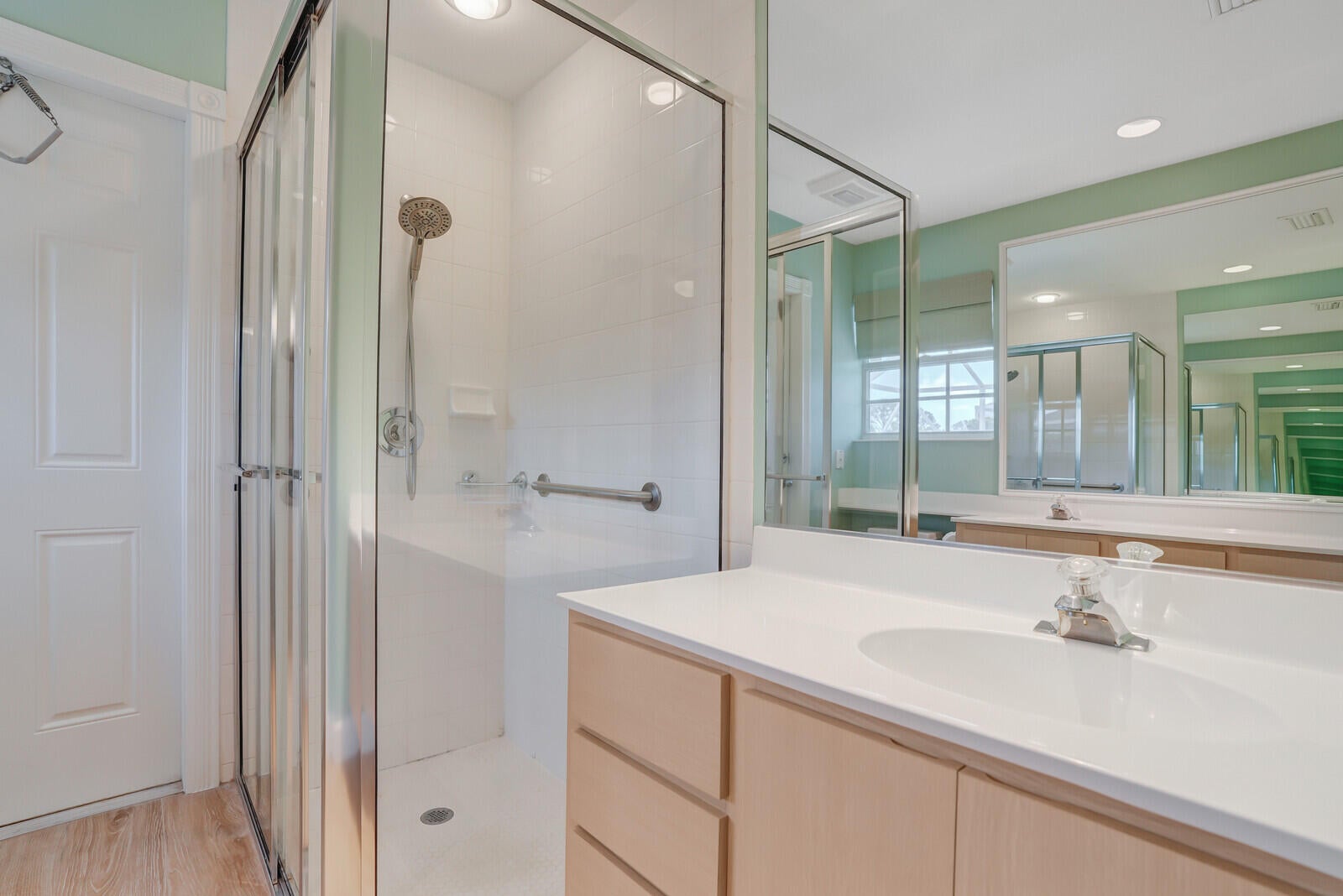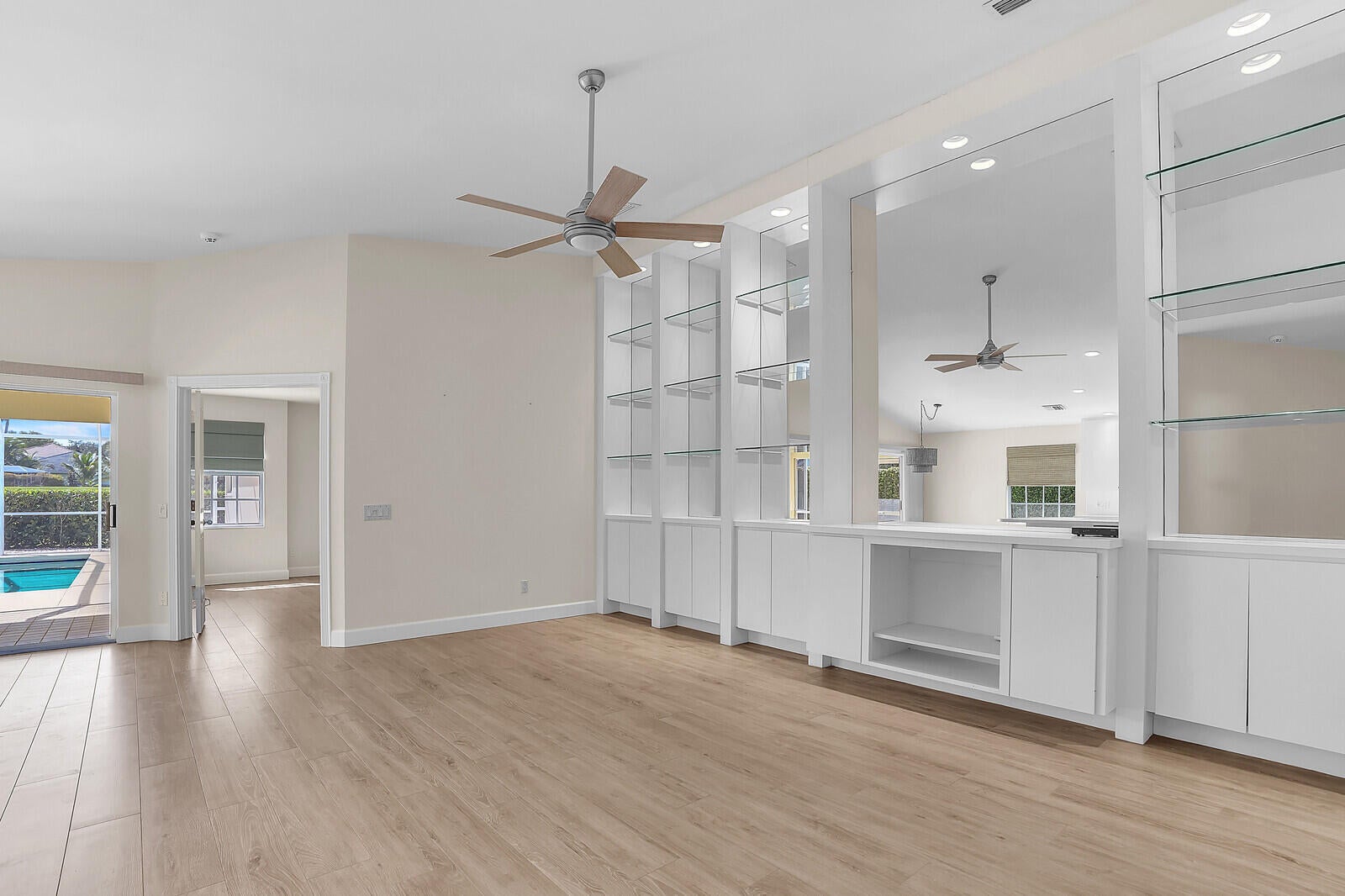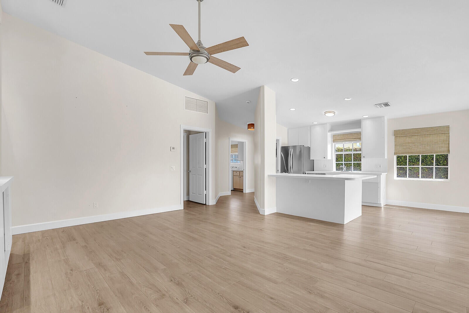 Enjoy golf course views from this bright and airy one-story CBS pool home -- and no high golf fees! This well-built DiVosta villa offers 2 spacious bedrooms, 2 bathrooms, and a 2-car garage. The open kitchen and breakfast bar connect seamlessly to the living area, leading out to a screened pool with relaxing fairway views. Recent updates include a 2022 roof, newer A/C and kitchen appliances, porcelain tile and baseboards, LED lighting, fresh interior paint, new screen, and Insta-hot water. Convenient Jupiter location close to beaches, A rated schools, restaurants, shopping, and golf.