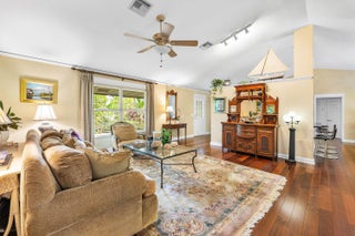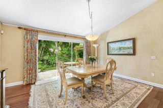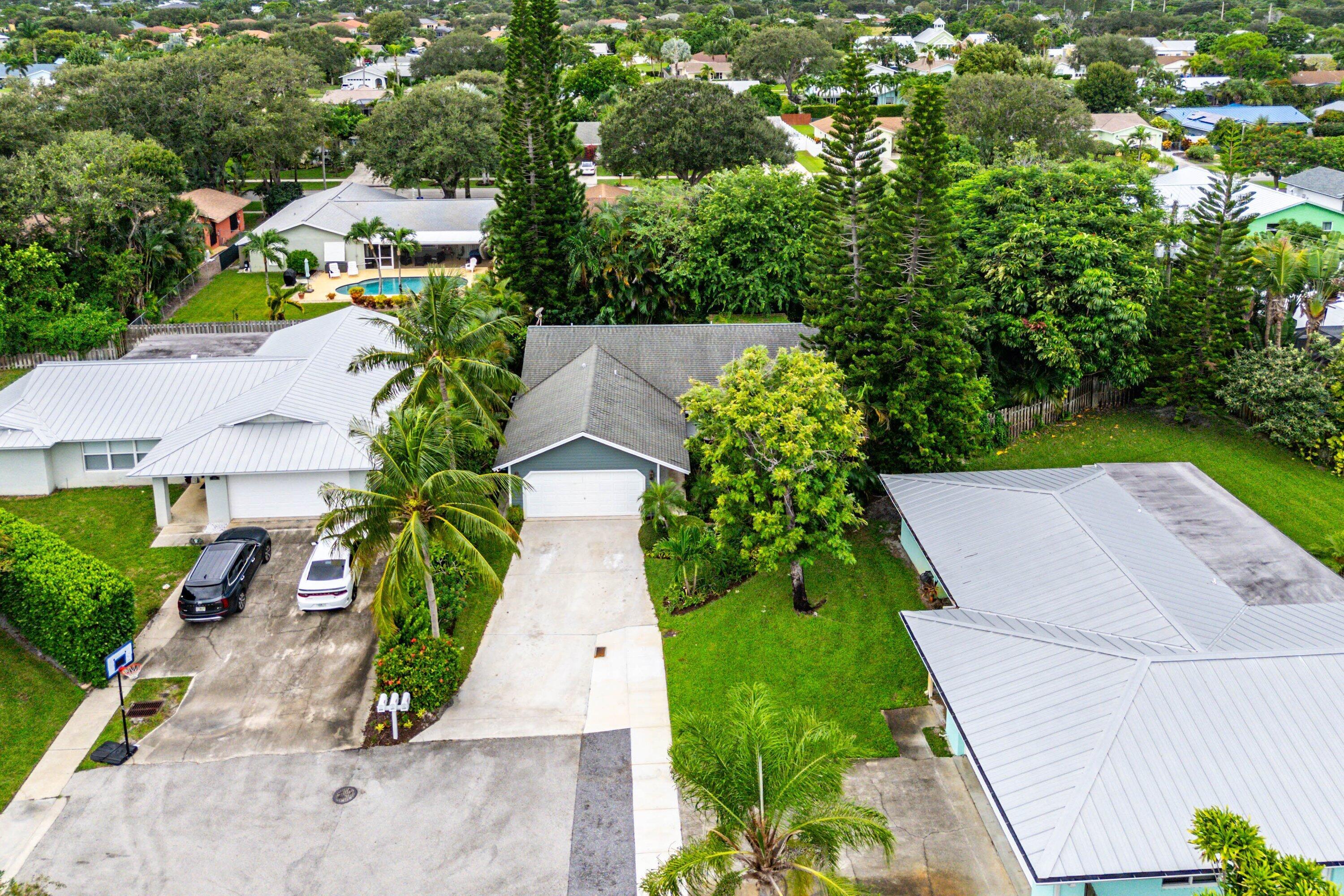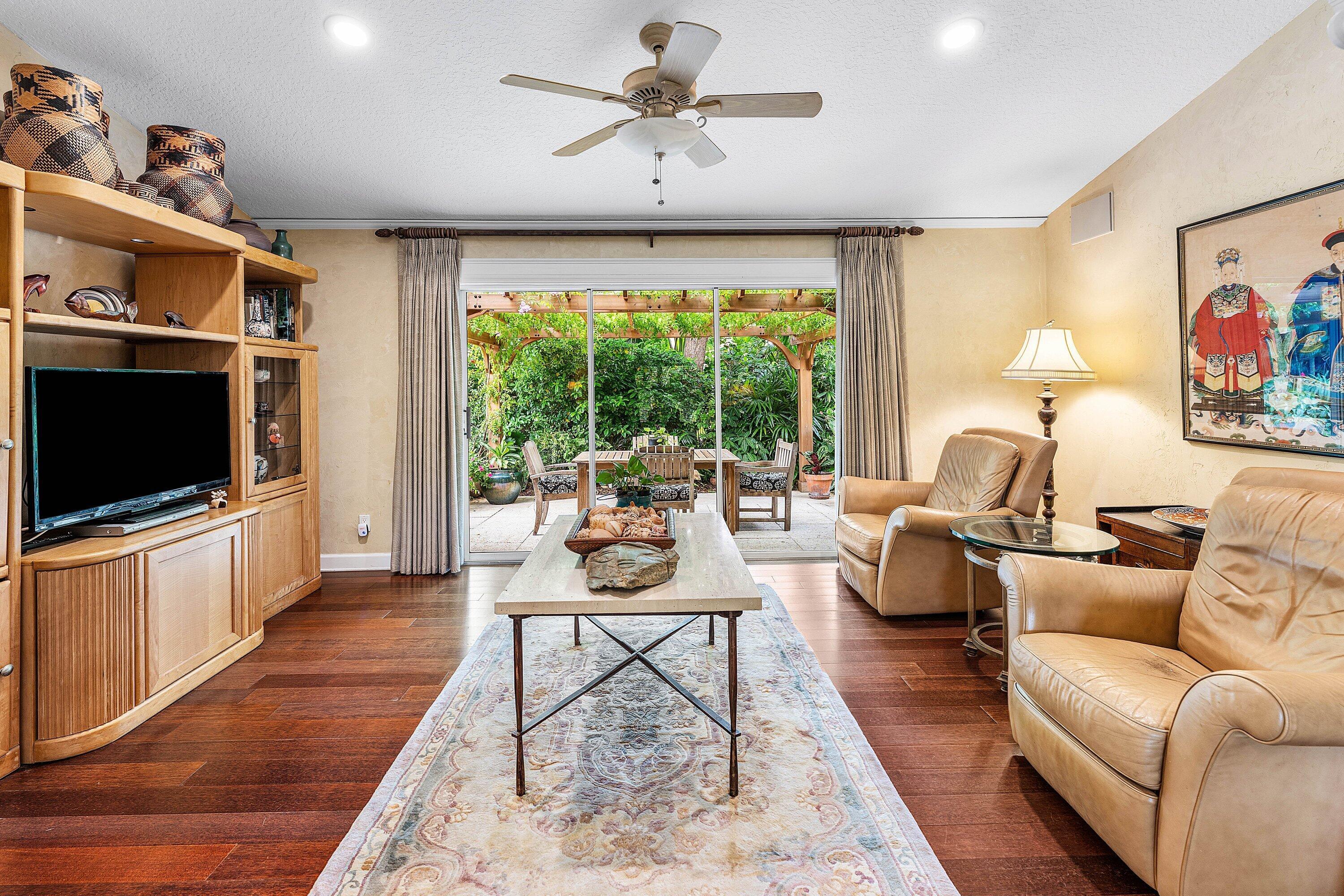 A Tropical Sanctuary in the Heart of Tequesta Tucked away at the end of a quiet lane, this captivating 3-bedroom, 2-bath residence offers the perfect blend of privacy and sophistication. A soaring ceiling welcomes you into sunlit, open living spaces including a gracious living room, intimate family room, and an inviting master suite with dual vanities, walk-in closet, and spa-inspired bathroom. The chef's kitchen is beautifully appointed with granite countertops, top-tier stainless appliances, light maple cabinetry, complemented by a breakfast bar and adjoining dining area adorned with rich 5/8'' Merbau wood flooring also found throughout home. Designed for effortless indoor-outdoor living, sliding doors open to a 43-foot coral patio shaded by a vine-covered pergola and framed by lush.tropical gardens. A cap-rock pond with cascading waterfall completes this serene oasis. Additional features include a climate-controlled office conversion within the garage, interior laundry, and ample storage. Moments from Tequesta's charming boutiques, dining, golf, and pristine beaches, this home is a true coastal retreat.