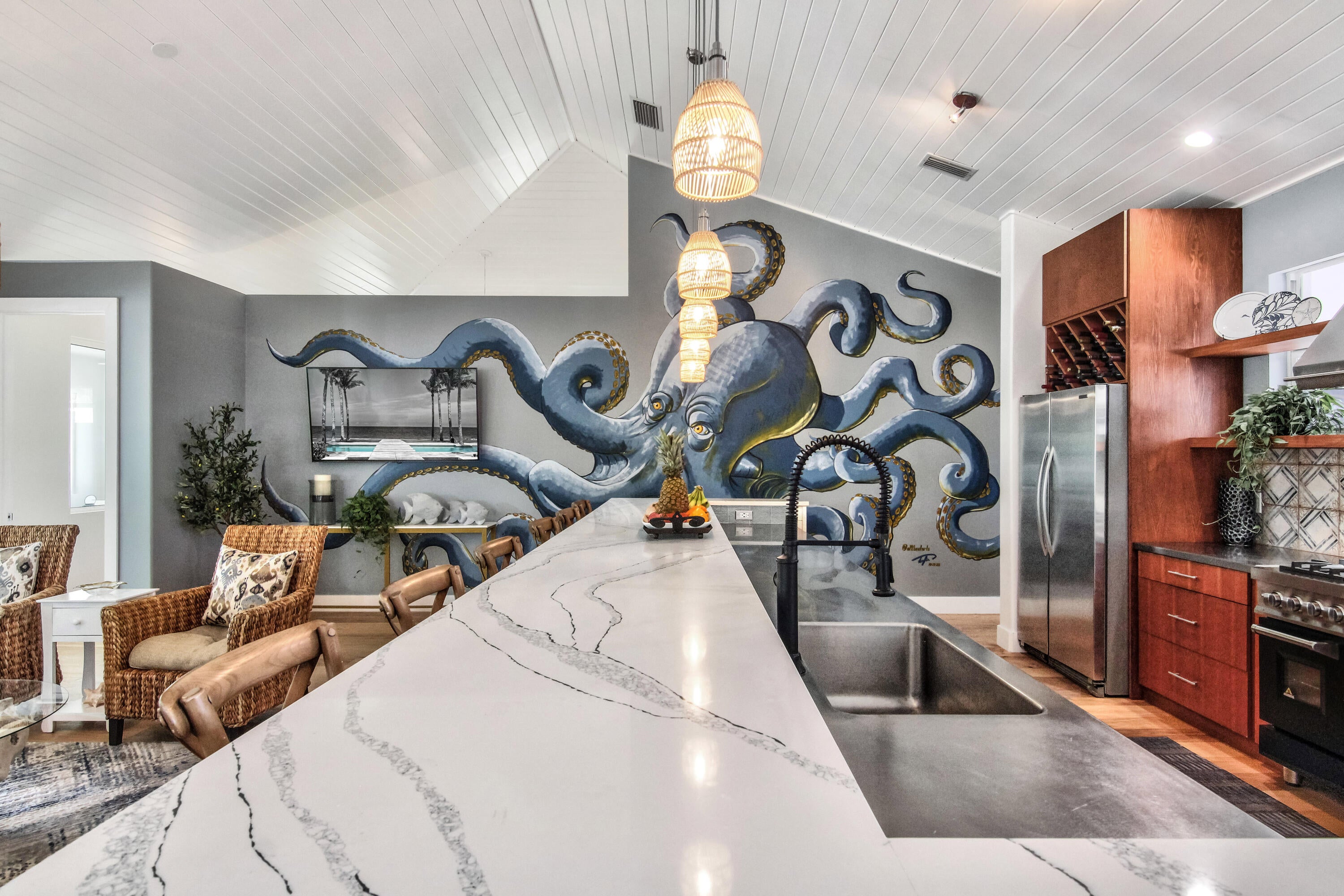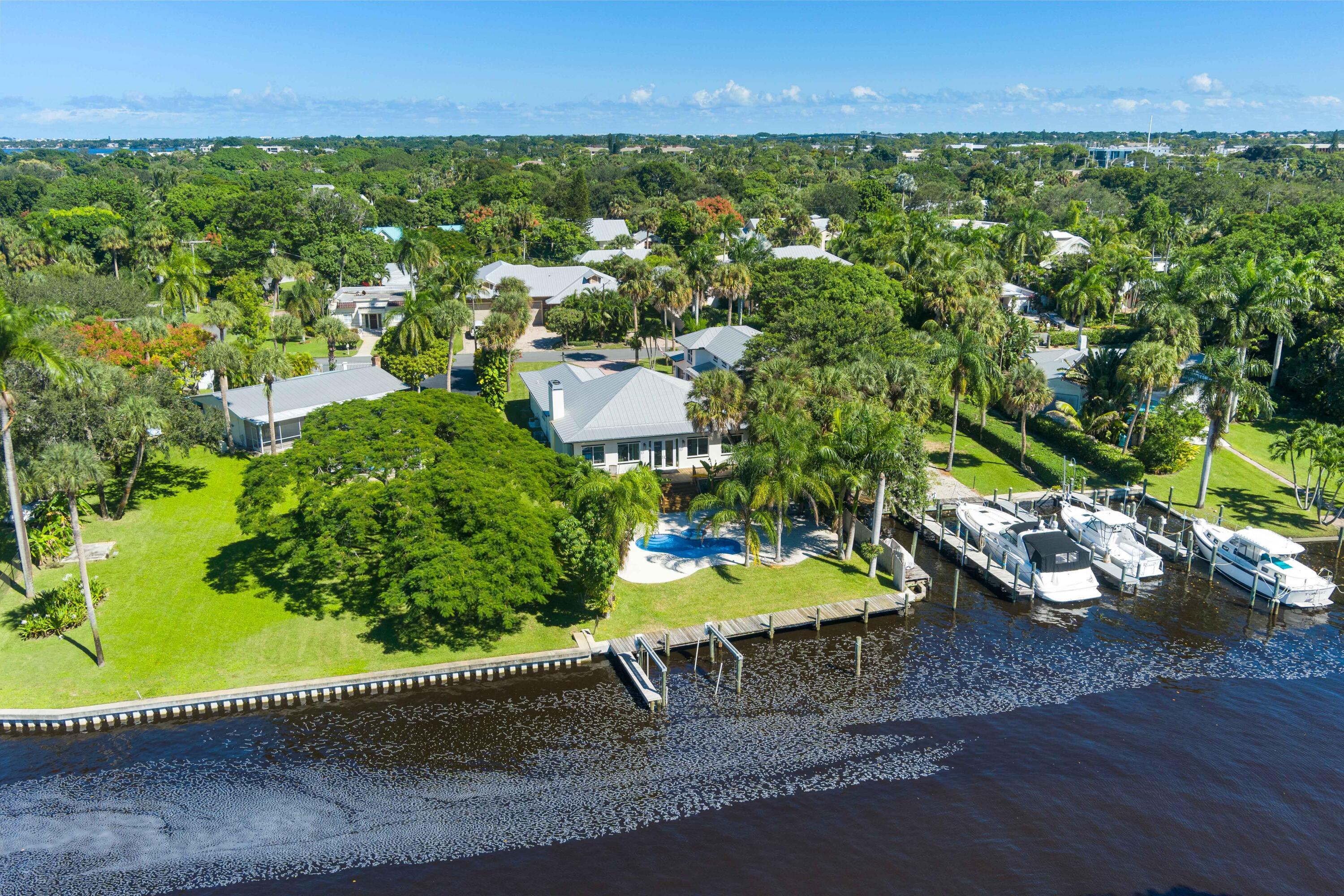 Beautiful home in St. Lucie Estates on historic Krueger Creek just a few houses in from the river. Fully updated and furnished for your immediate enjoyment.New 70 foot seawall and dock. 10,000 pound lift at one end. Protected deep water for your vessels just minutes to the inlet. One mile to downtown. Hurricane hardened with metal roof, impact windows, concrete block construction. Updated in 2023 with a new addition, new systems, hook in to city water and sewer, and much more. Approx. 3500 all together under air and 5000 total square feet. There is a heated pool and spa, outdoor shower, 200 sf air conditioned laundry/pantry/prep room. Spacious one bedroom apartment with full kitchen over the 962 sf three car garage. The home is elevated and sits on a nice high .39 acre lot. Survey available.