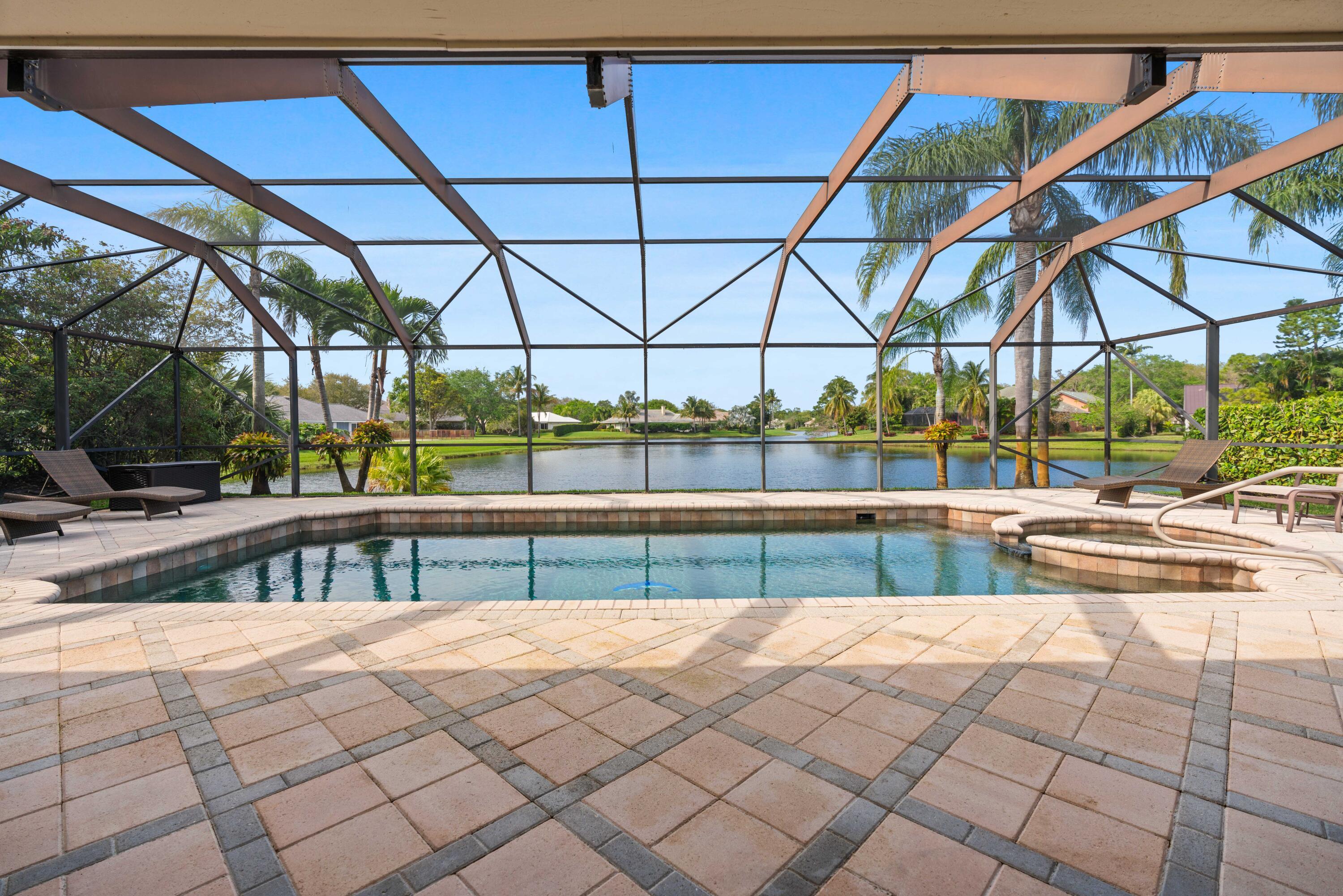 Welcome to the highly coveted community of Heritage Oaks. This sophisticated and spacious home is ideally situated on a generous 0.447 acre lot; offering beautiful long lake views. Boasting 5 bedrooms, 4.5 bathrooms, (5th bedroom is currently being used a den), oversized 20x10 loft, a 2-car garage, and 2,823 square feet of living space. Upon approaching the home, you are greeted with an oversized beautiful paver driveway, adjoined with mature oaks and a welcoming front porch. Your senses will be delighted when you feel the energy of this exquisite home. An abundance of natural light abounds. The bright interior boasts a well-designed floor plan with vaulted ceilings and plenty of natural light throughout. Beautiful hardwood flooring creates a warm and inviting environment.plantation window treatments, hurricane impact windows and a 2019 cement tile roof. The zen like and spacious master suite offers lovely views of the back yard and lake, two closets, one a walk-in closet, and a beautifully remodeled en suite bathroom with dual sinks, and a beautiful frameless glass shower. The gourmet kitchen is equipped with new stainless steel appliances, granite countertops, custom cabinetry and bar top seating. There is also an oversized 20x10 multi-purpose loft space. Step outside to your very own backyard oasis, complete with a screened-in pool and heated spa, perfect for relaxation or entertaining guests. The outdoor kitchen is perfect for hosting barbecues and summer parties with family and friends. Enjoy the Florida lifestyle at its finest while overlooking the serene lake and lush landscaping. This immaculate home offers the perfect blend of luxury and comfort, with unparalleled views and amenities that will make every day feel like a vacation. Don't miss this incredible opportunity to make this breathtaking property your forever home! Heritage Oaks is a private, highly desired, guard gated community nestled along the Loxahatchee River. The community is known for its mature oak tree-lined streets, and beautiful lakes, and is comprised of nearly 200 single-family homes. The community offers a world class tennis facility and club, boat and RV storage, and playground. Close to pristine area beaches, fine dining, shopping, world-class golfing and so much more.