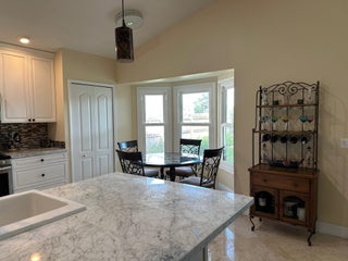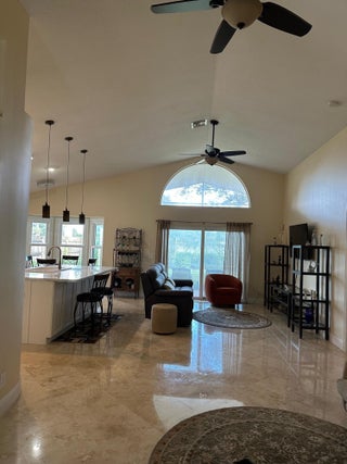 Price Reduced to Sell! Beautifully updated 3-bedroom, 2-bath split-bedroom home with 2 car garage, featuring an open floor plan with high vaulted ceilings. Located in a desirable small, quiet, gated community.Home offers full hurricane protection with impact glass windows and doors. The kitchen includes a large island, farmhouse sink, marble countertops, and stainless steel appliances, including a gas stove! Home also has a gas water heater.Continuous Travertine flooring extends throughout the home. Enjoy outdoor living with a screened-in patio and fenced backyard--perfect for relaxing, entertaining, or playtime with children or pets.