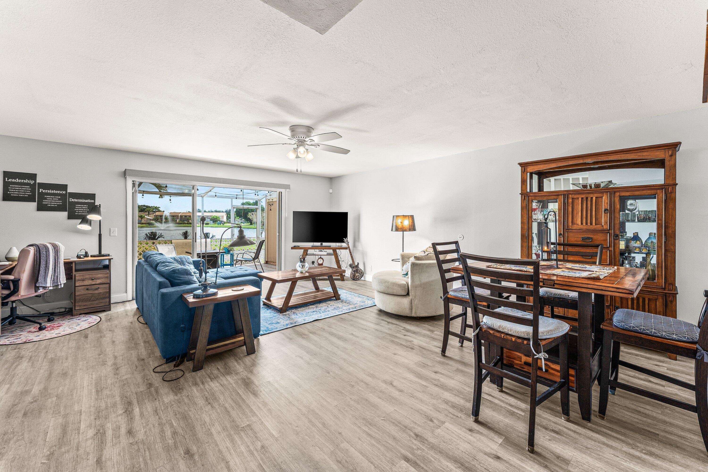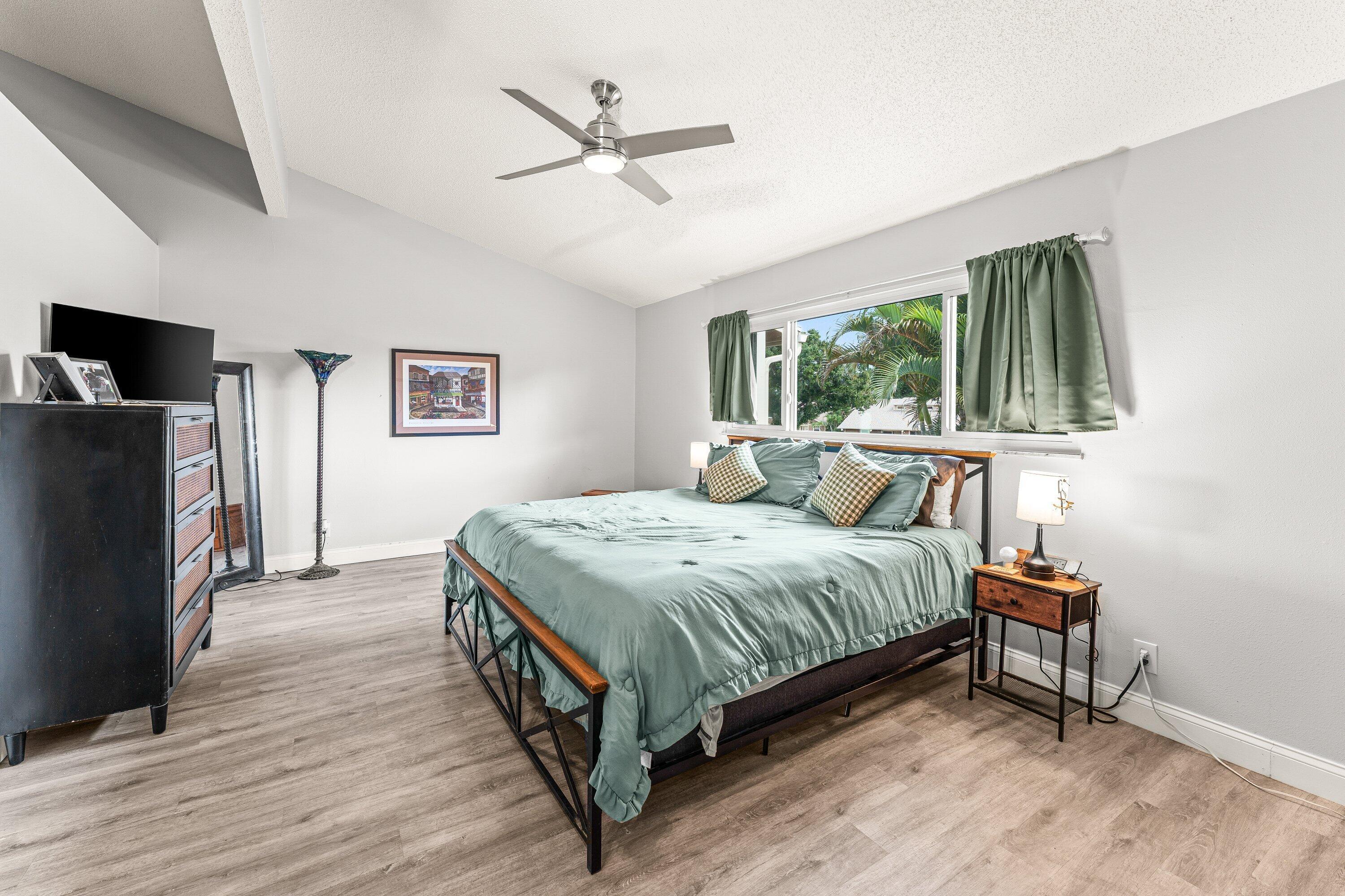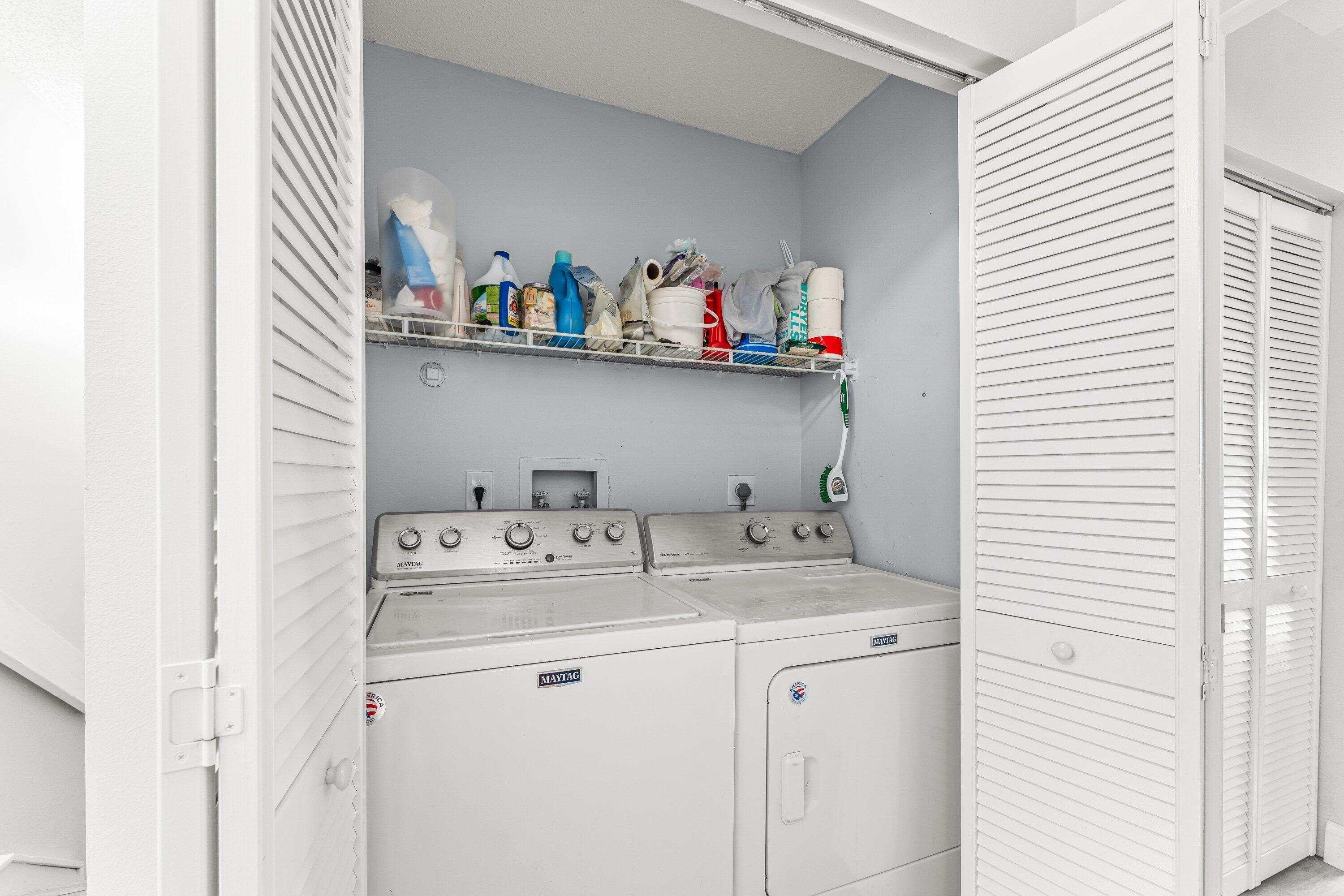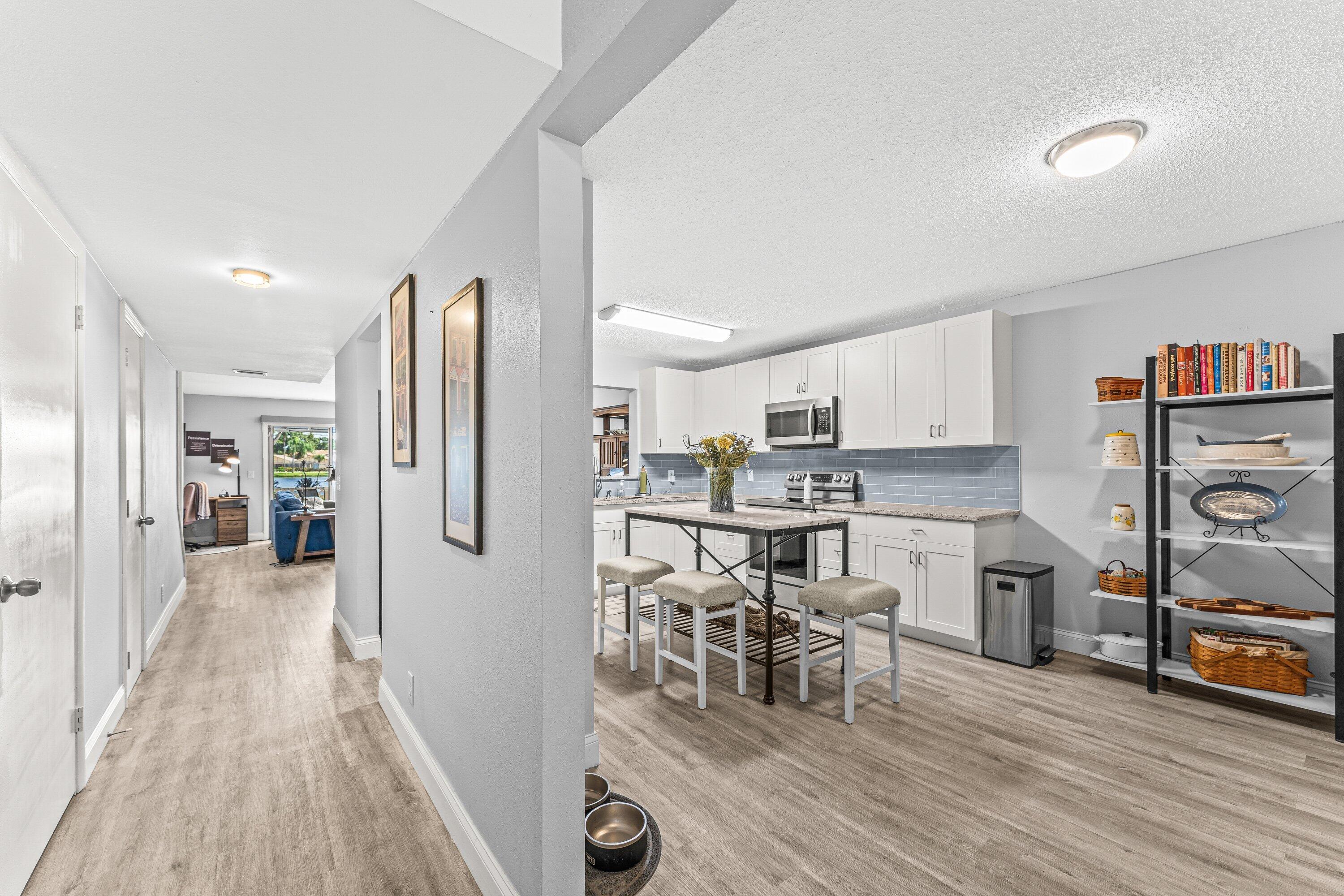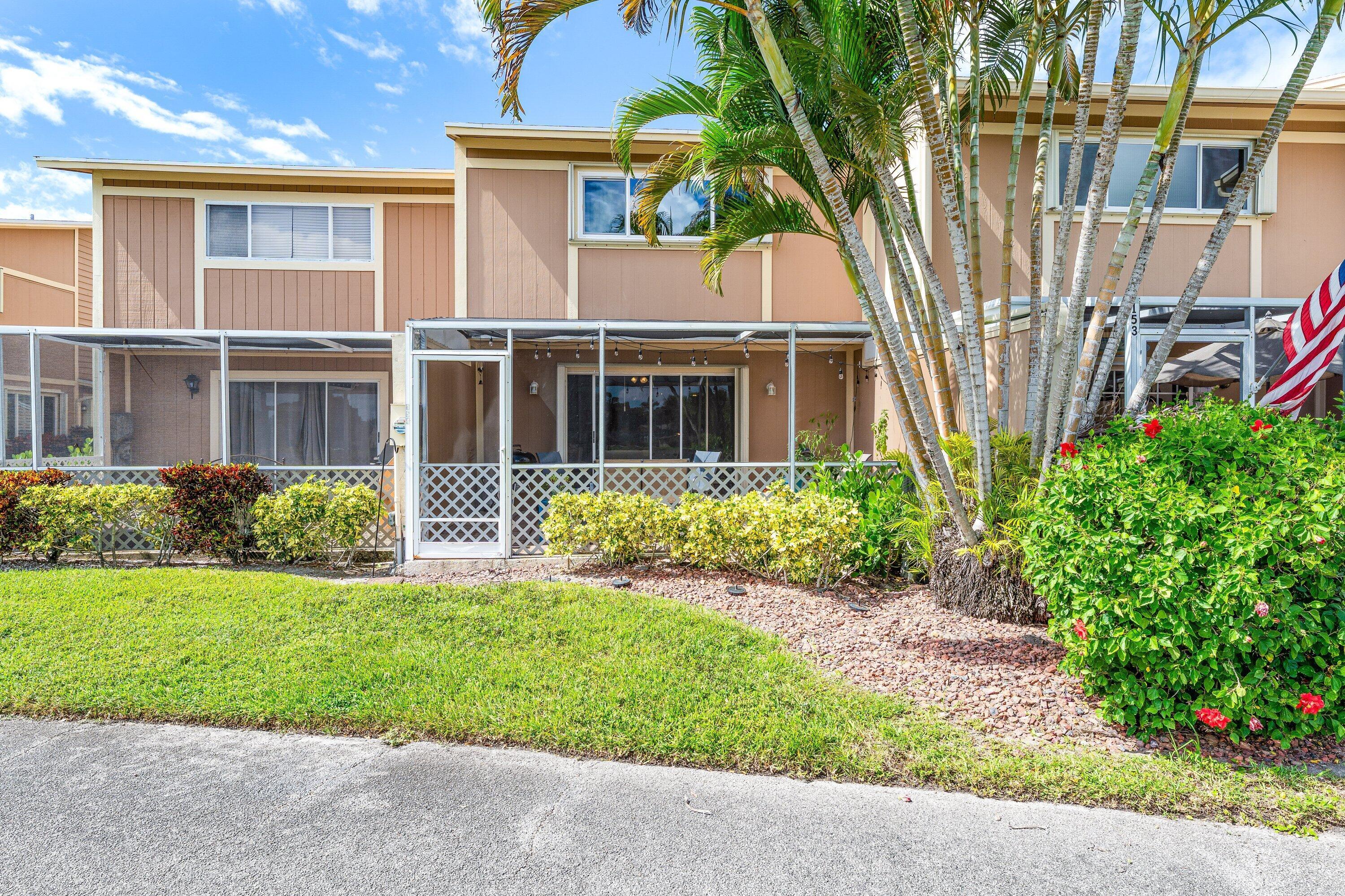 Welcome home to this beautifully renovated 3-bedroom, 2.5-bath townhome with a 1-car garage, ideally located in the desirable community of Maplecrest in the heart of Jupiter, within one of the county's top-rated school districts. Recently updated (2024), this property offers a range of tasteful improvements including new wood look vinyl flooring, upgraded trim, fresh paint, and modern fixtures throughout.The kitchen is equipped with solid wood shaker cabinetry featuring soft close hinges, granite countertops, a gray subway tile backsplash, dual sink with disposal and soap dispenser, granite topped pass through window, stainless steel appliances, and a dedicated pantry with plenty of storage. Just off the kitchen is a convenient half bath, perfect for guests.The living anddining room blend seamlessly and feature wood-look vinyl flooring, abundant natural light through large sliding glass doors, and updated electric blinds. The open layout provides a comfortable space for relaxing or entertaining. Upstairs you'll find three full bedrooms and two full bathrooms. The primary bedroom is generous in size and features wood look vinyl flooring, 6 inch baseboards, vaulted cathedral ceilings, impact windows providing plenty of natural light, and a spacious walk-in closet. The primary bathroom includes a solid wood vanity with granite countertops, updated mirror and fixtures, and a fully tiled floor to ceiling walk-in shower with built-in shelving and updated hardware. Both secondary bedrooms are located on the second floor and are generous in size, featuring vaulted ceilings, ample closet space, and abundant natural light through impact glass. The secondary bathroom is equally impressive, with a fully tiled floor to ceiling shower-tub combo, updated hardware, solid wood vanity with wood shaker cabinetry, porcelain countertop with large sink, new fixtures, and updated mirror. Conveniently located upstairs is the laundry closet. Step outside to your private screened-in patio featuring tile flooring and privacy on both sides. The patio offers a peaceful view of the lake and a relaxing breeze, making it the perfect spot to unwind and enjoy the Florida lifestyle. Maplecrest is a charming and well-maintained townhome community in the heart of Jupiter, offering residents a peaceful setting with mature trees, scenic lakes, and sidewalks perfect for walking and biking. The neighborhood features inviting amenities including a community pool, tennis courts, a clubhouse, and a children's playground. The association fee conveniently covers lawn and landscape care as well as the maintenance of shared amenities and common areas, allowing for a low-maintenance lifestyle. One of Maplecrest's biggest appeals is its prime central location. Residents are just minutes from Jupiter's beautiful beaches, Harbourside Place, and Downtown Abacoa, with easy access to top-rated schools, parks, golf courses, and major roadways. Everyday conveniences such as Publix, Starbucks, restaurants, and shops at Sea Plum Plaza are also close by, along with Jupiter Medical Center and a variety of local attractions. Combining coastal charm, community amenities, and unmatched convenience, Maplecrest offers the perfect balance of relaxed Florida living and proximity to everything that makes Jupiter one of Palm Beach County's most desirable places to call home. Schedule your showing today.