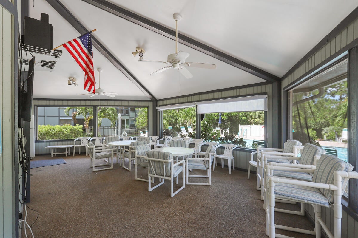 Welcome to this updated 2-bedroom, 2-bath FIRST-floor condo in desirable Hobe Sound, conveniently located just off US-1 between Jupiter and Stuart. Enjoy easy access to beaches, parks, restaurants, and shopping. The home features luxury laminate flooring throughout, a neutral color palette, and an open-concept living/dining area. The kitchen includes classic cabinetry, wood countertops, glass tile backsplash, white appliances, open shelving, and a pantry with in-unit stacked washer & dryer. The primary suite offers a walk-in closet and private en-suite bath. The second bedroom has direct access to the guest bathroom, ideal for guests or a home office. Enjoy outdoor living with a screened front patio for privacy and airflow, plus a locked storage area for added convenience.Community amenities include: heated pool, clubhouse with kitchen, picnic area with grills, on-site manager, and limited gated storage (first-come, first-served). HOA requires buyer background/credit check. Please allow 2-3 weeks for application and approval.