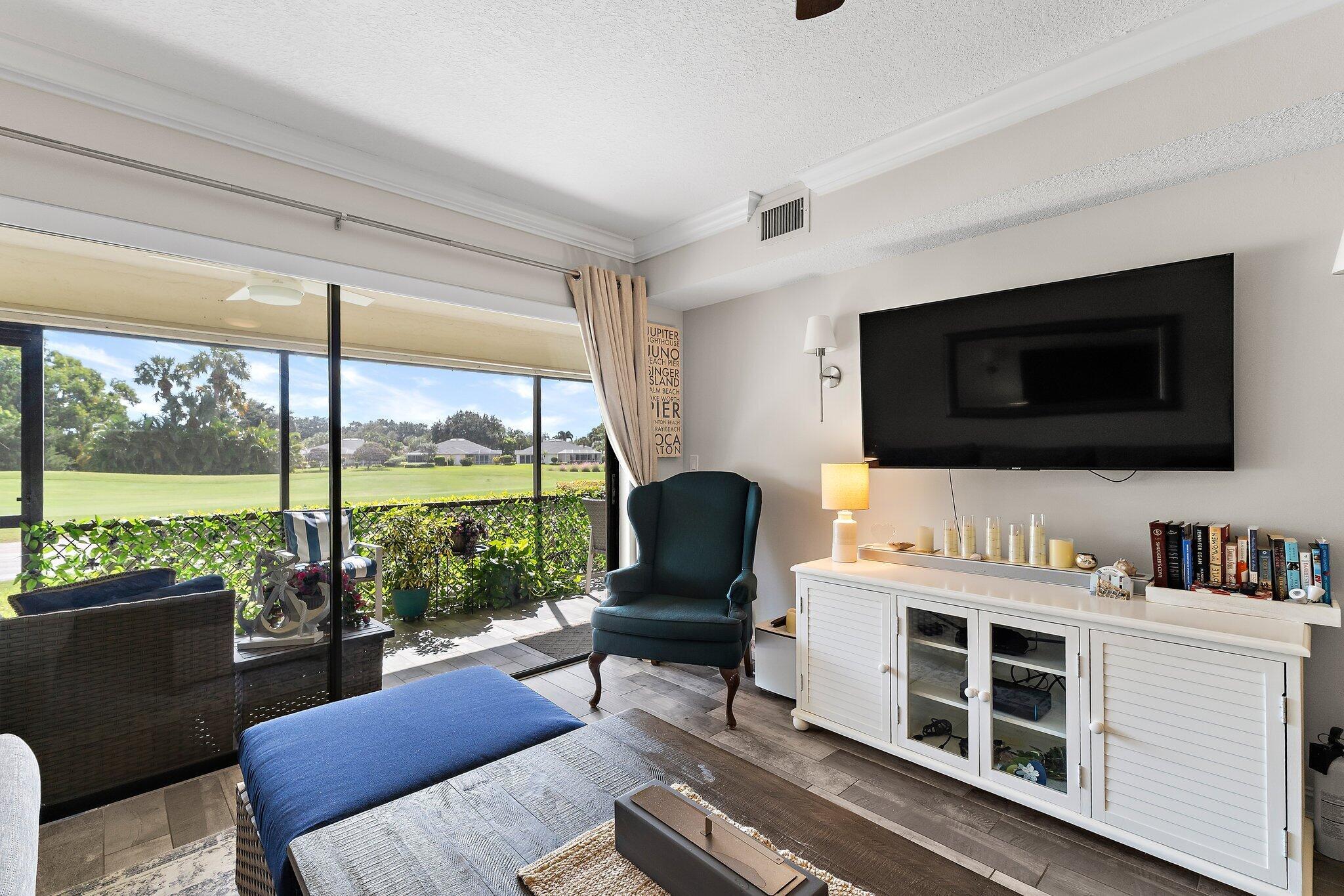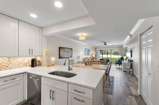 Beautifully renovated and move-in ready, this stunning home offers golf course views right from your patio on the 18th hole. The open-concept layout features a recently remodeled kitchen with white shaker cabinetry, herringbone polished marble backsplash, quartz countertops, stainless steel appliances, and upgraded LED lighting.Elegant details are found throughout, including crown molding, 5'' baseboards, gray wood-look tile flooring, remote-control ceiling fans with adjustable lighting, and newly updated bathrooms. A 2020 A/C system and 2018 hot water heater provide modern comfort and peace of mind, while the tiled patio creates an inviting outdoor space to relax or entertain.Enjoy a prime location just steps from the community pool, tennis courts, and clubhouse, and minutes from I-95, the Florida Turnpike, beaches, dining, and shopping. Best of all, the Golf Club of Jupiterlocated just a short walk awayis undergoing a complete renovation, including updates to the clubhouse, putting greens, fairways, and driving range, making this the perfect opportunity to own in one of Jupiter's most desirable communities.