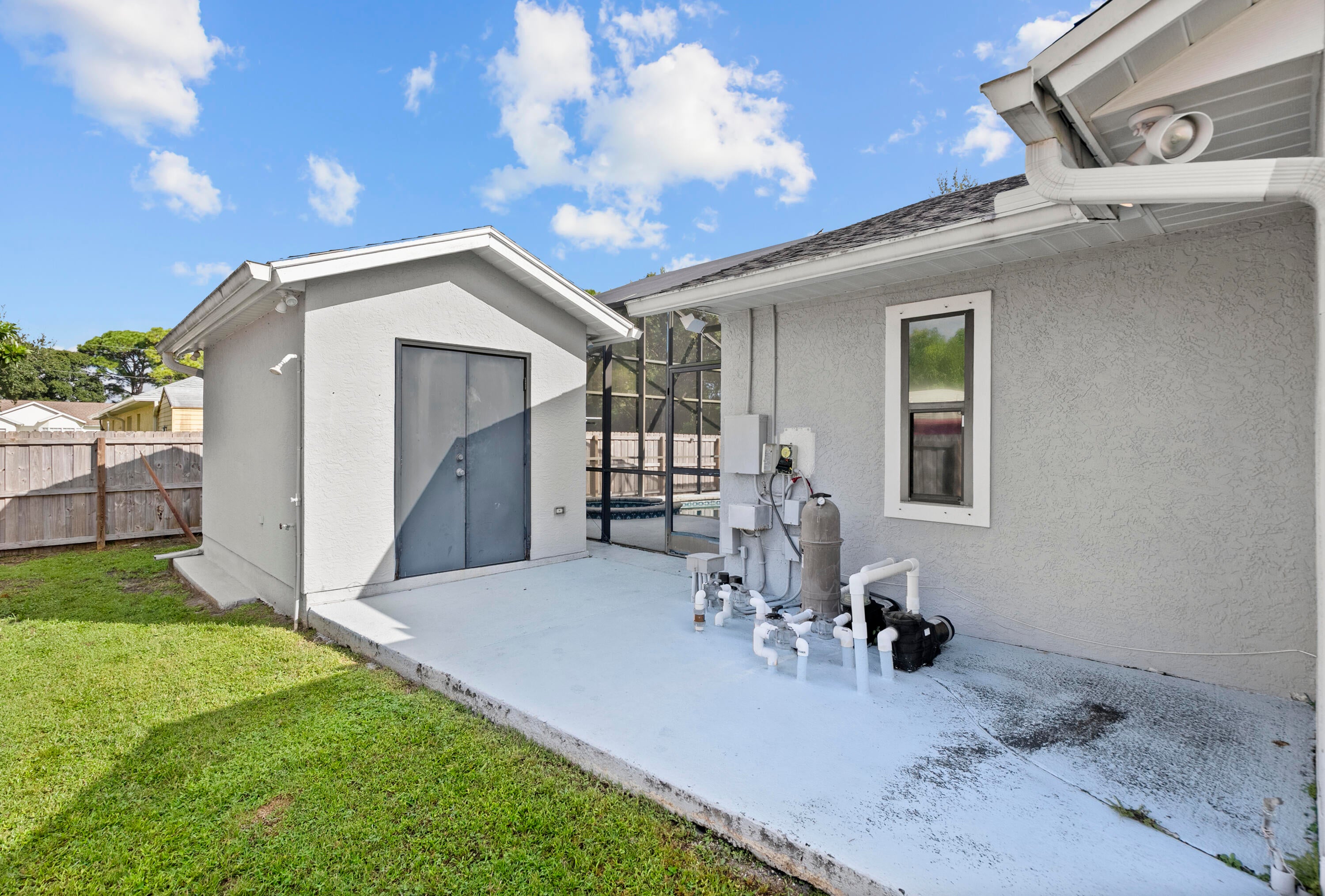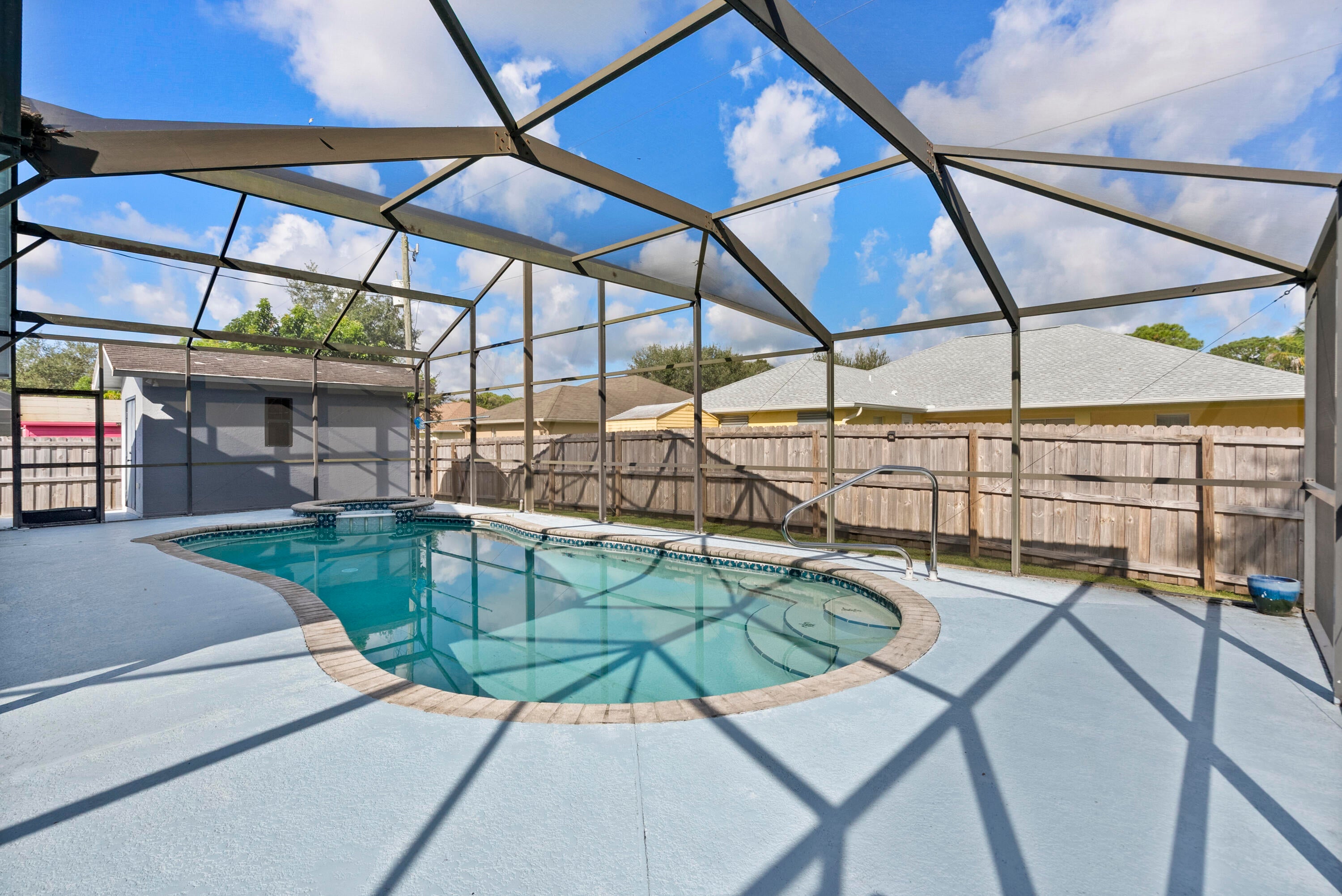 Inviting 3-bedroom, 2-bath pool home featuring a versatile bonus room located just off the primary suite, ideal for a home office, gym, or nursery.Recent updates including a roof and water heater (2018), kitchen appliances, washer, dryer, and patio screens (2022), and a new A/C system and fence (2023). The kitchen and bathrooms have been recently renovated, and the pool deck has been recently painted.The backyard offers a relaxed setting for everyday living and entertaining, complete with a summer kitchen, screened patio, and pool, along with a storage shed for added convenience. With no HOA, you'll enjoy the freedom to truly make this property your own.Ideally located minutes from the Turnpike, I-95, Crosstown Parkway, and US-1, this home provides an easy commute to nearby shops,restaurants, and entertainment. The beaches of the Treasure Coast are just 15 to 20 minutes away, offering the perfect balance of convenience and coastal living. Move-in ready and full of potential, this home is waiting for its next owner to make it their own.