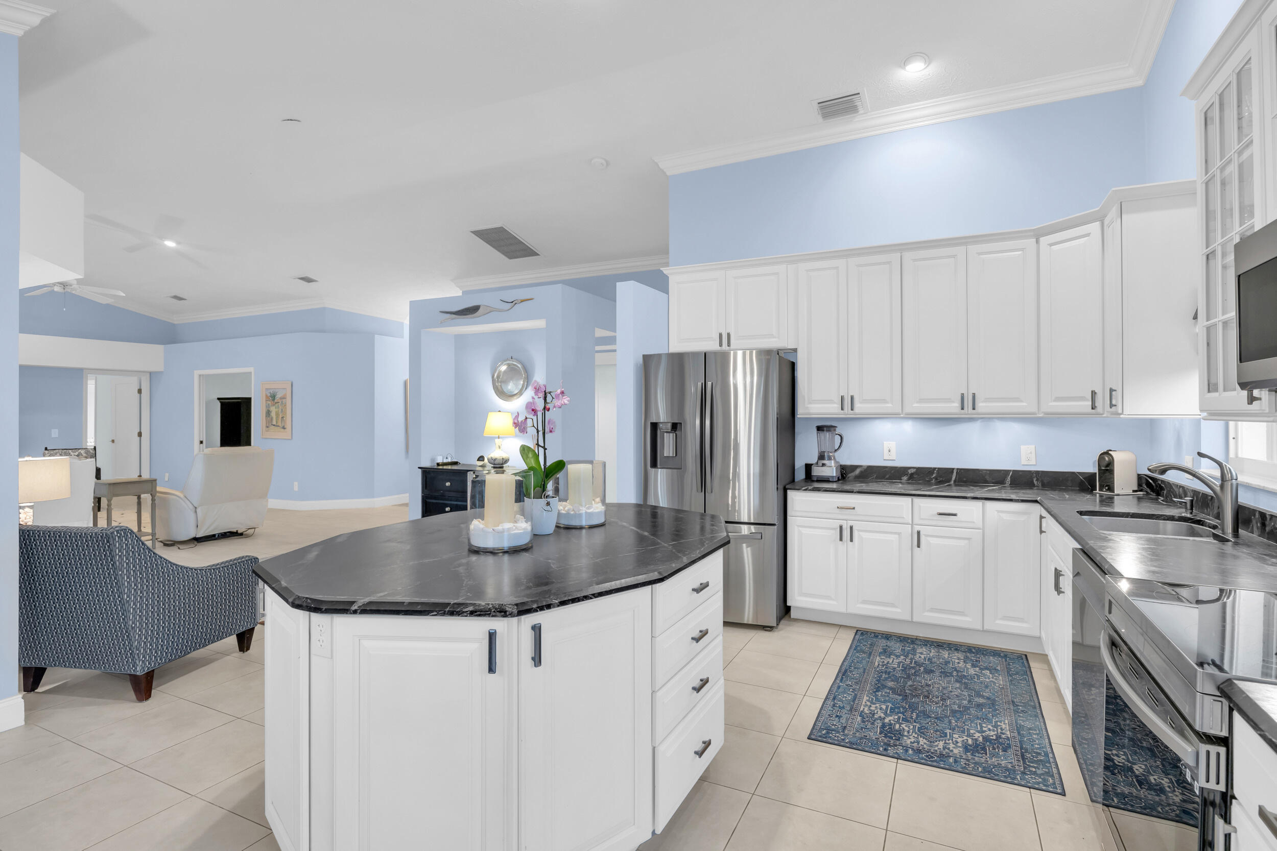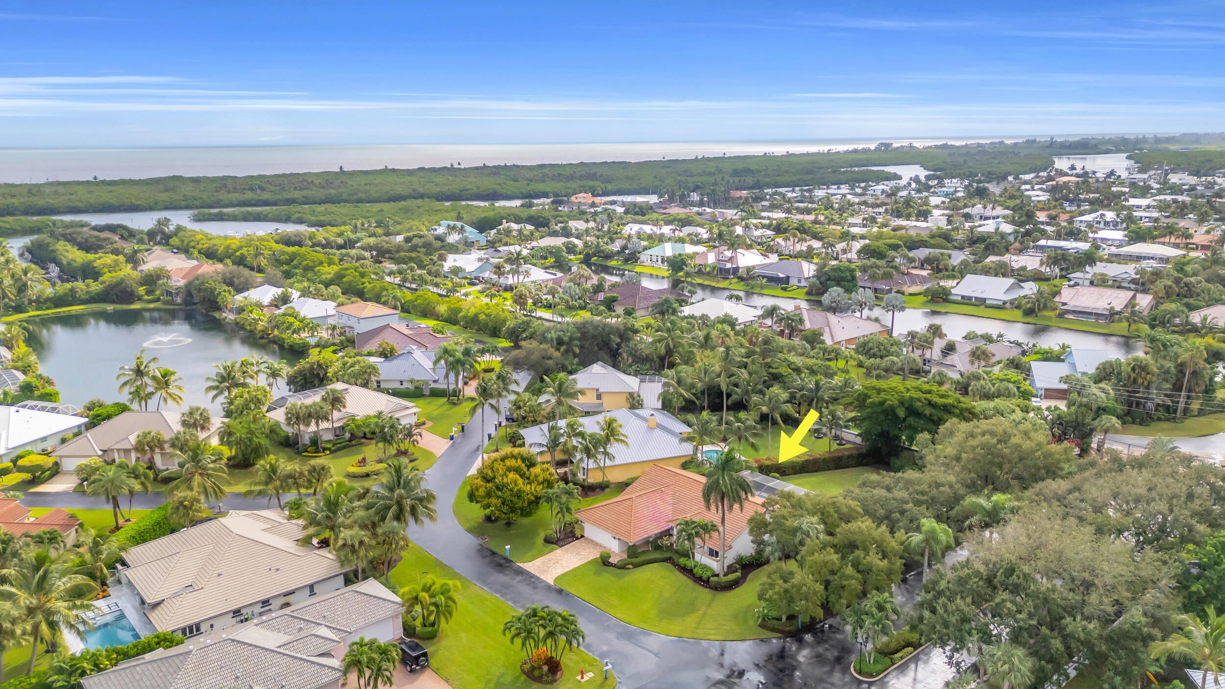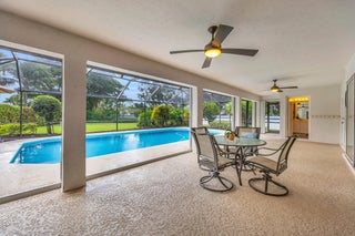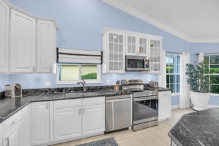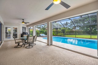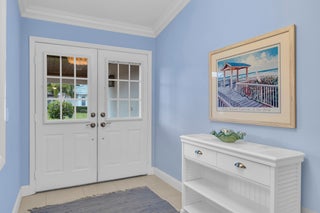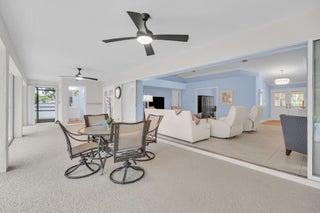 Single family home located in the gated waterfront community of Governors Landing. Enjoy coastal living in this beautifully maintained 3 bed 2.5 bath home. 35-foot DEEDED DOCK is included, ideal for boating enthusiasts & those seeking a relaxed Florida lifestyle. Open concept floor plan & volume ceilings. Kitchen features a sandstone counters, newer appliances & inviting dining area. Large covered & screened lanai includes half bath & outdoor shower, Primary suite offers dual sinks, walk in custom closet, separate tub & shower. All new interior solid core wood doors. 3rd bedroom includes murphy bed, perfect for spare bedroom/den or office. 2 car garage with custom cabinetry & epoxy floor. Accordion shutters and 2015 roof. Only a 5 min drive to the scenic Jupiter Island beach.