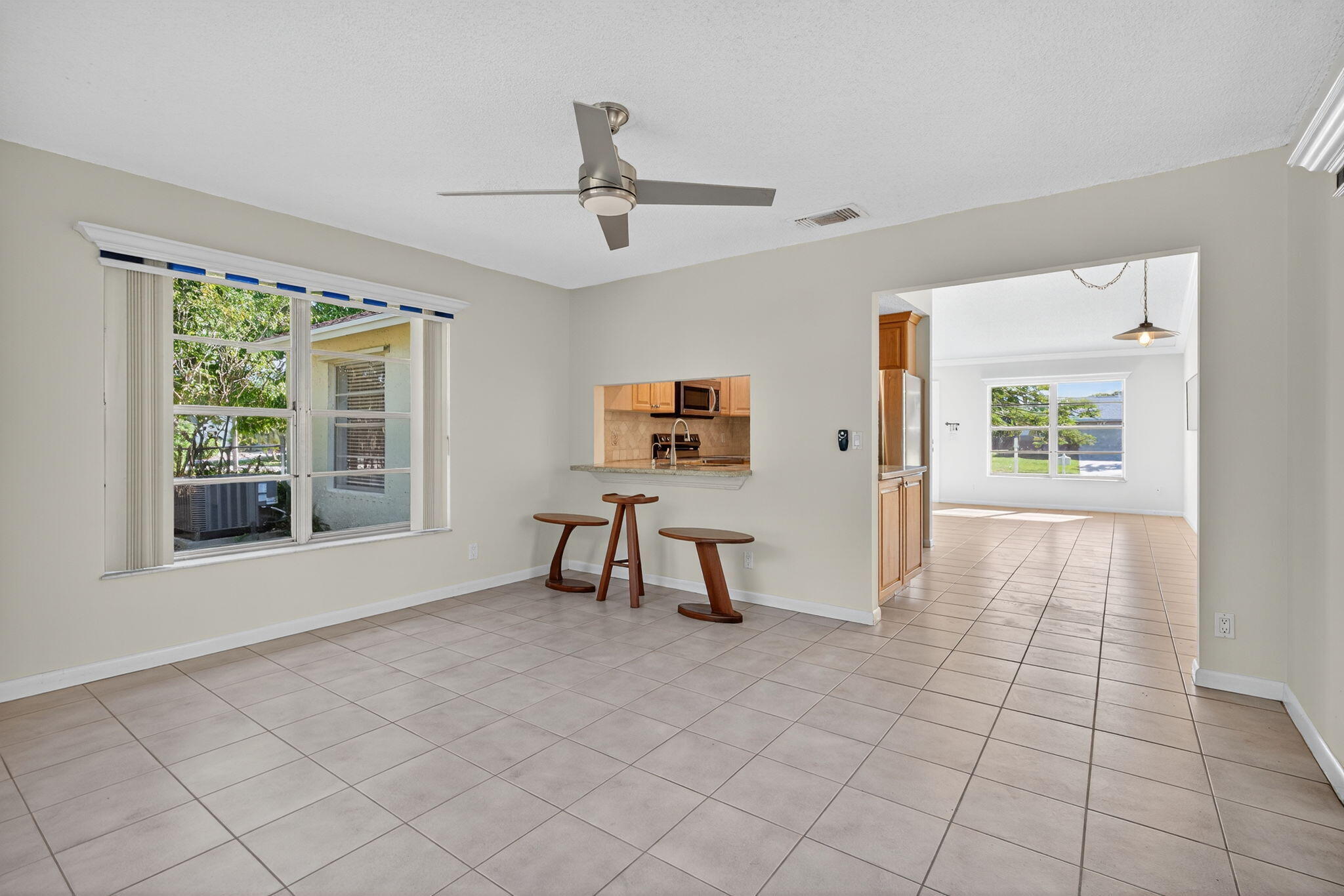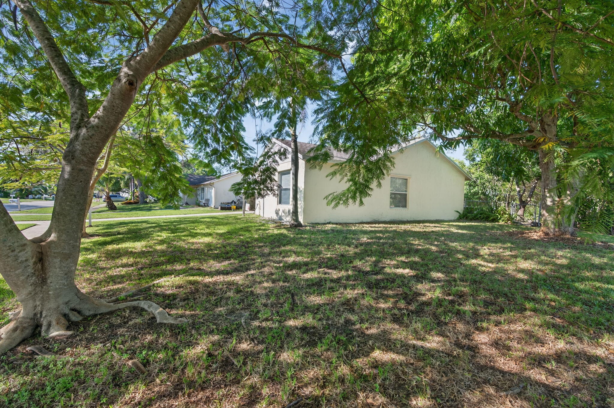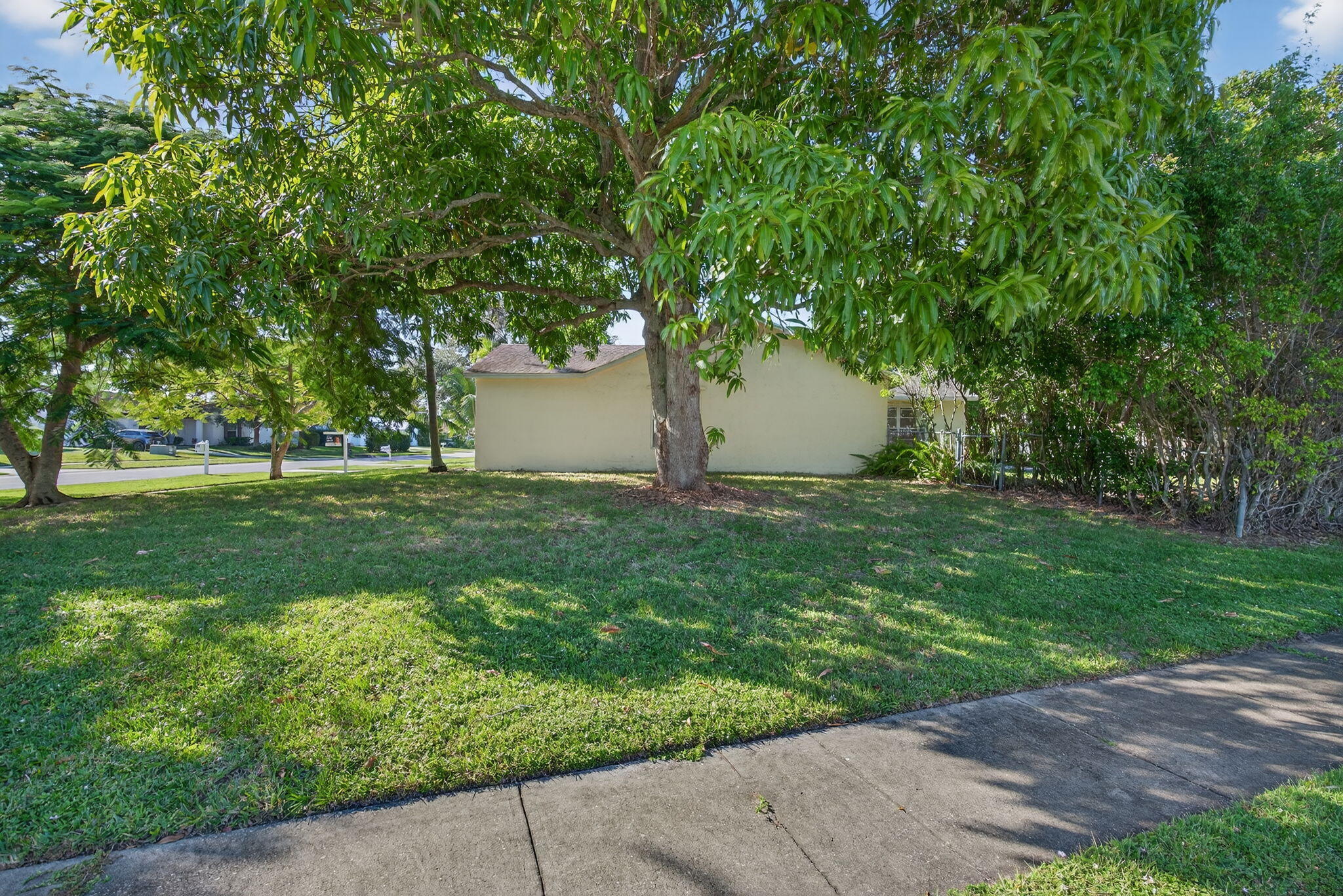 Location, Location, Location!Enjoy this charming home nestled in the quiet neighborhood of Jupiter Village, just minutes from restaurants, shopping, golf, tennis, major highways, and less than 5 miles from the beach.This 3-bedroom, 2-bath home sits on one of the largest corner lots in the community, fully fenced and bordered by Ficus trees for privacy. The property features stunning Royal Poinsettia trees that burst into vibrant color when in bloom, along with your own avocado and mango trees in the side yard.The enclosed patio provides additional living space, surrounded by windows and sliders that flood the room with natural light is ideal for a family room or entertaining area. Step outside to the expansive wraparound patio covering three sides of the home., perfect for an outdoor kitchen, backyard BBQs, and you still have room for a pool. Inside, you'll find vaulted ceilings, crown molding, and recessed lighting, giving the home an updated and spacious feel. The kitchen boasts granite countertops, a stone backsplash, stainless steel appliances, and a breakfast bar are ideal for casual dining. Additional features include hurricane-impact front and garage door, a 15-year-old roof, and a 5-year-old HVAC system and freshly painted. Homes in this condition and price range are rare don't miss your opportunity! All information is deemed reliable but not guaranteed.