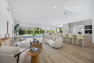Welcome home to Villa Blanco, located in the coveted River community at The Bluffs. This reimagined three-bedroom, two-bath + loft single-family residence embodies the essence of a luxury villa, exuding a timeless, tropical modern ambiance. The custom finishes in this home are unprecedented for The Bluffs, making Villa Blanco the closest experience to new construction you'll find within this community. Prepare to fall in love the moment you step inside. Valuted ceilings, skylights, and numerous sliding doors offer beautiful natural light, complementing the tropical earth-toned finishes and timeless marbles. This full renovation was completed in October 2025 and has not been lived in since completion. The River at the Bluffs offers a community pool, playground, tennis and pickleball.Highlights include a metal roof (2020), impact front door (2025), impact windows (2022), a heated pool, new A/C (2020), water heater (2022), new flooring (2025), marble bathrooms (2025), new carpet (2025), custom built-in kitchen featuring an oversized marble island, Miele appliances (built-in coffee maker, oven, and microwave), and Fisher & Paykel appliances (refrigerator and dishwasher drawer), all installed in 2025. The relandscaped backyard showcases lush greenery and a sandblasted marble deck, offering a private, tropical oasis to enjoy the sparkling heated pool. The luxurious primary suite has an abundance of closet space, a marble bathroom, and a private water closet. The guest full bath offers a marble shower and an adjacent zoned beverage refrigerator; the second bedroom holds a 19x19 loft. It can double as a bedroom-office, and the third bedroom has a new built-in closet (2025), brand-new front-loading washer and dryer. This community is located a mile from Jupiter's beautiful beaches and in close proximity to public and private golf courses, incredible shopping and dining, marinas, and the intracoastal waterway.
