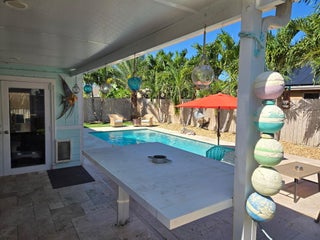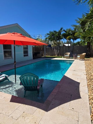Welcome to The Heights of Jupiter, also known as North Palm Beach Heights one of Florida's most sought-after neighborhoods. This 3-bedroom, 2-bath home with a 1-car garage features a split floor plan, open kitchen with island seating, built-in closets, and a cozy enclosed flex room. The backyard is a private paradise with a sparkling pool and sun shelf, two sitting areas, an outdoor kitchen, and a well manicured fully fenced yard. Space is available to park a boat or RV up to 30 feet. A front wood deck lets you enjoy the neighborhood's festive Halloween and December holiday lights. One street from the park and playground, soon to be remodeled. Minutes from I-95, Roger Dean Stadium, shops, and 15 minutes to the beach.AC (4 ton) 2025, wash and Dryer 2022, Kitchen appliances and Pool 2019,Water heater 2018, Roof 2005.