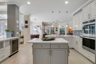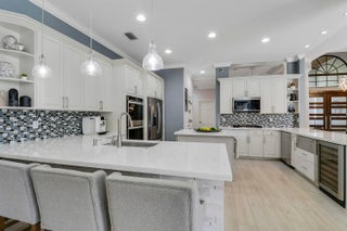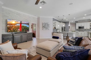 Luxury Living with Space to Spare - 6BR/6BA Pool Home with Office & Den. Step through custom designer entry doors into a home that exudes elegance and comfort. This expansive residence offers 6 bedrooms and 6 bathrooms in a thoughtfully designed 4-way split floor plan, complemented by a spacious den, dedicated office, formal living room, and inviting family room. Natural light fills the interior, highlighting the quality craftsmanship throughout. The chef's kitchen is a true centerpiece, featuring a gas cooktop, double ovens, warming drawer, beverage center, and generous quartz countertops -- ideal for entertaining. The primary suite is a private retreat, complete with a luxurious bathroom and direct access to the newly resurfaced patio. Enjoy the sparkling pool,...unwind in the heated spa or gather around the summer kitchen under the covered patio perfect for outdoor dining and relaxation. Additional highlights include impact glass throughout and a 2023 roof for peace of mind and long-term value.