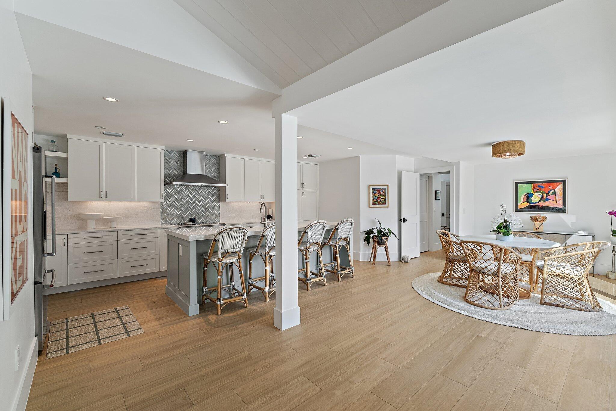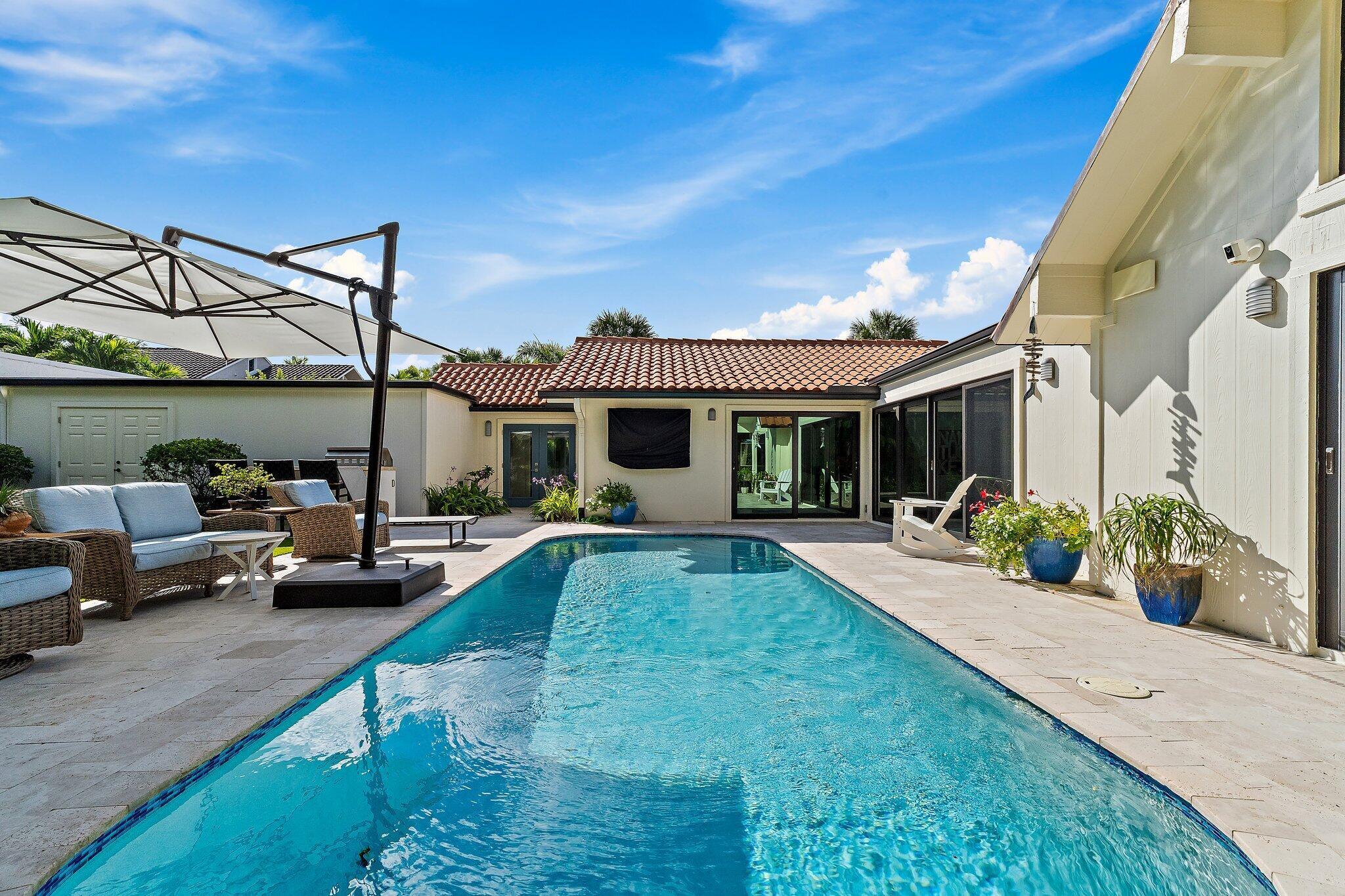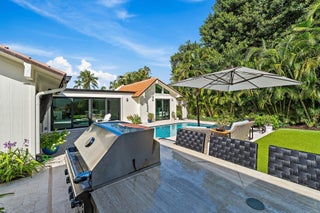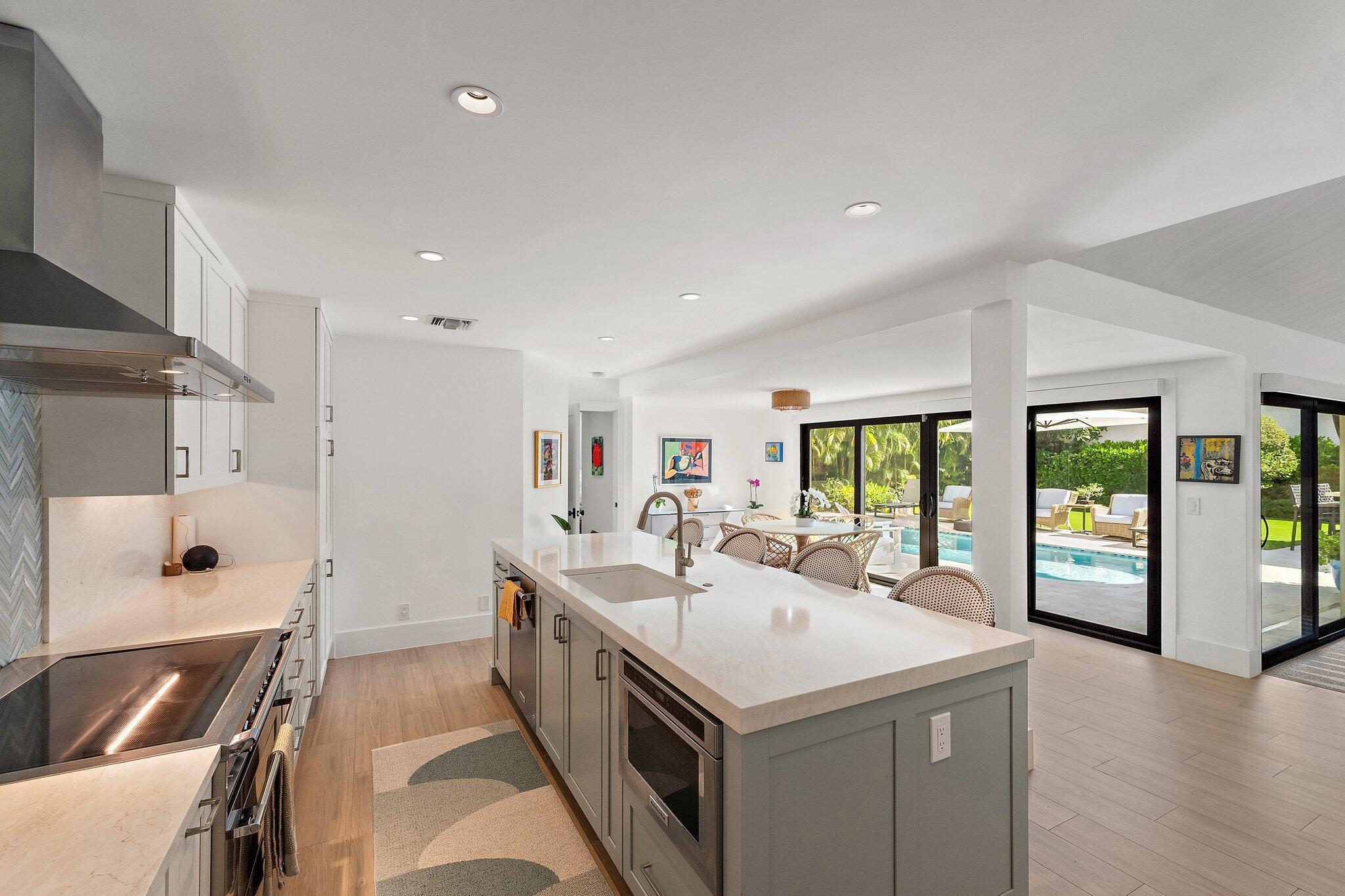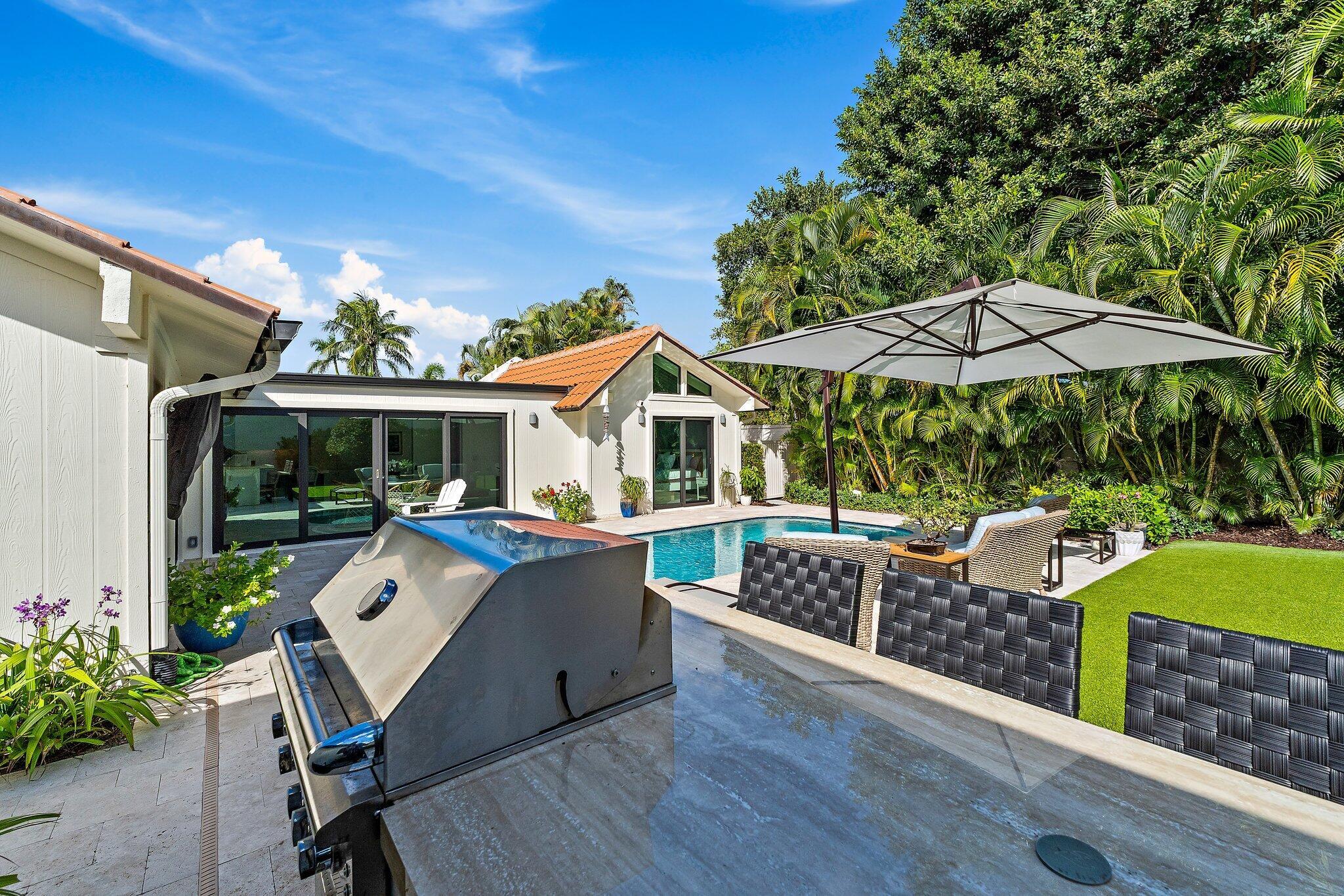 Fully remodeled in 2021, this stunning single story home in Jupiter's gated Ocean Walk community combines modern luxury with a relaxed coastal lifestyle - just steps from the Atlantic Ocean. The chef's kitchen features custom cabinetry, high-end appliances and quartz countertops. Open-concept living areas showcase contemporary finishes and abundant natural light. One of the largest backyards in the community includes a saltwater pool, travertine deck, summer kitchen and synthetic turf. Additional upgrades include impact windows and doors, updated systems and thoughtful design throughout. Gate community with lush landscaping and private beach access, close to dining, shopping and recreation.