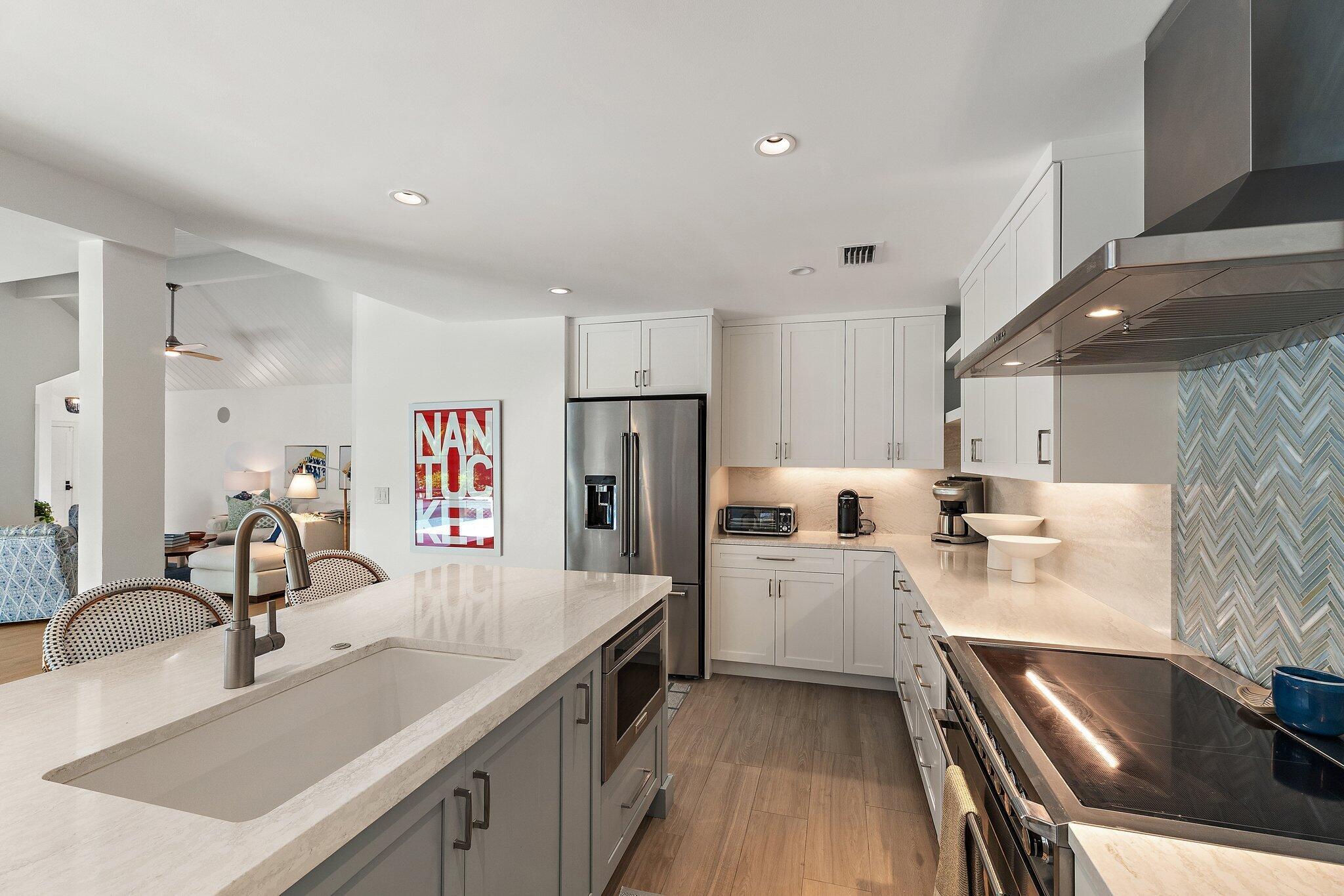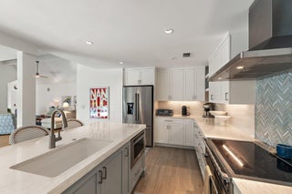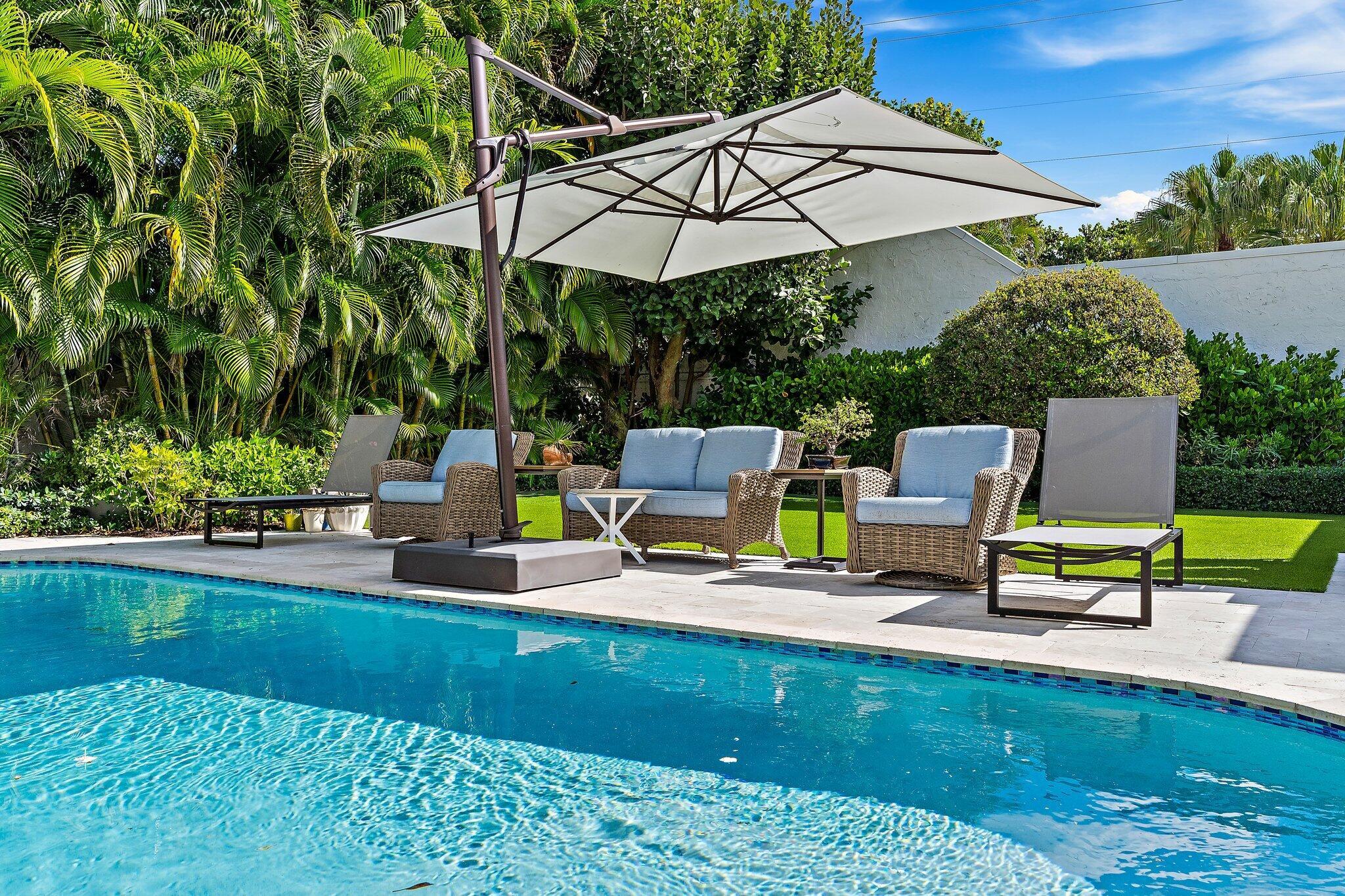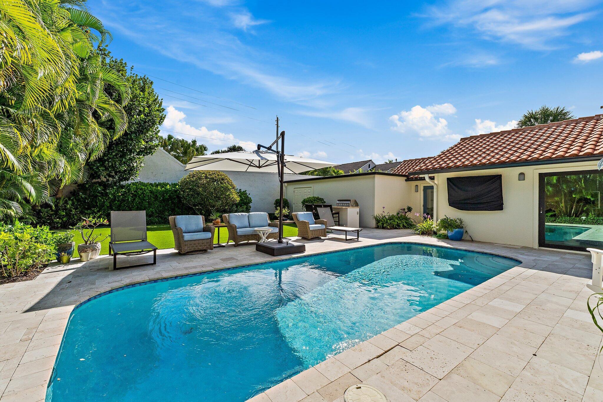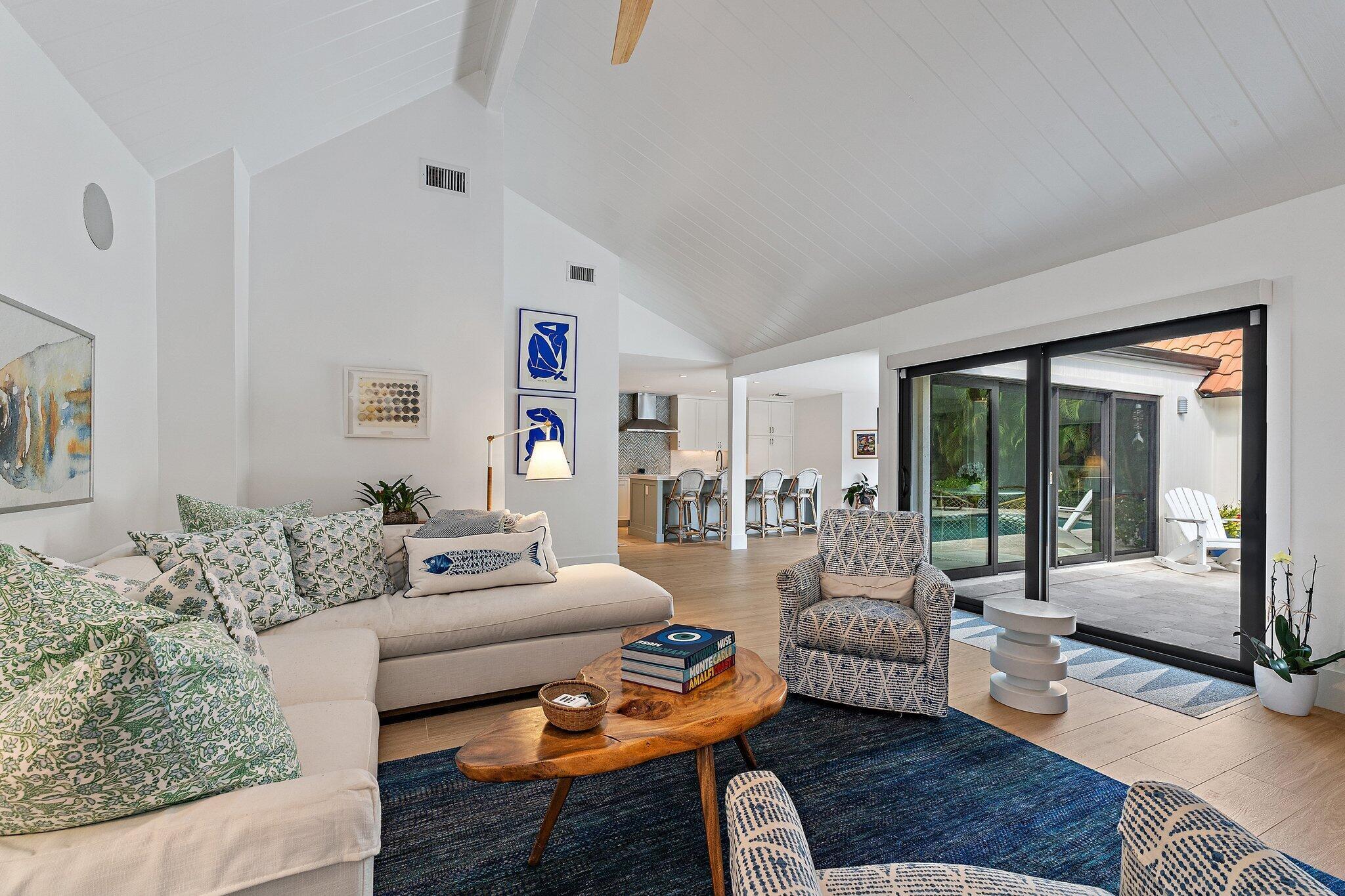Fully remodeled in 2021, this stunning single story home in Jupiter's gated Ocean Walk community combines modern luxury with a relaxed coastal lifestyle - just steps from the Atlantic Ocean. The chef's kitchen features custom cabinetry, high-end appliances and quartz countertops. Open-concept living areas showcase contemporary finishes and abundant natural light. One of the largest backyards in the community includes a saltwater pool, travertine deck, summer kitchen and synthetic turf. Additional upgrades include impact windows and doors, updated systems and thoughtful design throughout. Gate community with lush landscaping and private beach access, close to dining, shopping and recreation.