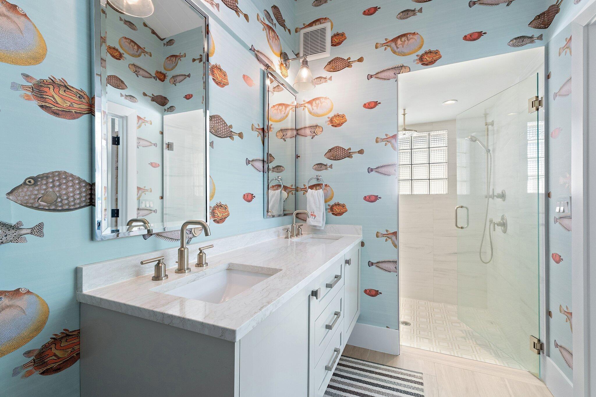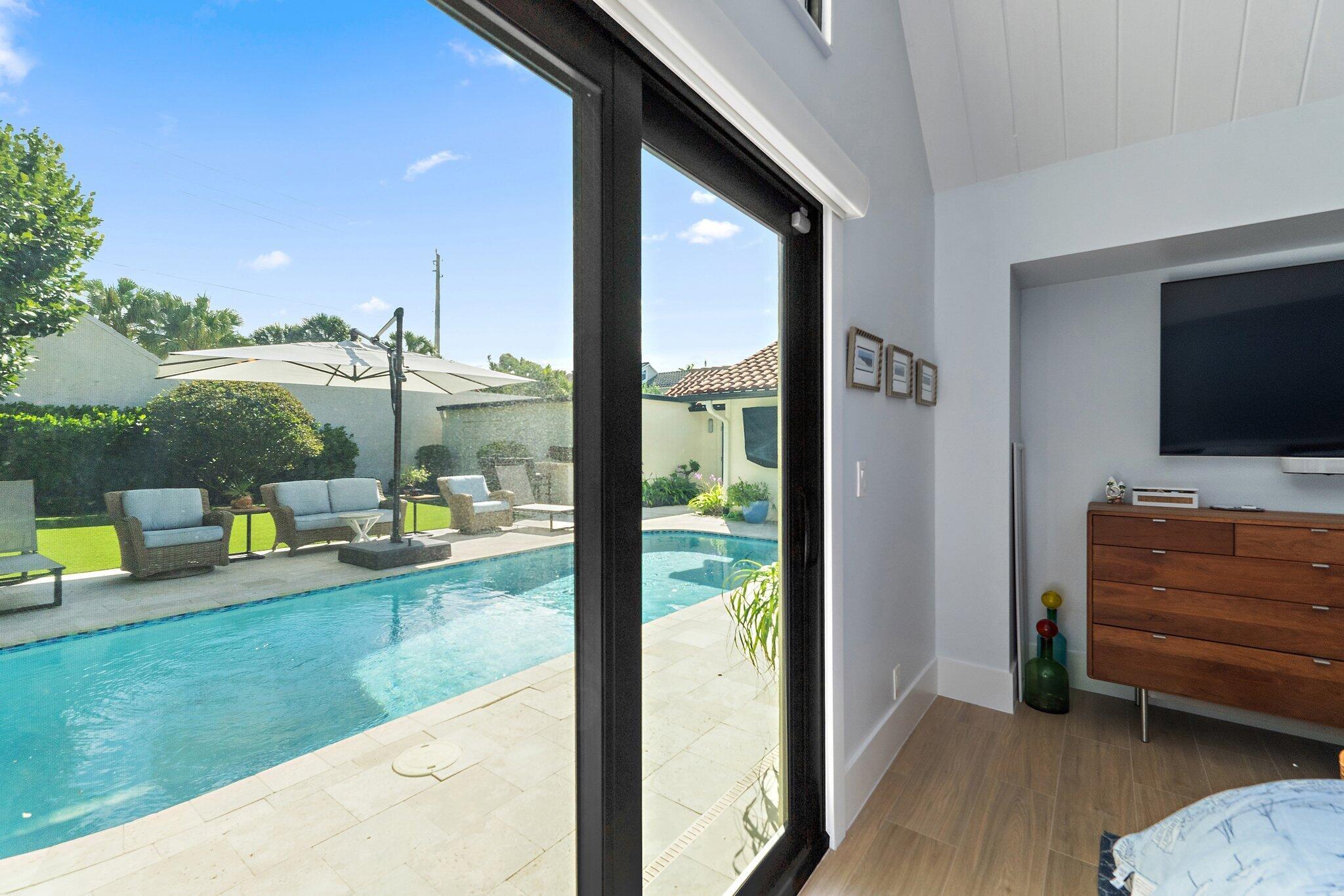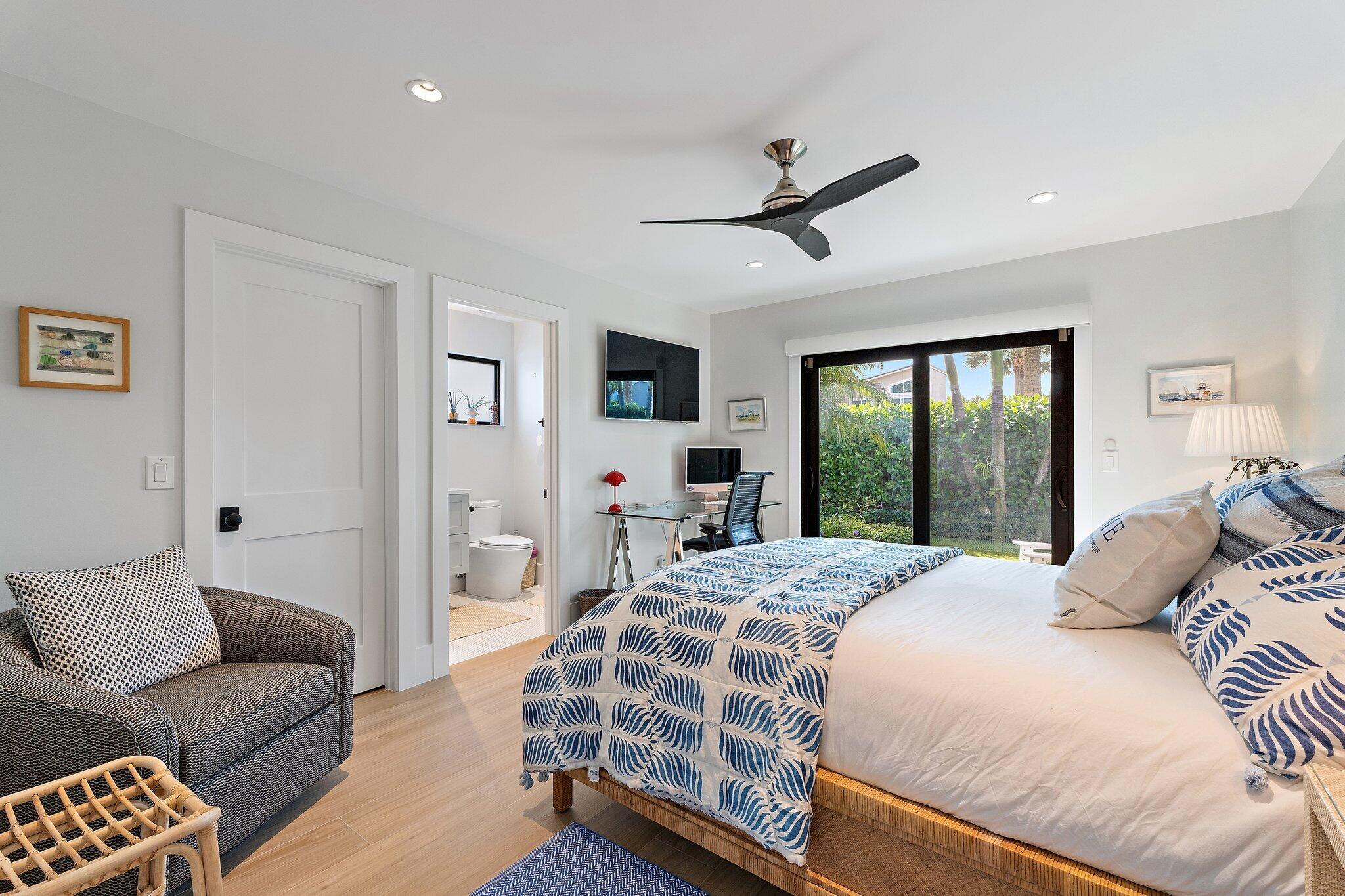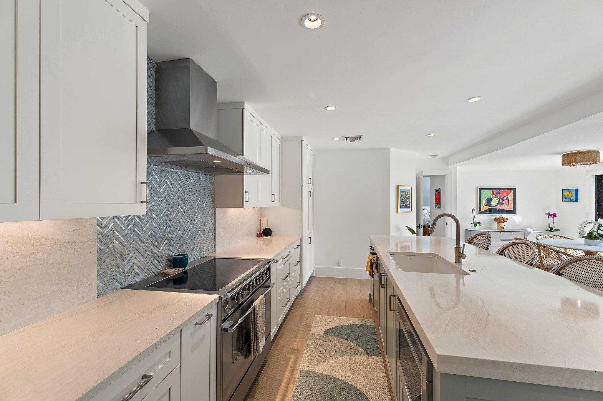 Fully remodeled in 2021, this stunning single story home in Jupiter's gated Ocean Walk community combines modern luxury with a relaxed coastal lifestyle - just steps from the Atlantic Ocean. The chef's kitchen features custom cabinetry, high-end appliances and quartz countertops. Open-concept living areas showcase contemporary finishes and abundant natural light. One of the largest backyards in the community includes a saltwater pool, travertine deck, summer kitchen and synthetic turf. Additional upgrades include impact windows and doors, updated systems and thoughtful design throughout. Gate community with lush landscaping and private beach access, close to dining, shopping and recreation.