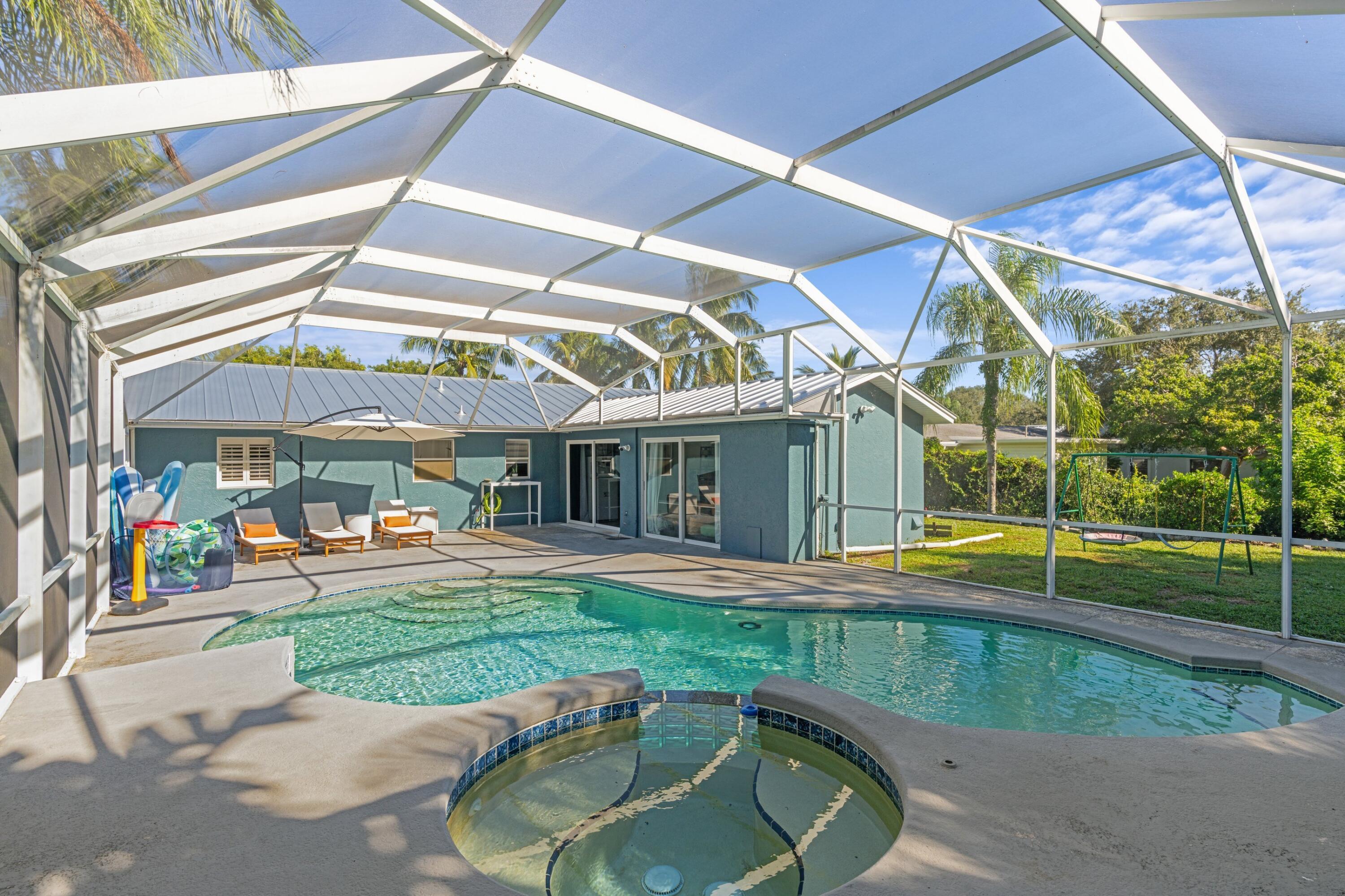 This stunning 4-bedroom, 2-bath home with a new metal roof (2025) sits on a spacious lot and blends modern upgrades with timeless style. Inside, you'll find granite countertops, stainless steel appliances, and an open layout perfect for entertaining. Recent updates include a new hot water heater (2025), water softener and pump (2025), pool equipment and heater (2025), and a 2021 AC system. Impact sliders with shutters provide full storm protection and peace of mind.Outdoors, unwind in your private retreat featuring a heated pool and spa, generous 6-car driveway, and expansive patio. Two backyard storage sheds add extra convenience, with the larger one equipped with electricity. Enjoy the 2-mile walk, drive, or bike ride through the Tunnel of Trees to the beach. Surrounded by quiet,nature-filled scenery, this home offers serenity, privacy, and effortless Florida living-without HOA restrictions.