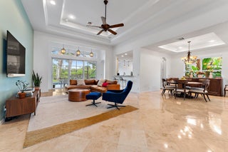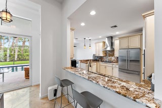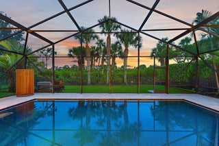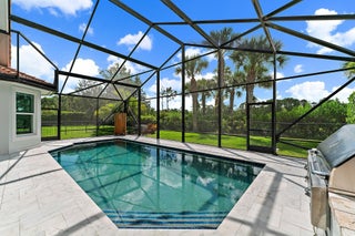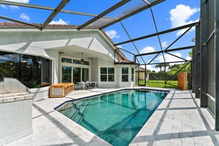 Welcome to 236 Carina Drive, an elegant single-story residence in Jupiter Country Club WITH IMMEDIATE GOLF MEMBERSHIP. This beautifully appointed home features 3 bedrooms, 2.5 baths, and a versatile den across 2,621 square feet of living space and air conditioned 3-car garage. The open-concept showcases soaring coffered ceilings, hardwood and marble flooring throughout and a chef's kitchen with Wolf appliances and custom cabinetry. The primary suite offers dual walk-in closets and preserve views. Outside is a private oasis with a heated salt system pool and fully equipped summer kitchen--perfect for year-round entertaining. Additional highlights include a whole-house generator, water purification system, and impact glass throughout.