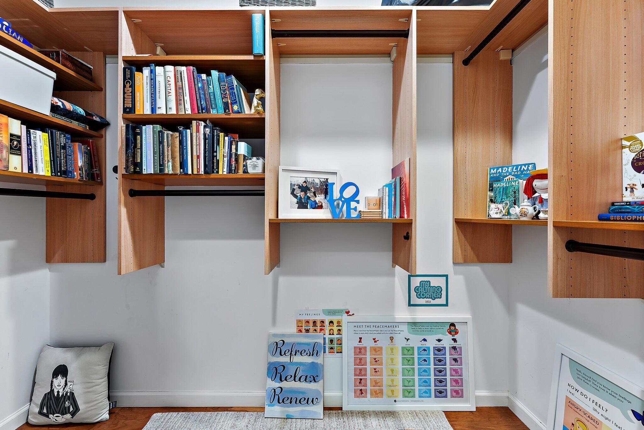 Built-in Shelves, Closet Cabinets, Entry Lvl Lvng Area, Split Bedroom, Volume Ceiling, Walk-in Closet