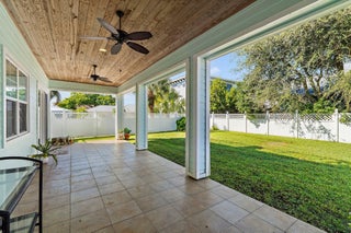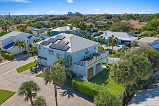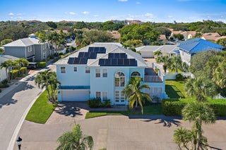 Nestled in the exclusive gated community of Xanadu by the Sea, this rare 4-bedroom CBS home sits on one of the largest lots in the neighborhood--just a five-minute stroll to dog-friendly Jupiter Beach. The open-concept kitchen and living area flow seamlessly to a covered patio overlooking an expansive fenced yard with space for a resort-style pool. Features include impact-resistant windows, a state-of-the-art solar electric system with Tesla Powerwall backup, and a bi-directional metering setup for energy efficiency. The flexible 4th bedroom on the main level doubles as an office next to a full bath, while the upstairs master suite opens to a private balcony for morning coffee or ocean breezes. Enjoy gated beach access to Carlin Park, minutes from Jupiter's best restaurants & shops.Experience coastal luxury and energy-efficient living in this beautifully updated 4-bedroom CBS home located in the gated community of Xanadu by the Sea, just a short five-minute stroll from dog-friendly Jupiter Beach. Situated on one of the largest lots in the community, this property offers a rare combination of privacy, sustainability, and walkable beachside living. Step inside to find an open-concept kitchen and living area designed for relaxed entertaining. The kitchen features modern cabinetry, high-end appliances, and a large center island that flows effortlessly into the bright, spacious living room. Sliding glass doors open to a covered patio overlooking a large fenced yard, ready for your dream pool, garden, or outdoor kitchen. The main-level fourth bedroom doubles as a convenient home office or guest suite, complete with an adjacent full bathroom. Upstairs, the primary suite features a private balcony, perfect for enjoying morning coffee or evening sea breezes, along with two additional bedrooms that provide plenty of space for family or guests. Residents of Xanadu by the Sea enjoy direct access to Carlin Park through a private community walkway, with pickleball courts, an amphitheater, and a scenic fitness trail that winds along the coastline. The community of just over 60 homes maintains a boutique, close-knit coastal feel. This is a rare gem in Jupiter.