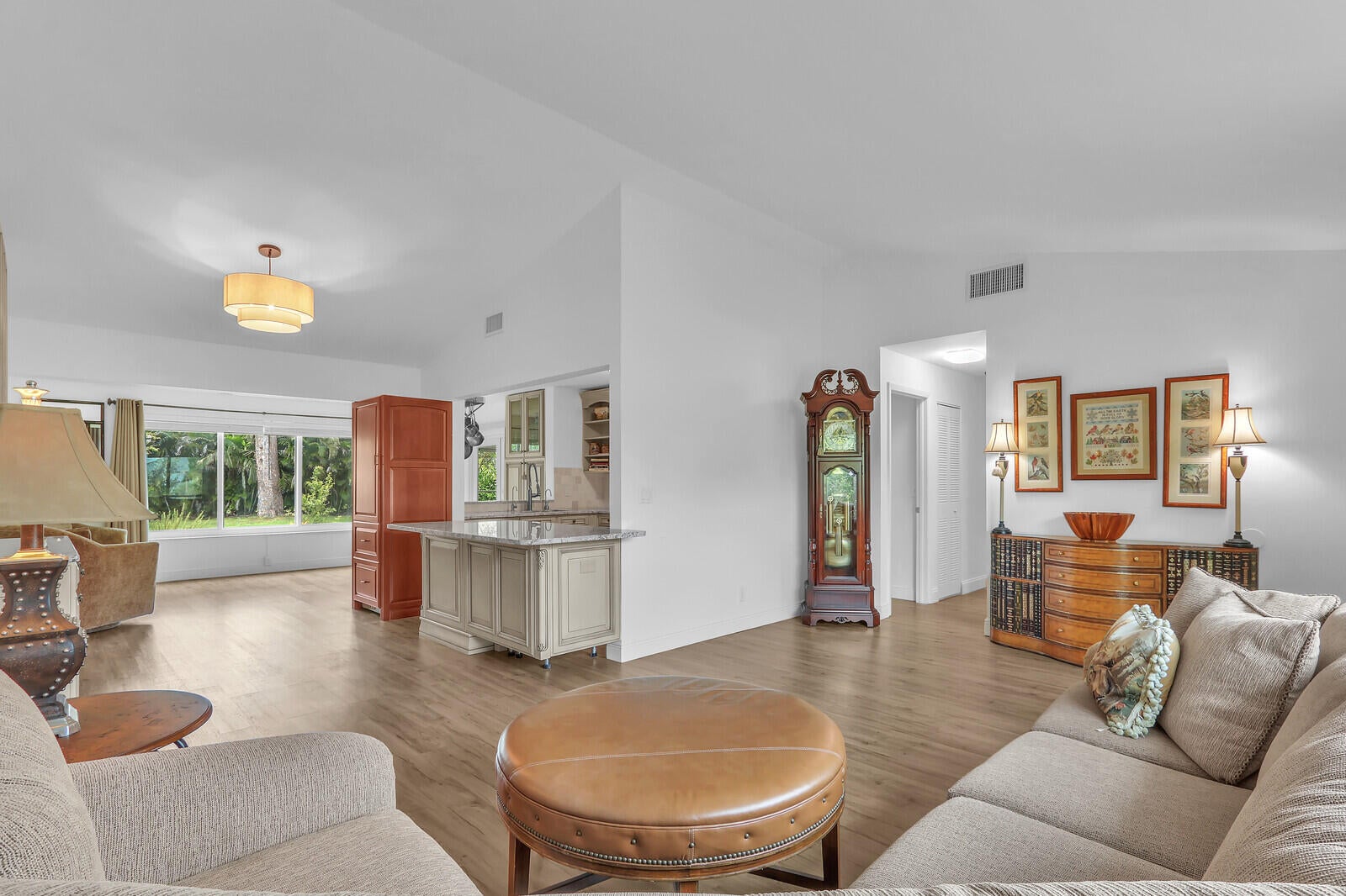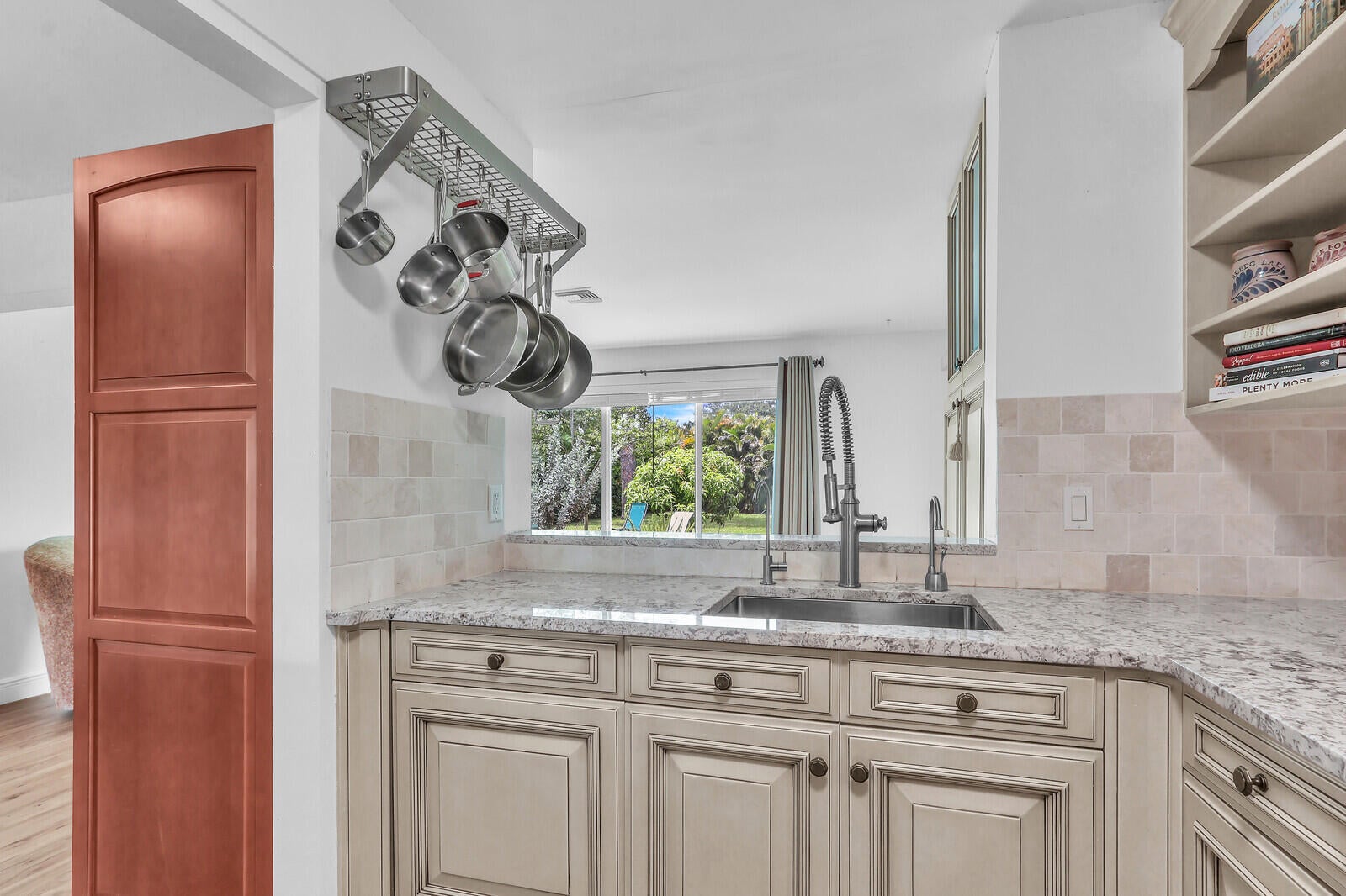 This is your chance to live in the beautiful city of Jupiter Florida! This 2-bedroom, 2 bath home is beautifully updated with hurricane impact windows, newer roof, newer ac, and engineered wood flooring, Downsview cabinetry in the kitchen plus high end appliances including Miele convection oven, Sub-zero refrigerator Bosch cooktop and upgraded granite countertops. Located close to beaches, shopping, and restaurants. The oversized lot has lush landscaping and many organic plants and fruit trees including avocado, mango and jack fruit. A-rated schools district and community pool make this home a rare find. Investors-no restrictions on short term rentals.