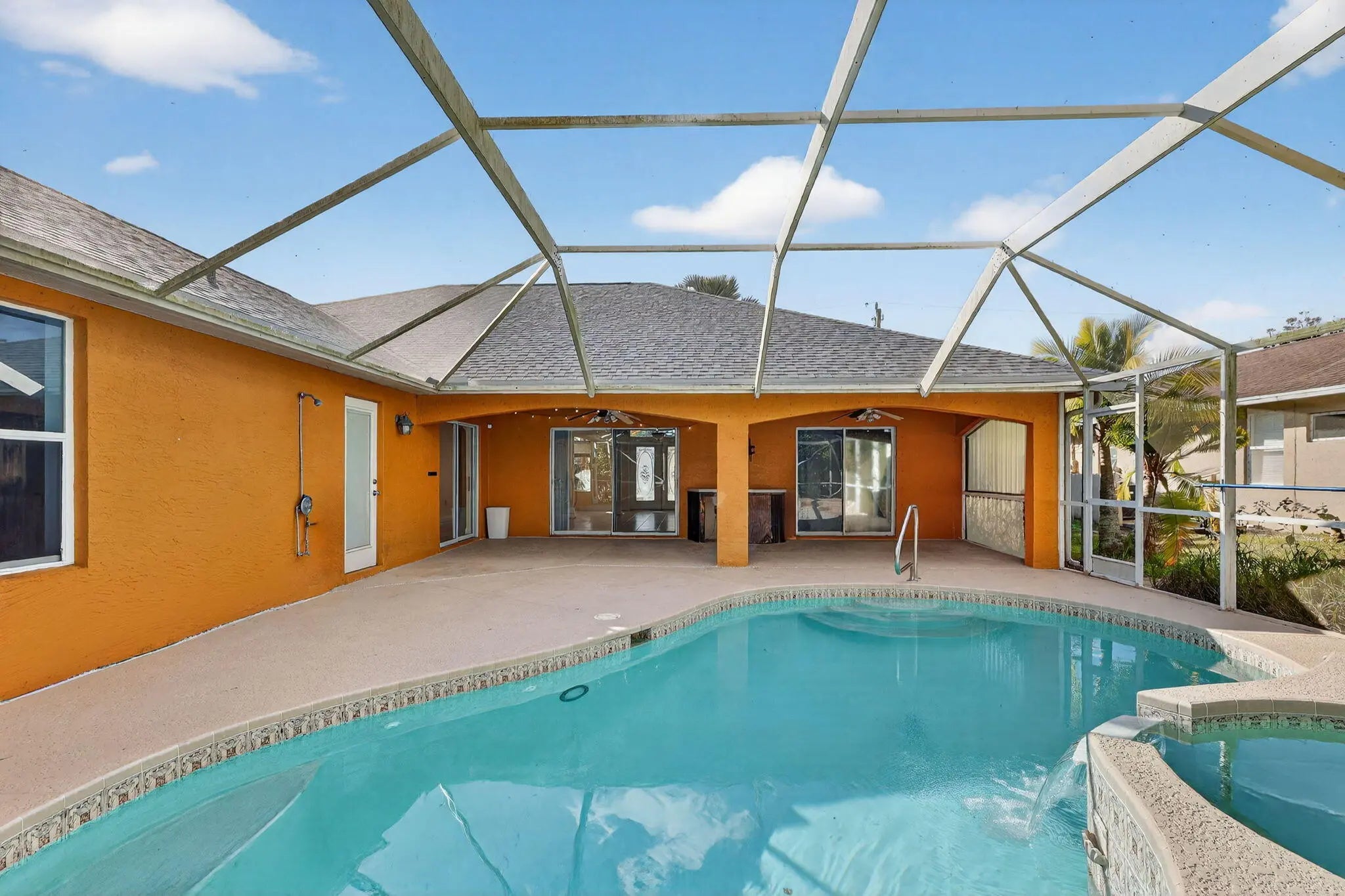 Welcome to this spacious 4-bedroom, 2-bath pool home in the highly desirable South Bend neighborhood. Thoughtfully designed with a split-bedroom floor plan, this well-maintained residence offers both privacy and functionality. Enjoy a 2-car garage, generous living spaces, and a solar-heated pool and spa enclosed by a screened lanai--perfect for relaxing or entertaining year-round. A new roof (2025) adds peace of mind. Ideally located just steps from the community park, offering easy access to walking paths, bike rides, and outdoor enjoyment. A wonderful opportunity to make this home your own.