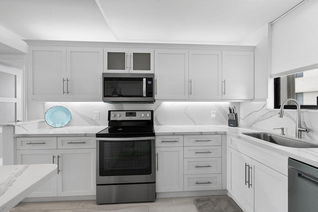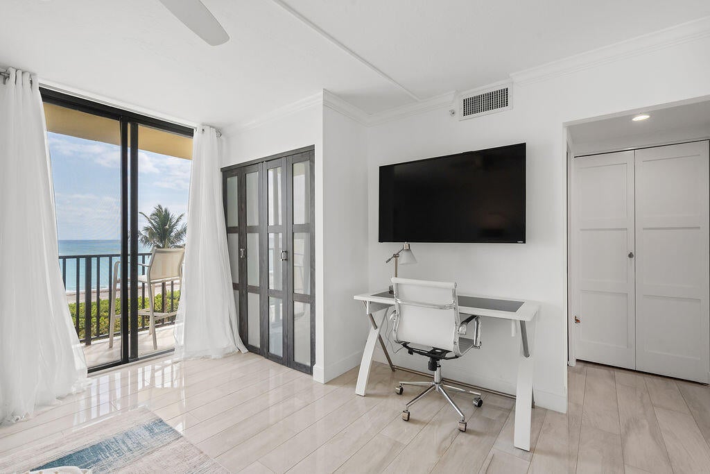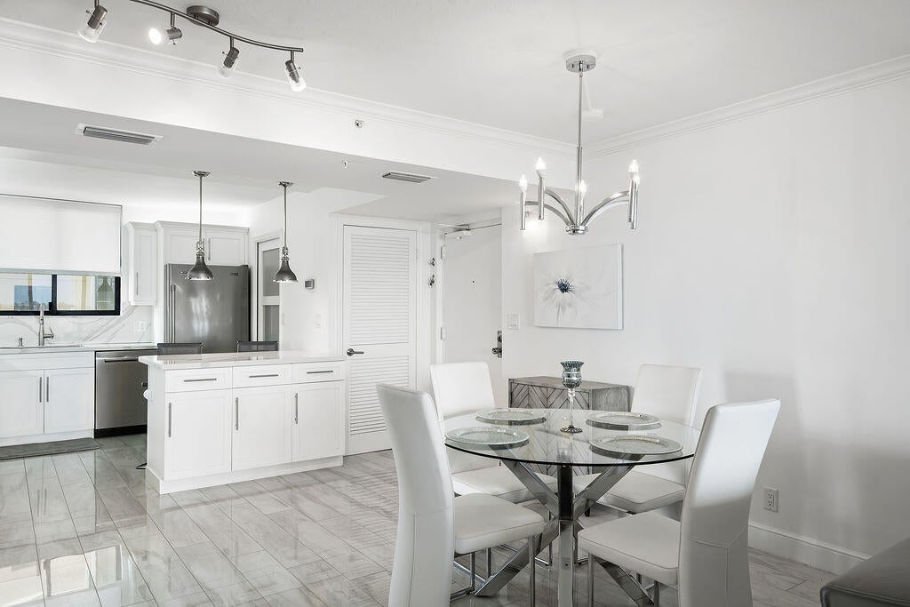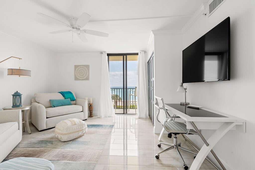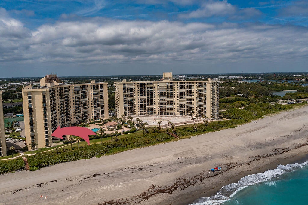 Oceanfront Luxury - Fully Renovated Ocean-side Unit with Breathtaking Views One of the most beautiful seaside towns on the east coast, Jupiter, Florida, and the only luxury condominium development directly on Jupiter Beach. This unit is one of the very rare ocean-facing end units with panoramic views of the Atlantic Ocean from every room and all three balconies. The gated Ocean Trail Community has a resort-like feel with all the amenities and this unit has been meticulously upgraded from floor to ceiling with the finest materials and craftsmanship. The open floor plan seamlessly connects the living, dining, and kitchen areas, creating the perfect with stunning ocean vistas. The flooring features Florine tile from Italy, while the kitchen dazzles with Cambria quartz countertops andbacksplash, both bathrooms are refinished with the latest style and materials. Every door throughout the home is solid wood, with select frosted panels adding a touch of modern sophistication: new appliances, A/C unit and hurricane shutters. Located in the exclusive Ocean Trail community, residents enjoy resort-style amenities including 24 hour manned security, underground parking garage and extra storage spaces, tennis courts, heated pools, hot tubs, sauna, fitness center and private beachfront access. Wake up to the sound of waves, unwind with ocean breezes, and embrace a lifestyle of luxury and tranquility.