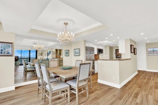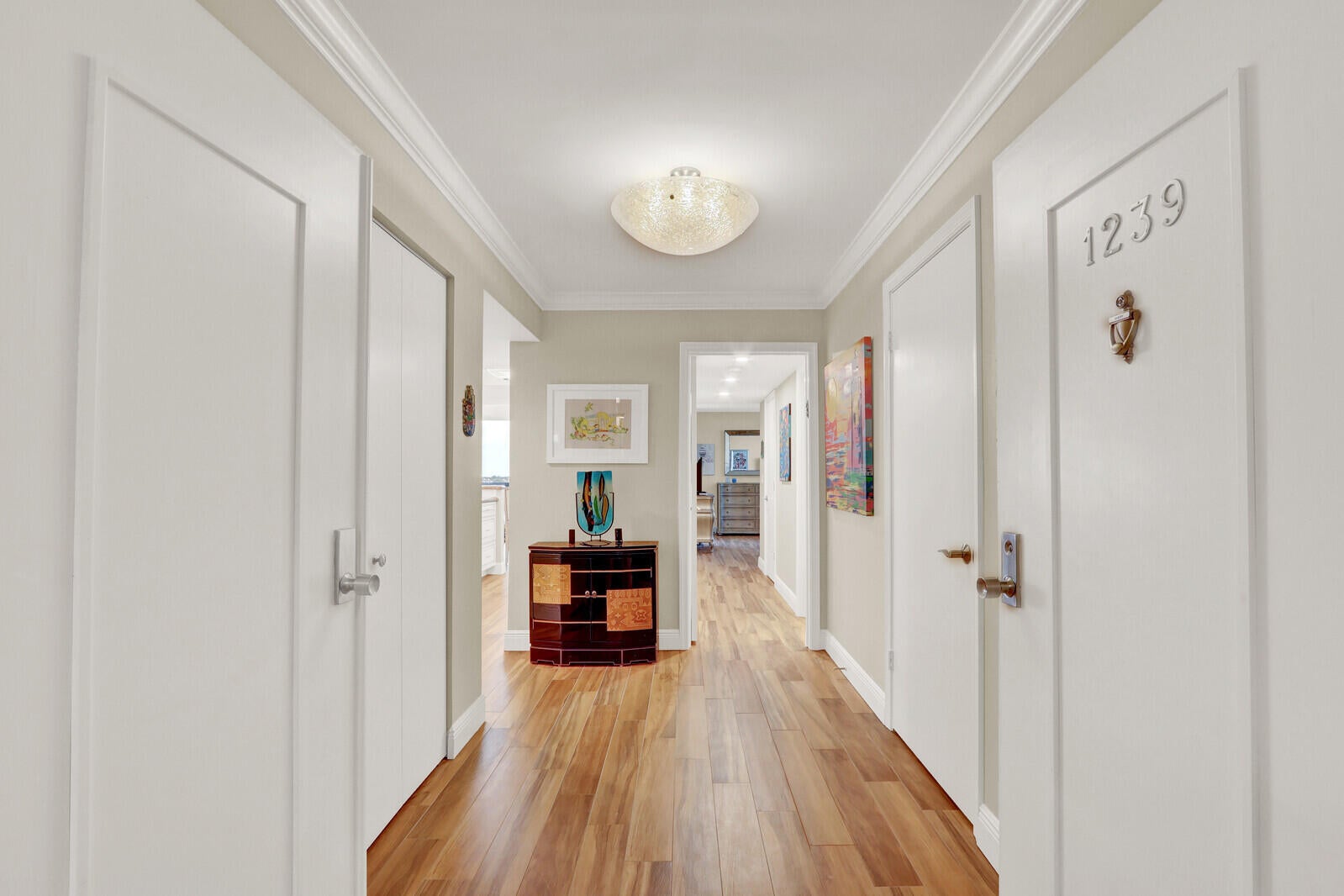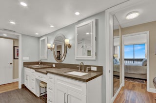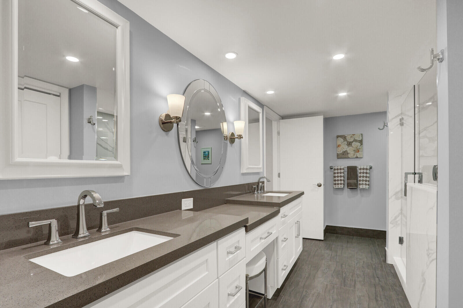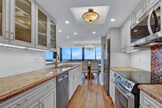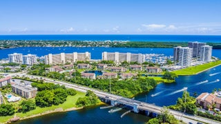 Move right in everything has been done for you! This beautifully renovated 2-bedroom, 2-bathroom luxury condominium on the 12th floor offers an elevated coastal lifestyle with wrap-around deck & breathtaking views from every room, overlooking the Intracoastal Waterway, Singer Island, and the Atlantic Ocean. Enjoy both spectacular sunrises and sunsets. The condo features new HURRICANE IMPACT floor-to-ceiling windows and sliding glass doors, bringing in abundant natural light and showcasing the incredible views. Completely RENOVATED with high-end finishes, porcelain wood-look plank tile flooring, LED high-hat lighting, new doors throughout, freshly painted. New waterproof decking 2025.Both bathrooms have been remodeled with quartz countertops and nickel cabinet hardware. The primary bathroom includes an oversized shower with porcelain Calcutta large-format wall tile, a dual vanity with generous storage, and a linen closet with built-in shelving. The large primary suite also features a huge walk-in closet with custom shelving and organizers, plus a spacious dressing area with a large mirror. The stunning kitchen offers granite countertops, a stylish backsplash, reeded glass upper cabinets, and under-cabinet lighting. High-end JennAir and Bosch kitchen appliances. The former passthrough wall was removed to create an open layout that maximizes the expansive views. The dry bar has excellent cabinet storage and matching nickel hardware. Additional interior features include ceiling fans in the living room and primary bedroom, decorator crown molding and baseboards, and a spacious laundry room with cabinetry, a quartz folding shelf, and newer Whirlpool full-size washer and dryer. There is also a coat closet in the foyer and a storage closet located just outside the unit. Mechanical updates include a new AC (2022), new hot water heater (2024), an upgraded electrical panel, new lighting with dimmers, and all new California-style closets and cabinetry throughout. Enjoy the views from the expansive wrap-around balcony, and appreciate the newer window treatments already in place. New waterproof decking 2025. Community amenities include a 24-hour manned gatehouse, pool, hot tub, summer BBQ area, multiple lounge areas, and community room with kitchen perfect for entertaining. Residents also enjoy a 2-mile waterfront walking path around the complex and the adjacent, independently operated Safe Harbor Marina with dock rentals, fuel services, and direct ocean access. All-ages building. Small pet allowed.