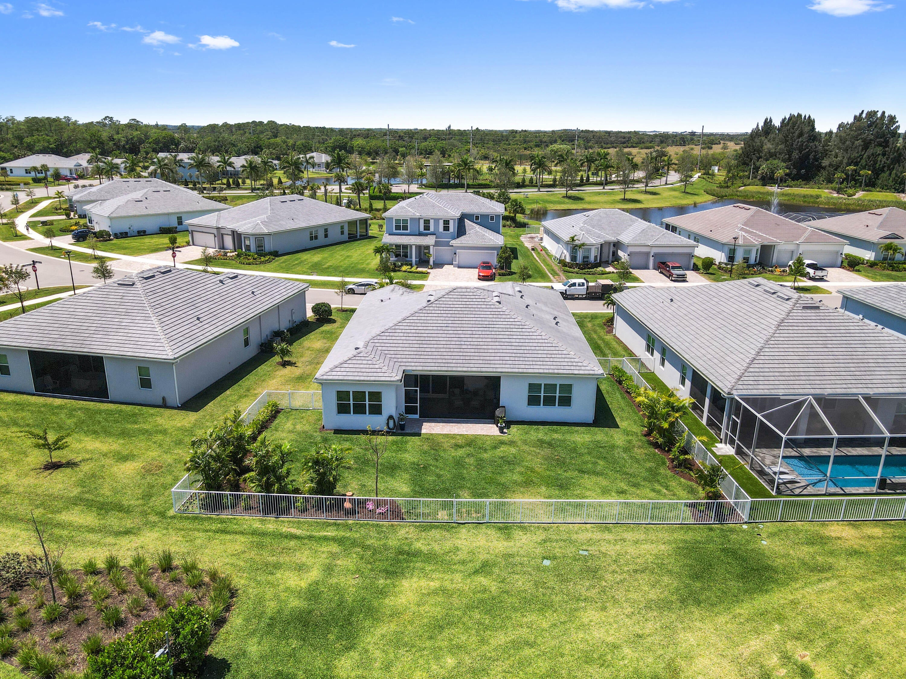 Stunning 4 Bedroom, 3 Bathroom ''Stellar'' Model with Lake Views in Gated Highpointe Community! Welcome to the Stellar model in the highly sought-after Highpointe community located in Stuart, FL. This beautifully upgraded one-story home offers 2,658 square feet of living space, featuring an open-concept design. Situated on an oversized, pie-shaped lot with breathtaking lake views, this home boasts more than $50,000 in recent upgrades, including a patio screen and extension, a fully fenced yard for privacy, stunning landscaping, improved drainage solutions, and a custom-built drop zone that adds both style and functionality. Plumbing and electrical upgrades were placed with thought for every convenience!Smart home features allow for easy control of your home's environment with just a touch of a button. Inside, the home features soaring tall ceilings that create a bright, airy atmosphere. The gathering room is particularly striking, with stunning wood beams adding character and warmth to the space. The spacious layout with an added sunroom flows effortlessly, offering an open and inviting feel throughout. You'll also appreciate the ample closet space, providing abundant storage and keeping your living areas organized. The gourmet kitchen is ideal for cooking and entertaining, and the living areas are designed to accommodate everything from family gatherings to quiet nights in. Highpointe is a beautiful, gated community offering outstanding amenities. These include a resort-style swimming pool, clubhouse, gym and fitness center, tennis courts, pickleball courts, dog park, and a playground - all just a short walk from your front door. Don't miss your chance to own this exceptional Stellar model, featuring luxurious upgrades, expansive storage, and a prime location. Schedule your private tour today!