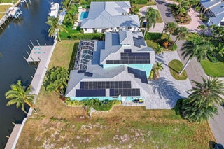 This waterfront home delivers the space, build quality, and location serious boaters want. Solid CBS construction, full impact glass, and over 4,000 sq ft of bright, well-designed living space with the primary suite, office, and billiard room on the main level. The deep-water dock has the capacity for a 65+ ft vessel and offers quick access to the Intracoastal and both inlets. Inside, the chef's kitchen, open layout, and natural light create an easy, coastal flow ideal for everyday living. Outside, enjoy a screened pool, large lanai, and wide canal views. Fully off-grid with 76 solar panels and a Tesla charger, this property combines modern efficiency with laid-back Florida living. A rare, high-quality waterfront opportunity.