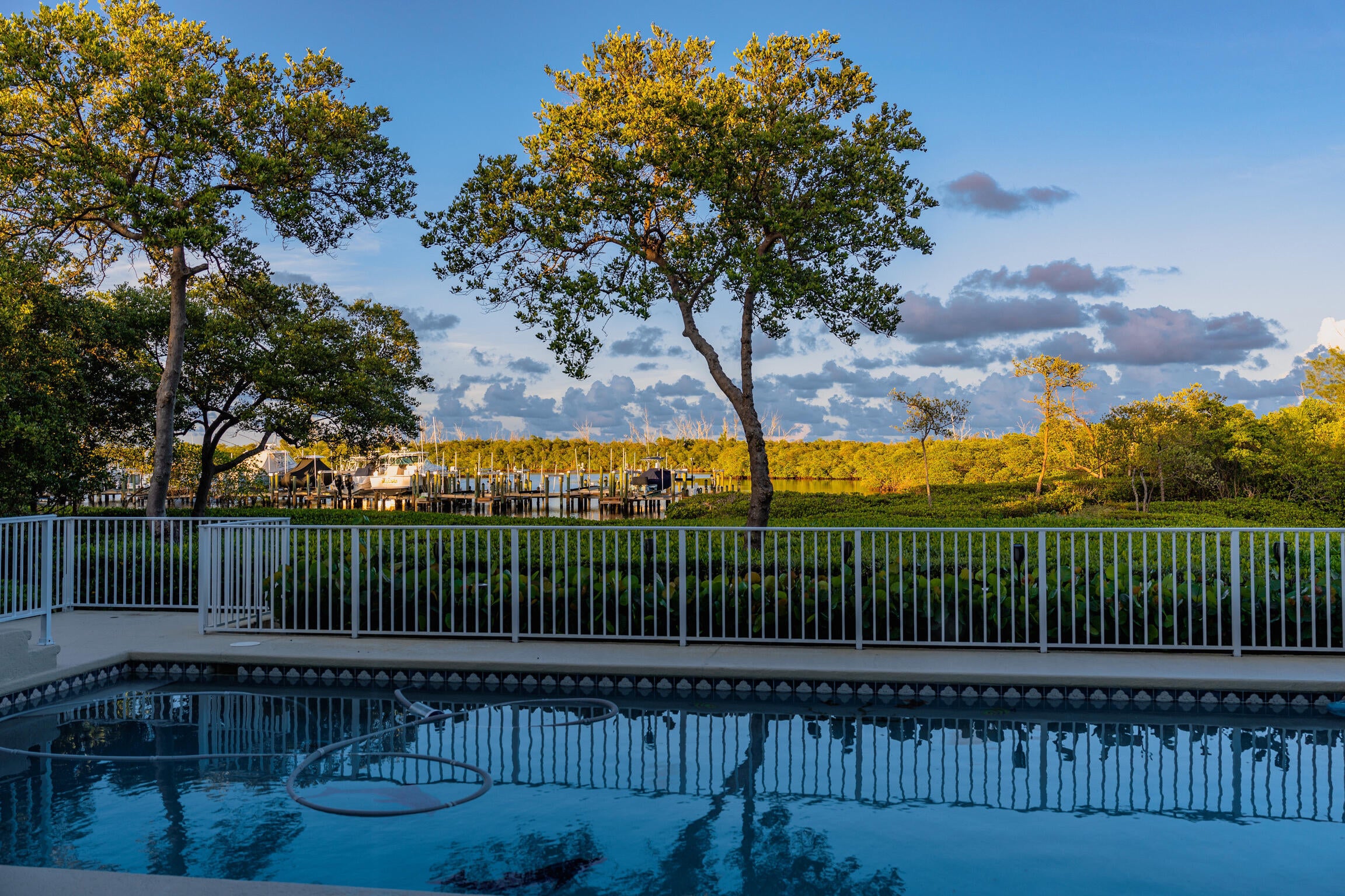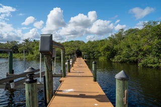 Experience luxury living at its finest in this one-of-a-kind waterfront contemporary home situated in the exclusive gated community of Marina Bay on the intracoastal waterway in Hobe Sound. Upcoming Stuart High Speed Brightline Train Station (Orlando-Miami) just a short drive away. Enjoy stunning intracoastal views from the screened porches and easy access to the water with a newly installed 16,000 lb boat lift and jet ski lift, complete with a deeded boat slip (14 ft x 40 ft). Relax by the oversized saltwater pool with a lap lane and pool house, or take in the ocean breeze from across Jupiter Island. With over 5000 sq. ft. of air-conditioned living space and 8000 total sq. ft., this property has plenty of room for comfortable living and entertaining.