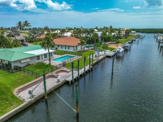 Incredible opportunity to live the Florida waterfront lifestyle! Home for your Yacht - 100 ft of waterfront paradise on deep water 100' wide canal, 6 homes from the Intracoastal Waterway. The perfect place to moor your boat and enjoy ''bridgeless'' access to ocean. Remarkable features that make this property a true gem: Concrete seawall + 40 foot dock w xtra large/high pilings to moor up to 60ft boat. +21 ft slip in area of the davits for jet skis or 14ft boat. Solid CBS construction, impact doors/window, hickory floors, big master w walk-in closet his/hers vanities, central vacuum, lots of living space, plantation shutters, built-in book cases, extra large 2 car garage. Experience thrilling water sports adventures from your backyard. The Pine School (pre K - 12)3 miles and the boat ramp at Jimmy Graham Park is less than 1.5 miles away. For those who enjoy paddle boarding or kayak there's ample space to store your gear, and it is less than 2 miles to paddle to the beach.. This parcel truly hits a home run for boating and water sports enthusiasts. Not only does this property offer an exceptional waterfront experience, but it also provides easy access to some of Florida's most breathtaking beaches. Just a 3 mile walk, bike, or drive away, you'll discover Hobe Sound Beach.one of the best beaches in Florida, complete with miles of uncrowded shoreline. Whether you want to relax under the sun or take a long walk with your furry friend in the dog-friendly area, this beach has it all. Explore the nesting sea turtles, engage in exciting snorkeling adventures, or cast your fishing line from the shores. The possibilities for unforgettable moments are endless. Doc Meyers Park (soccer, baseball, basketball, tennis) is 1.3 miles away, and Hobe Sound Elementary School is just 2 miles away. Whether you want a quick bite to eat, quiet fine dining and cocktails in Hobe Sound, or waterfront nightlife at the St. Lucie or Jupiter Inlets, this home is positioned perfectly. Hobe Sound area is a haven for golf enthusiasts with plenty of public and private golf courses. Tee Times magazine even named Hobe Sound the "High-End Golf Course Capital of the World." So, if golfing is a must for you, rest assured that several incredible courses are just a short distance away.