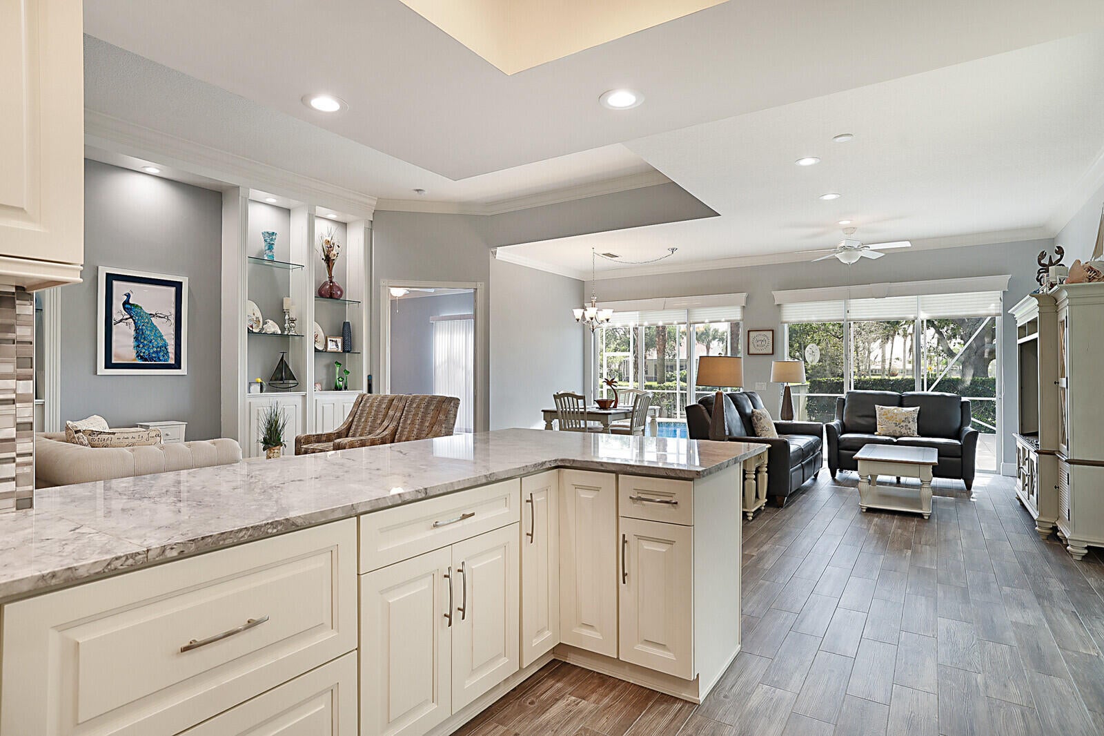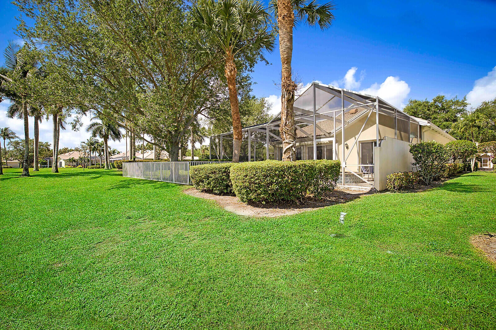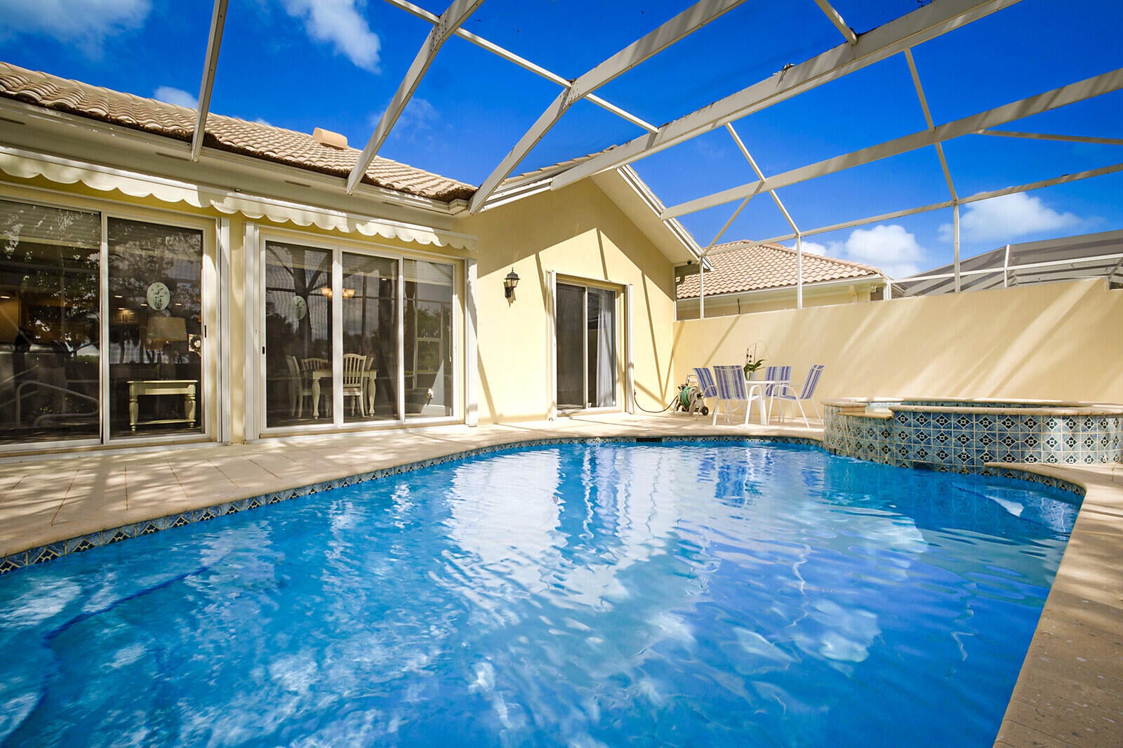 Welcome to this exceptional 3-bedroom plus den, 2-bathroom, single-family pool home in the prestigious Isles at Palm Beach Gardens. Built by Divosta in 2002, this Oakmont model sits on a corner lot and offers direct lake views and high-end upgrades throughout. The spacious open concept great room features soaring 12-foot ceilings, custom built-ins, elegant wood-look tile and crown molding. The chef's kitchen is beautifully designed with white cabinets and granite countertop. The spa-like master bathroom includes dual solid wood vanities, a tiled walk-in shower with upgraded hardware, and a separate soaking tub. Both secondary bedrooms are generously sized and have upgraded fixtures. The versatile den/office boasts is an ideal workspace.This home also boasts a brand new air conditioner (April 2025) and a central vacuum system. This stunning home features a screen-enclosed heated saltwater pool and spa, allowing you to enjoy year-round outdoor relaxation in comfort. The oversized covered patio, complete with electric awning is perfect for entertaining. Sliding glass doors lead to a side yard, perfect for outdoor grilling under a brand new (2025) arbor and lush tropical landscaping. With a perfect blend of elegance and tranquility, this property is a rare gem in a sought-after location. The Isles at Palm Beach Gardens offers resort-style amenities, including a lakefront clubhouse, heated pool, fitness center, tennis and pickleball courts. The monthly HOA fee covers cable, high-speed internet, ADT home security monitoring, lawn maintenance, and roof cleaning every five years. Ideally located in the heart of Palm Beach Gardens, this home is just minutes from The Gardens Mall, fine dining, world-class golf courses, pristine beaches, I-95, and PBI Airport. This home is the perfect place to embrace a relaxed lifestyle while still being close to all that Palm Beach Gardens has to offer. Make this your new home and enjoy the exceptional amenities and beautiful surroundings!