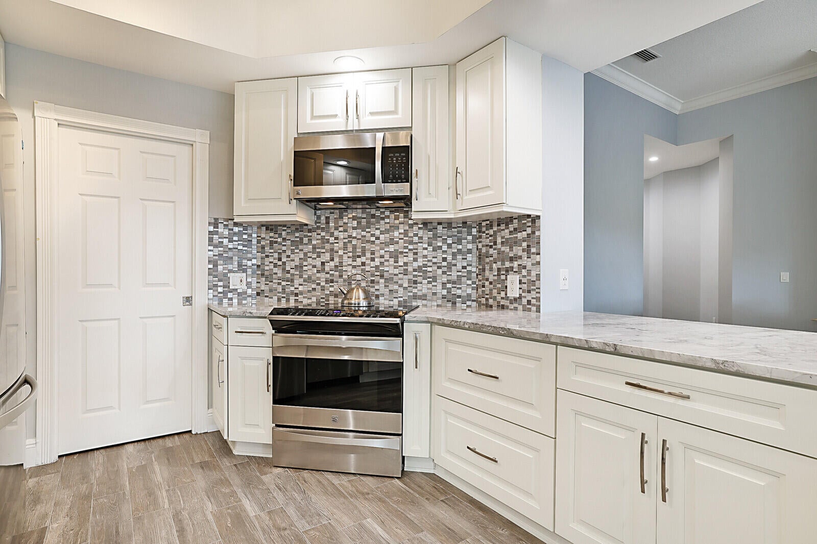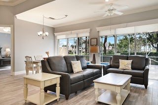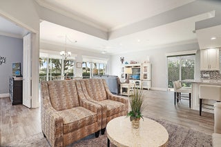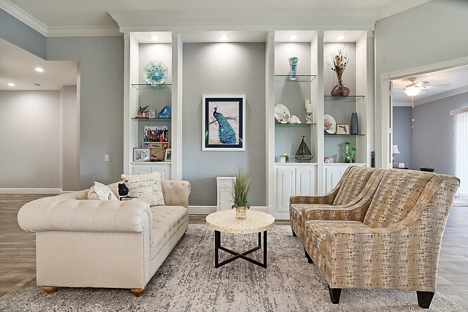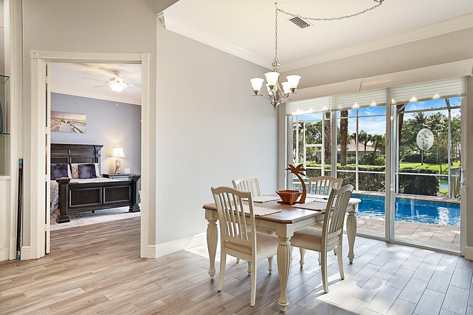 Welcome to this exceptional 3-bedroom plus den, 2-bathroom, single-family pool home in the prestigious Isles at Palm Beach Gardens. Built by Divosta in 2002, this Oakmont model sits on a corner lot and offers direct lake views and high-end upgrades throughout. The spacious open concept great room features soaring 12-foot ceilings, custom built-ins, elegant wood-look tile and crown molding. The chef's kitchen is beautifully designed with white cabinets and granite countertop. The spa-like master bathroom includes dual solid wood vanities, a tiled walk-in shower with upgraded hardware, and a separate soaking tub. Both secondary bedrooms are generously sized and have upgraded fixtures. The versatile den/office boasts is an ideal workspace.This home also boasts a brand new air conditioner (April 2025) and a central vacuum system. This stunning home features a screen-enclosed heated saltwater pool and spa, allowing you to enjoy year-round outdoor relaxation in comfort. The oversized covered patio, complete with electric awning is perfect for entertaining. Sliding glass doors lead to a side yard, perfect for outdoor grilling under a brand new (2025) arbor and lush tropical landscaping. With a perfect blend of elegance and tranquility, this property is a rare gem in a sought-after location. The Isles at Palm Beach Gardens offers resort-style amenities, including a lakefront clubhouse, heated pool, fitness center, tennis and pickleball courts. The monthly HOA fee covers cable, high-speed internet, ADT home security monitoring, lawn maintenance, and roof cleaning every five years. Ideally located in the heart of Palm Beach Gardens, this home is just minutes from The Gardens Mall, fine dining, world-class golf courses, pristine beaches, I-95, and PBI Airport. This home is the perfect place to embrace a relaxed lifestyle while still being close to all that Palm Beach Gardens has to offer. Make this your new home and enjoy the exceptional amenities and beautiful surroundings!