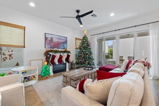 Set within Alton's sought-after ''triangle'' green space, this exceptional residence enjoys a rare sense of privacy, with expansive open green areas creating a peaceful buffer from neighboring homes. The home features three spacious en-suite bedrooms, along with a versatile den that can easily be converted into a fourth bedroom, offering flexibility to suit your lifestyle. Tucked away yet just moments from the clubhouse, Town Center, and resort-style amenities, the location delivers the perfect balance of serenity and convenience.The heart of the home is a stunning chef's kitchen, anchored by an oversized quartz island and enhanced by custom built-in cabinetry ideal for both everyday living and effortless entertaining. Bright, open living areas flow seamlessly, creating a welcoming and adaptable space. The main residence features three bedrooms plus a spacious den that can easily convert to a fourth bedroom, home office, or private gym. Adding to the home's versatility is a private casita apartment located above the three-car garage, complete with a full kitchen, bedroom, full bath, and in-unit washer and dryerperfect for guests, extended family, or an income-producing opportunity. Enjoy quiet mornings and relaxed evenings on the charming front porch, complete with a porch swing, while embracing the walkable lifestyle Alton is known for. With thoughtful design, flexible living options, and a prime yet private setting, this home truly stands apart.