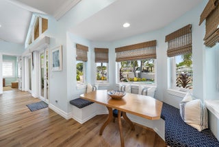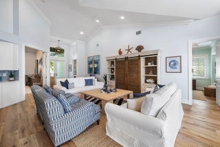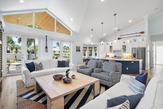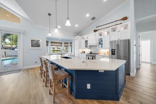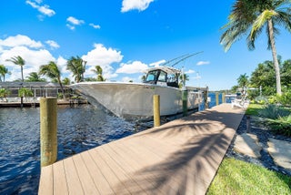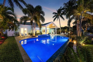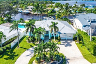 Discover refined coastal living in this beautifully updated 4-bedroom, 3-bath CBS Key West-inspired waterfront home, ideally situated in the heart of Jupiter. Thoughtfully renovated, the home features dramatic vaulted and coffered ceilings, Bahamian-style ceiling fans, and sun-filled living spaces that create an inviting, relaxed atmosphere designed for effortless coastal living. The open-concept kitchen is both stylish and functional, offering crisp white wood cabinetry, quartz countertops, stainless-steel appliances with a gas range, and a charming built-in breakfast nook with serene views of the pool. A desirable split-bedroom layout ensures privacy, while upscale touches throughout include plantation shutters, crown molding, recessed lighting, and custom window treatments.French doors open to a covered, vaulted patio accented by a tongue-and-groove cypress ceilingan ideal space for hosting or unwinding. Outdoors, enjoy the heated infinity-edge pool and spa surrounded by mature palms and lush tropical landscaping. Boating enthusiasts will appreciate the home's 70 feet of waterfront, private 50-foot dock with a 16,000-lb lift, and direct ocean access with no fixed bridges. Additional features include impact windows, a durable metal roof, dual-zone A/C with Nest thermostats, a camera-equipped security system, an immaculate two-car garage, and a circular paver driveway. Tucked away on a quiet street near the canal entrance, the property offers peaceful views of the Loxahatchee River and the benefit of no HOA. Sophisticated coastal-contemporary style furnishings included. Conveniently located near Jupiter's renowned dining, marinas, shopping, beaches, and the Jupiter Inlet, and zoned for top-rated Palm Beach County schools, with easy access to PBI Airport. This exceptional waterfront home delivers the ultimate tropical lifestyle with true ocean accessan extraordinary opportunity to enjoy all that Jupiter has to offer.
