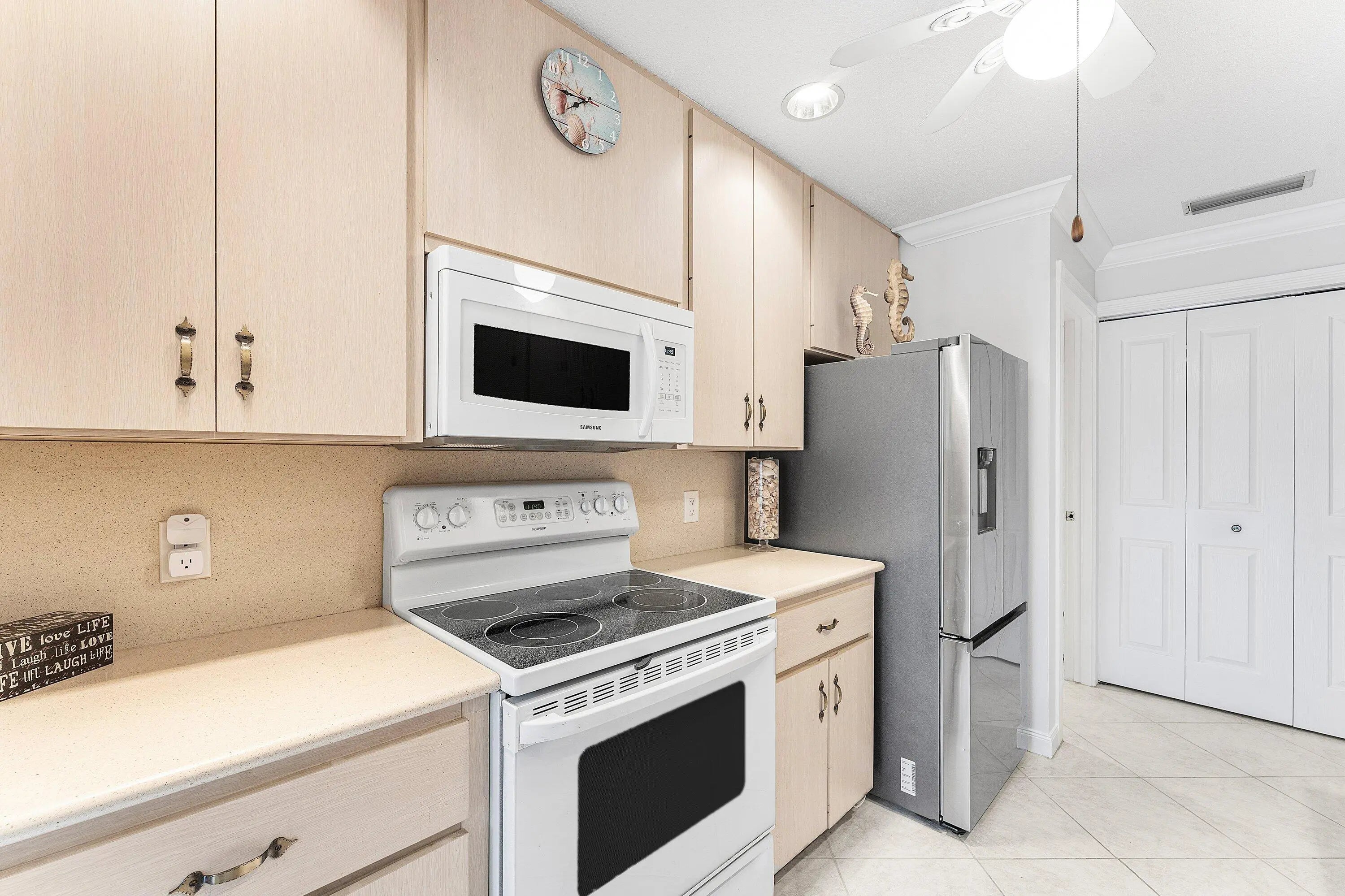 Don't miss the 3D Virtual Walk Through... Welcome to this beautifully maintained DiVosta-built CBS villa, perfectly suited for both full-time living or seasonal escapes. This charming 2-bedroom, 2-bath residence features a desirable split floor plan, offering two private ensuite bedrooms for comfort and privacy. At the heart of the home is a spectacularly huge screened lanai, a wonderful and secluded outdoor living space, accessible through four sets of sliding glass doors from both bedrooms, the living room, and the kitchen. Combined with multiple skylights, these sliders fill the home with an abundance of natural light, creating a bright and airy coastal ambiance throughout. The updated kitchen is both functional and inviting, featuring Silestone countertops, a new refrigerator, and