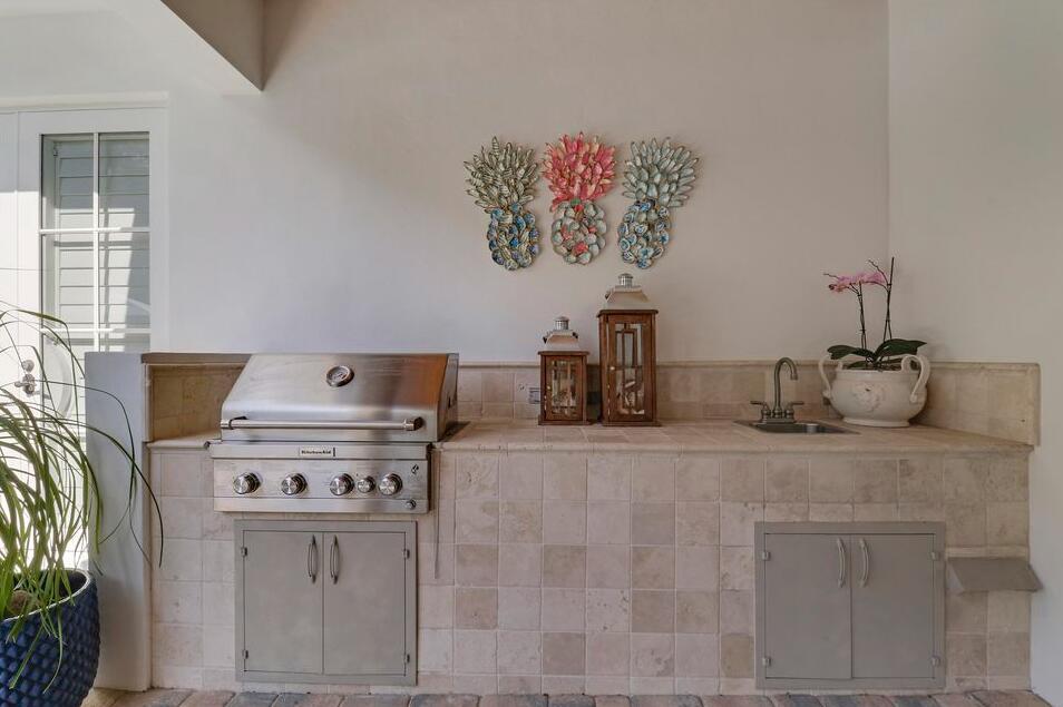Auto Sprinkler, Built-in Grill, Covered Patio, Open Porch, Outdoor Shower, Summer Kitchen