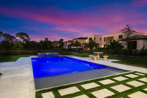 Welcome to this exceptional 2023 constructed residence in the highly sought-after community of Jupiter, Florida. This luxurious 5-bedroom, 5-bathroom home showcases premium finishes and thoughtful design throughout. The lavish primary bedroom and spa-like bath are conveniently located on the main floor, offering a private retreat with modern finishes and generous space. Expansive living areas provide the perfect setting for both entertaining and everyday living, while breathtaking wide lake views overlook a brand-new pool, creating a tranquil and picturesque backdrop. Ideally located near top-rated schools, premier dining, shopping, and entertainment, this stunning property delivers the ultimate in upscale coastal living.
