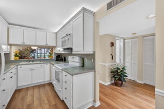 Rare first floor - corner unit in the centrally located Keystone Condo at Indian Creek. Features panoramic golf course and water views from covered screened patio. Walk out to the course from your home! Immaculate home with excellent separation between the primary bedroom and guest bedroom with both located on the first floor. Updated kitchen and breakfast nook with additional storage cabinets. Walk to community pool & clubhouse. Short distance to shopping, casual and fine dining, Beaches minutes east. I-95 and turnpike minutes away. A MUST SEE!