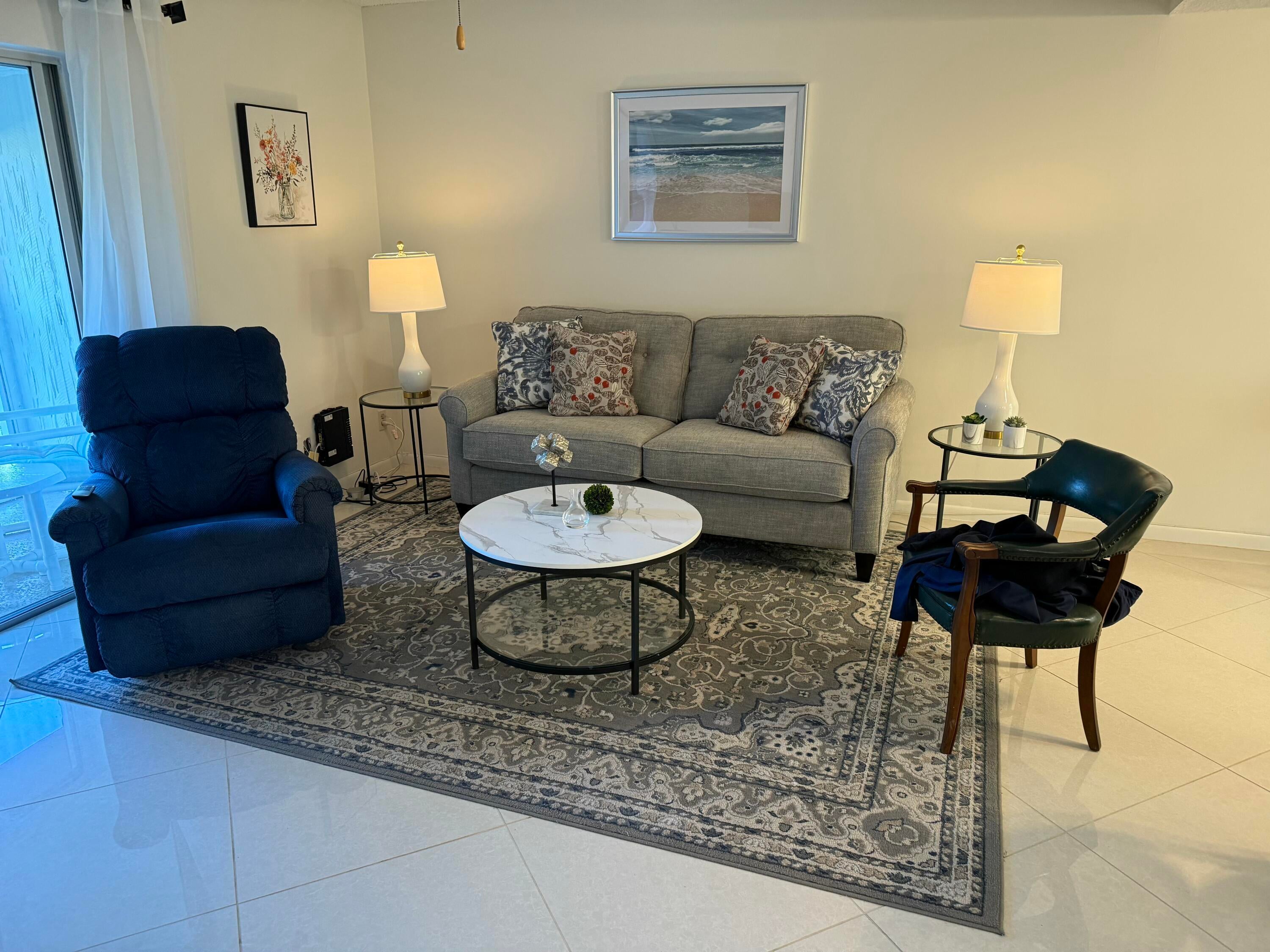 Welcome to Little Club, a serene and vibrant 55+ community nestled in Jupiter, FL, adjacent to the lush beauty of Jonathan Dickinson State Park. This beautifully furnished 2-bedroom, 1-bathroom second-floor condo offers the perfect blend of tranquility and activity. The unit features stunning tile flooring throughout, a modern kitchen, and a lovely screened-in patio where you can enjoy views of nature. Little Club residents enjoy a host of amenities, including a heated pool, pickleball, tennis, bocce ball, a 9-hole golf course, and a clubhouse with social events and a well-stocked library. The maintenance fee covers Bluestream fiber optic TV and WiFi, water, building insurance, and all lawn and amenities upkeep.