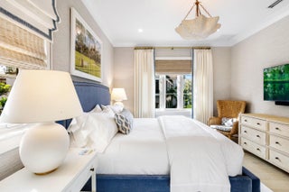 Perfectly positioned on the 18th hole in The Bear's Club, this 4-bedroom, 4.1-bath golf villa meets effortless luxury living. Completely reimagined by a premier Palm Beach County builder and offered fully furnished with exquisite designer interiors by Pineapples & Palms of Jupiter. Sun-filled spaces feature custom cabinetry, Wolf and Subzero appliances, Waterworks fixtures, Dolomite marble in the spa-like primary bath, tongue-and-groove ceilings, shiplap walls, Starke carpets, and curated designer wallpaper throughout. Every bath has been thoughtfully redesigned with elegant details. Step outside to your private pool overlooking manicured fairway and lake views--an elegant, turnkey villa in one of Jupiter's most exclusive communities.