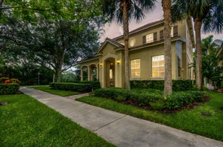 Move-in ready home in Abacoa's Canterbury Place! This beautifully maintained 5-bedroom, 3.5-bath residence features a rare first-floor owner's suite, an open floor plan, and abundant natural light-ideal for modern family living and entertaining.The open-concept kitchen offers granite countertops, a large center island, ample cabinet storage, and a breakfast nook that flows seamlessly into the living and family rooms. Nearly the entire home features real wood flooring, adding warmth and an overwhelming sense of luxury throughout.Upstairs are spacious bedrooms, perfect for children, guests, or home offices, and a fourth bedroom with an en-suite bathroom, ideally situated as a secondary primary bedroom. The oversized first-floor primary suite includes his-and-hers walk-in closet and a spa-style bathroom with a Jacuzzi tub and walk-in shower. Located on a desirable corner lot, this home features a wraparound front porch, back patio, and a large enough yard for a future custom pool! Enjoy lake views, visiting wading birds, a generous green space ideal for kids and pets, and your own private Butterfly Garden. This family-friendly community offers a clubhouse, and pool just steps away. Top-rated Jupiter schools are directly across the street-an easy walk for elementary and middle school students, and zoned for the coveted Jupiter High School. Minutes to beaches, shopping, dining, golf, marinas, and Palm Beach International Airport. A rare opportunity to own in one of Jupiter's most sought-after neighborhoods.