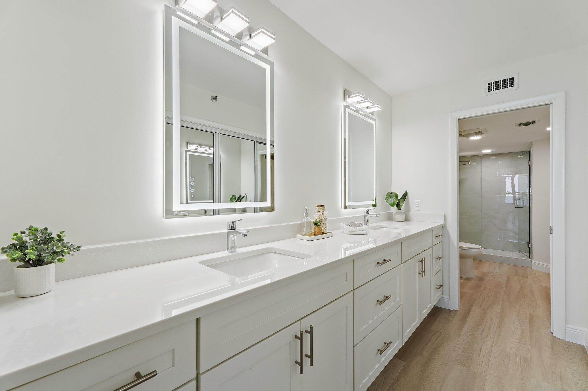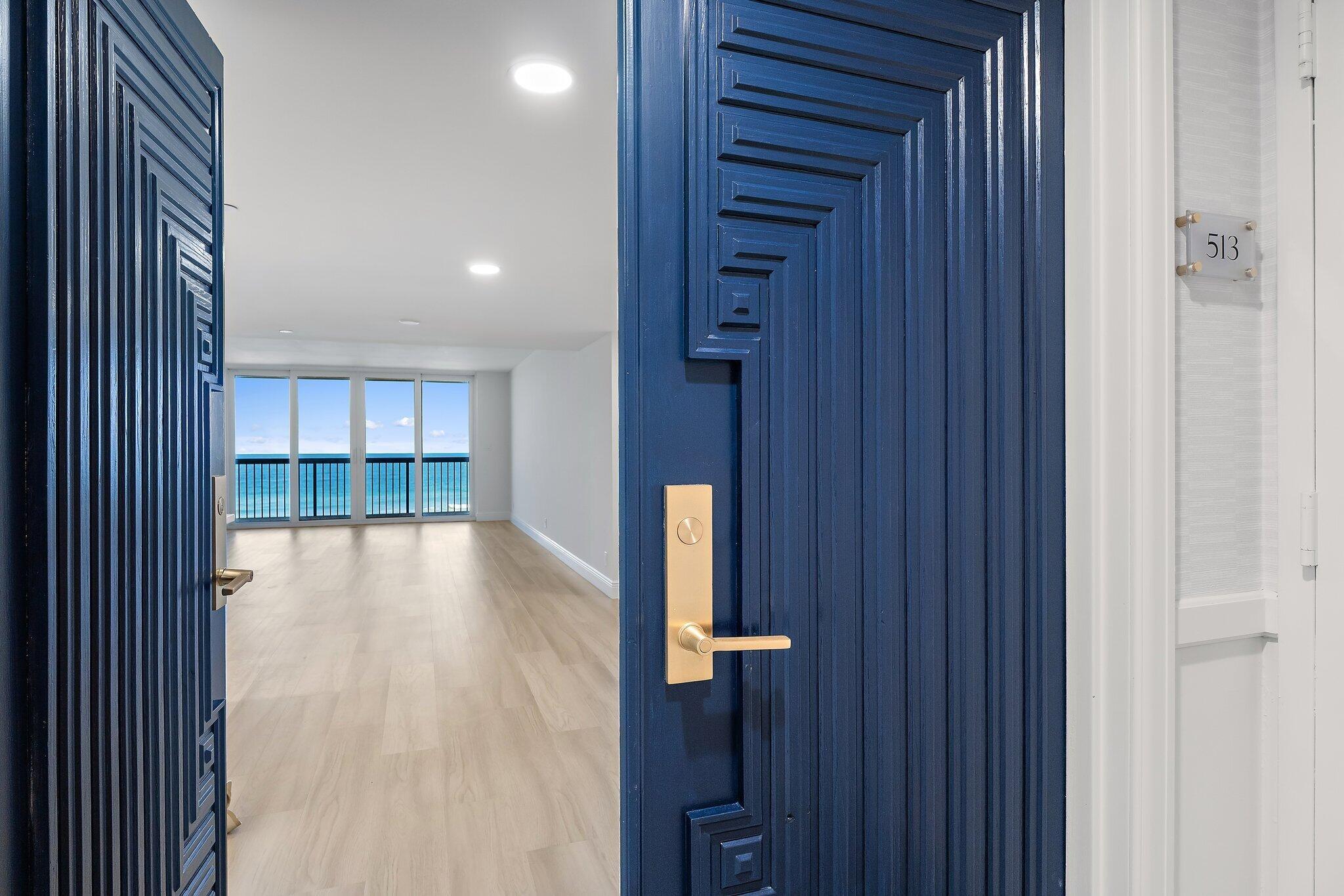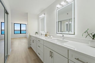 Endless ocean views define this fully remodeled 5th-floor oceanfront residence at Seawatch on Jupiter Island. The open living area features luxury vinyl flooring, brand new full impact sliding glass doors, and a beautifully updated kitchen with quartz counters, stainless steel appliances, and a built-in bar perfect for entertaining. Enjoy sunrise views and ocean breezes from the spacious covered balcony. Both bedroom suites offer private baths and walk-in closets, complemented by a powder bath for guests and an in-unit laundry room. 2 assigned parking spaces and a storage locker. Seawatch offers 24/7 onsite management and security, resort-style amenities incl. a pool, tennis court, fitness room, private beach access and intracoastal common dock. 13% condo dues reduction approved for 2026