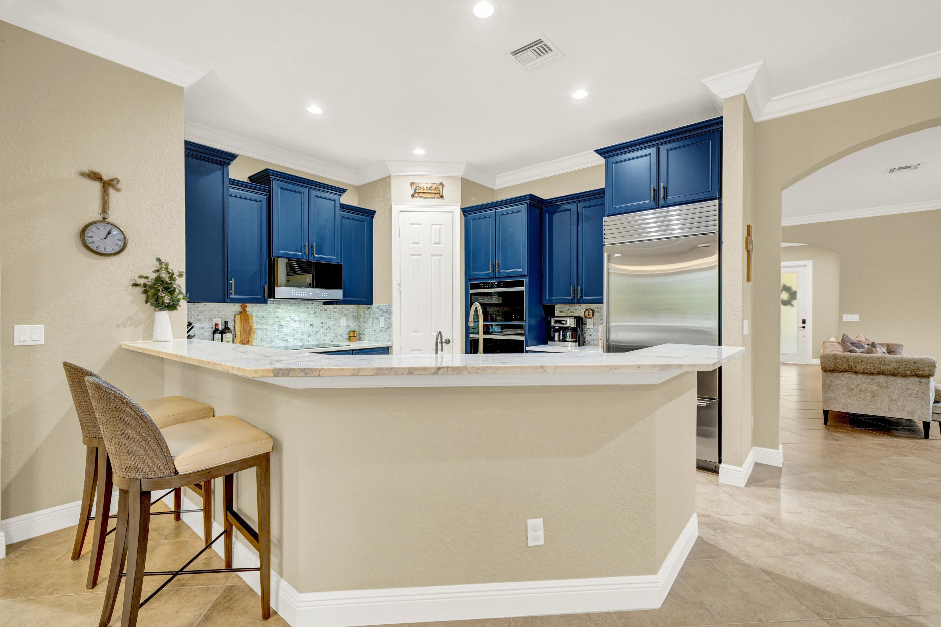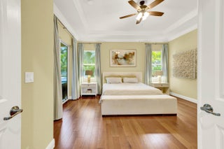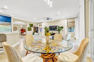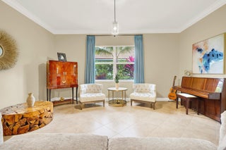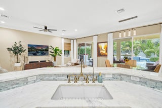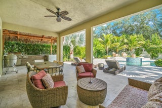 4 Bed, 3 Bath, 3-Car Gar. 1 STORY luxury home w/ DREAMSCAPE backyard on 1/3 acre in amenity rich, Rialto. 2015 built, then 2023 saw a resort style heated pool, champagne spa and Coyote outdoor kitchen added & surrounded by nearly 2k sq ft of leathered marble, synthetic turf and professionally designed & lit landscaping truly creating a private paradise. Inside, a floor plan (in pics) you'll never outgrow with 11' ceilings, flexible living spaces, large, private bedrooms & coveted brands incl. Sub-Zero/Wolf/Cove, while matching updates of fixtures and finish can be found throughout. ''Must Haves'' include - a guest en-suite/cabana bedroom, dining room seating 8-10, Living Rm + Family Rm., Walk-In Pantry, spa-inspired master bath & HUGE walk-in closet. All across from 94 acre Jupiter Comm. PPresenting a 2015 built, 4 Bedroom, 3 Bath, 3 Car Garage DREAM HOME with IMPACT GLASS and luxury woven through every inch, inside and out. On over one third of an acre in Rialto's Estates Collection, you'll find this sought after Monterra floor plan updated with brands synonymous with luxury such as Sub-Zero, Wolf & Cove then paired with a backyard dreamscape brought to life in 2023 with professional design and without compromise. The backyard includes nearly 2,000 sq. ft. of Diana Royal leathered marble pavers hosting a nearly 15,000 gallon heated pool with champagne spa, 12' sunshelf, a tiki hut adjacent to the covered patio equipped with a spotless Coyote custom outdoor kitchen, all of this is surrounded by synthetic turf and manicured palms lit by commercial grade lights. From the curb, the home impresses with Mediterranean style and a true covered porch, 3 car garage and mature landscaping. A new frosted glass door invites you inside where you are welcomed into the foyer by 11' ceilings, crown moulding, immaculate interiors and your favorite scent, subtly diffused into the air via Aroma360's VanGogh HVAC units. At left, find a large guest bedroom, en-suite which boasts a capable closet, nearly floor to ceiling windows and a bathroom with a new frameless glass shower enclosure, a modern navy blue vanity topped with quartzite and finished with Kingston English Country Antique Brass fixtures, all upgrades here were matched throughout the home. This bathroom doubles as the cabana bath with a new impact rated door with integrated blinds and a landscaped stone path leading to the backyard paradise. Next, the living room and dining room, both spaces enjoy crown moulding and allow flexibility needed to host life's most grand celebrations The dining room is elevated by an accent wall dressed in a powder blue Medallion Damask pattern to die for. Ahead, the heart of the home, the kitchen, held to a higher standard, where you'll find familiarity in the, Kingston fixtures, Fireclay sink, quartzite counters and navy blue 42" cabinets hosting top-of-the-line appliances including a Sub-Zero refrigerator, Wolf double wall oven (upper unit is Convection & Steam), Wolf induction cooktop, Cove dishwasher and a Cafe microwave. The walk-in pantry we know is a need, not a want and we check that box, but the best feature, the kitchen overlooks the pool, generous breakfast area and family room (your 2nd living space) so you never miss one of life's special moments. Your backyard is the star of the show and it invites you outside through two sets of sliding glass doors, into a large covered patio adjacent to the Tiki Hut, keeping you safe from the elements. There you will find an outdoor kitchen manufactured by Coyote, a premium, professional grade designer keeping the salt air of South Florida in mind. It includes a Coyote refrigerator, storage, sink, 2 side burners and the grill is equipped with a dedicated RapidSear infrared sear station, Infinity burners, rotisserie and more. The counters and bar are topped with Calacatta Gold, 3D Polished Stoneglass, impervious to UV and red wine. Standing alongside the Coyote is the prized, Blaze 20" cast aluminum Kamado smoker any aficionado would appreciate. The S acre was professionally designed by a landscape & hardscape architect in 2023 focusing on quality, scale and privacy, it is nearly new with every aspect managed from the palm of your hand and built to the highest standards. Undoubtedly this dreamscape will be the backdrop for many, many fond memories with friends and family. Back inside, another spacious full bath with dual vanities & a tub/shower combination serves the main living areas, guest bedroom #2 and guest bedroom #3 both with crown moulding, ample closet space and exotic Brazilian Cherry wood floors (found in all bedrooms 2021). Next, the Master Bedroom, tucked in a private corner of the home through a set of double doors, it features trey ceilings, double crown moulding, a private sliding glass door to the patio and floor to ceiling window coverings. Continue and find a walk-in closet we dare you to try and fill, measuring 14' x 8' with 11' ceilings adjacent to an additional linen closet. The bathroom is spa inspired and you deserve it boasting dual vanities (matched to the entire home) with a makeup station, Royal oversized jetted tub, large frameless glass shower with overhead rain showerhead, shower wand and finally, a separate water closet. This home is completed with an air conditioned 3 car garage with epoxy floors, an additional refrigerator, 40' X 8' of PVC SlatWall and custom cabinets to keep it organized. A spacious laundry room with Quartz countertops, sink and Electrolux high efficiency washer & dryer. Two AC units with in-line Aroma360 Diffusers and Air Scrubbers by Aerus allowing you to breathe easy. Last but not least, a Kinetico whole house water softener and under sink drinking water system. This is truly a one-of-a-kind luxury property in Jupiter's sought after, private and gated community of Rialto. The neighborhood features 484 single family homes in two collections, The Executive with smaller homes and smaller lots, and The Estates the newes