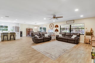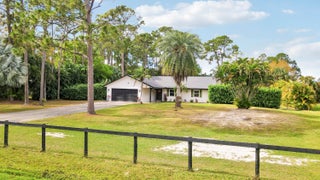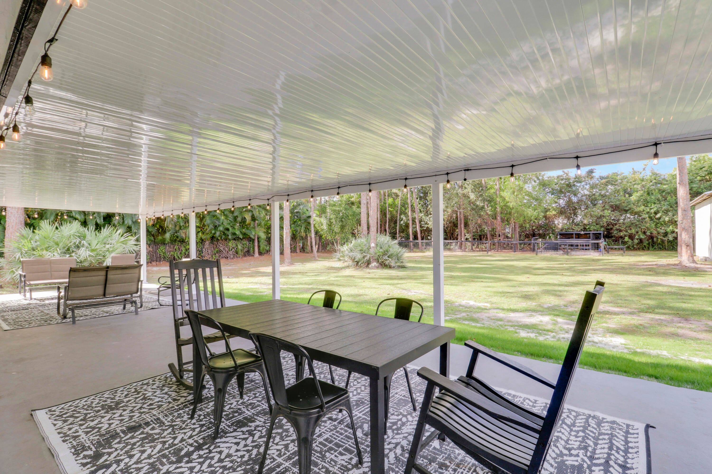 Located on a quiet, dead-end paved road in Jupiter Farms, this well-maintained home offers privacy and modern upgrades. Features include a 3-year-old roof, impact windows, and a newly renovated kitchen. Enjoy outdoor living with a new patio and covered patio roof. The property also includes a 34' x 27' pole barn, ideal for storage, workshop, or recreational use. Conveniently located just minutes from Publix, shopping, and dining.