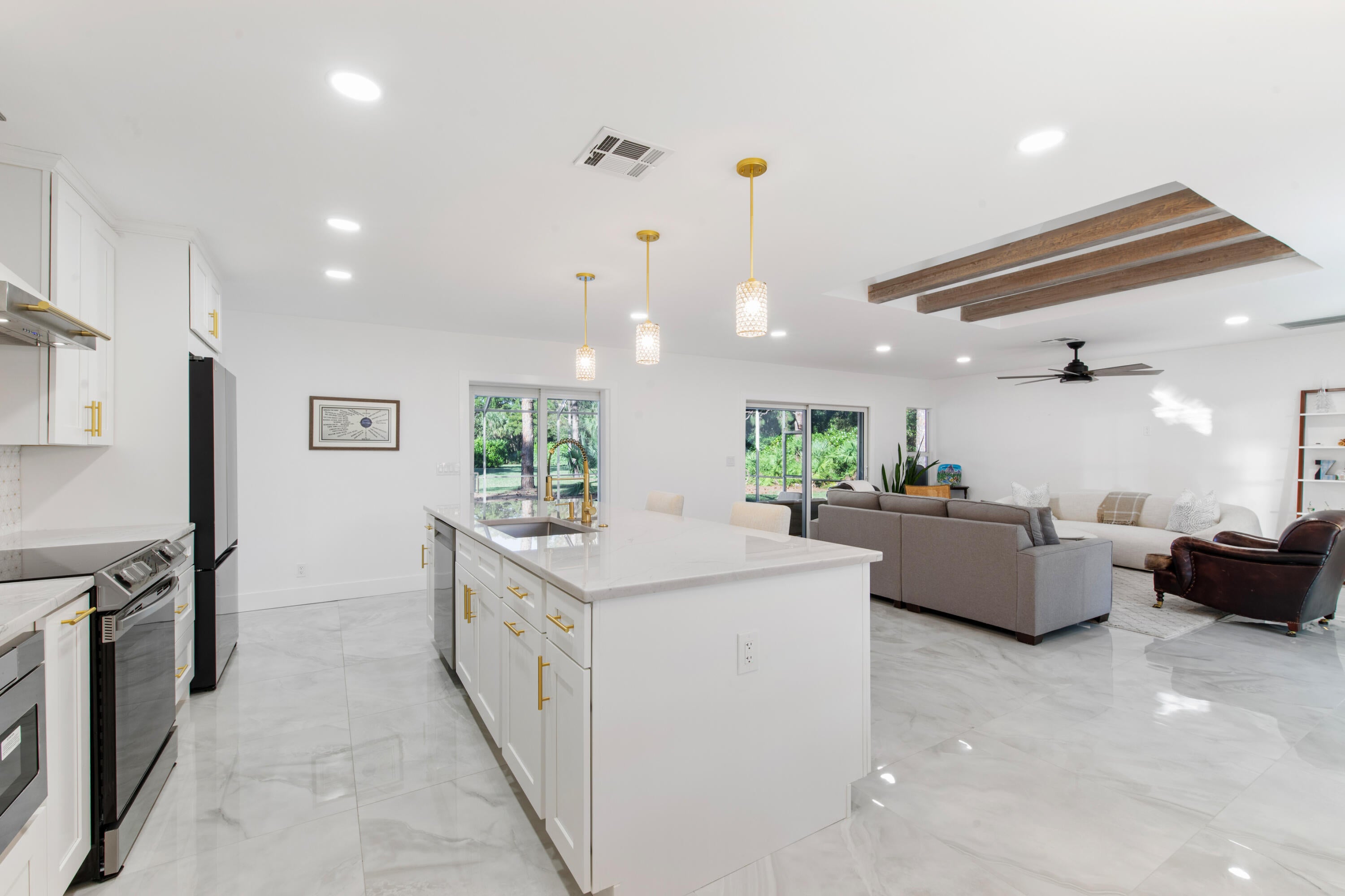 Set on a private 1/2-acre with NO HOA, this COMPLETELY RENOVATED Jupiter home delivers space, freedom, and modern comfort in one of the area's most desirable enclaves. At the heart of the home is a stunning great room where the kitchen, dining, and living areas come together beneath volume ceilings with architectural beam detail, creating an open and airy environment designed for gathering and everyday living. The 4-bedroom split-floor plan is anchored by a retreat-like primary suite, while flexible secondary spaces easily accommodate family, guests, or a home office. Light-filled interiors extend seamlessly to the covered, screened patio and pool, offering a true indoor-outdoor lifestyle just minutes from top Jupiter beaches, boating, golf, and A-rated schools.Behind the scenes, extensive upgrades provide lasting comfort and peace of mind. Improvements include all hurricane impact windows and doors, newer appliances and HVAC system, R-38 insulation with fully insulated ductwork, new pool equipment and filter, a smart irrigation system, and an updated washer and dryer. Each enhancement was intentionally selected to support efficient, low-maintenance living for years to come. With nearly 2,900 total square feet under roof, ample parking, and a spacious lot that offers room to breathe, play, or expand, this property delivers a level of flexibility that is increasingly rare in Jupiter. Free from HOA restrictions and thoughtfully updated throughout, the home presents a unique opportunity to enjoy privacy, space, and modern living in a refined and relaxed setting. Schedule your private home tour today and experience this exceptional property in person. Some images may include virtual staging to help illustrate the home's design vision and layout potential.