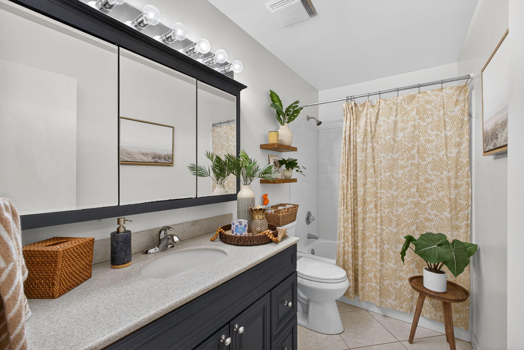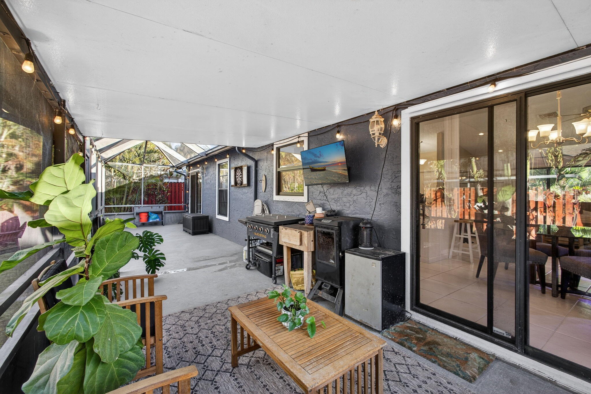 A beautifully updated single-family home in the heart of Jupiter. This gem features spacious bedrooms, renovated master bathroom, and a tastefully upgraded kitchen w/ granite countertops & modern finishes. The open layout is complemented by gleaming white tile floors & cozy electric fireplace. The converted garage offers a versatile space w/ AC and epoxy flooring--perfect as a billiard room, gym, or office. Outside, enjoy a large screened-in porch (10x42)& fenced yard, ideal for relaxing, entertaining, pets & gardening. Add'l features include partial impact glass, a 2023 AC, a 2019 roof, and a washer and dryer. Furniture negotiable. Don't miss out on this beauty!