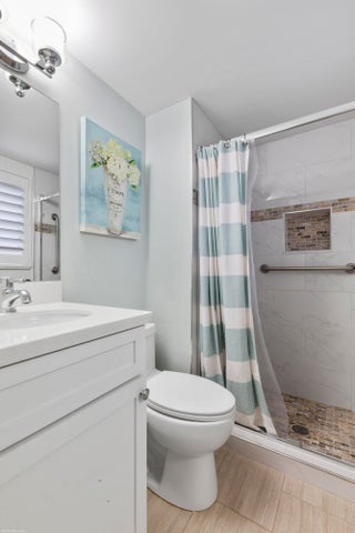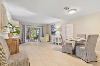 Come live in a peaceful 55 plus community on the north end of Jupiter, Tequesta. This first floor corner end unit with updated kitchen and bathrooms, updated tile throughout. Stainless steel appliances, plantation shutters, and accordion shutters for peace of mind. Lovely green space behind screened in porch. Amenities include 9 hole golf, clubhouse & pool, pickleball, shuffleboard, many social activities for you to enjoy. Close to i-95, downtown Tequesta & close to the beach.