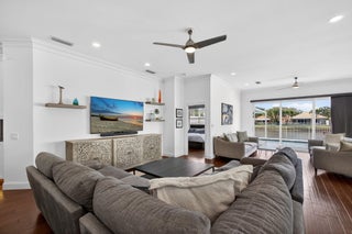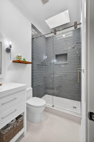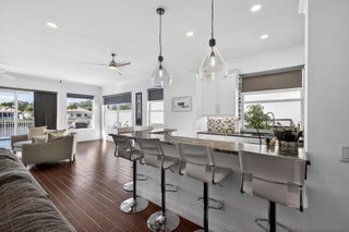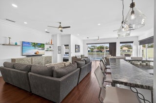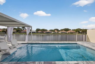 The Hamptons at Maplewood -- one of Jupiter's most sought-after DiVosta-built communities. This beautifully renovated residence offers three bedrooms and two stunningly redesigned bathrooms, blending timeless elegance with modern comfort. A newly redone walkway welcomes you to the front door, opening into an inviting interior highlighted by engineered wood flooring and soaring 10-foot ceilings. From the moment you enter, enjoy serene lake views and a private in-ground pool, creating a perfect indoor-outdoor living experience.The fully updated kitchen features custom cabinetry throughout the home, a butler's pantry with a second refrigerator, and opens seamlessly to the main living areas. The open floor plan with a split-bedroom design is spacious, light-filled, and ideal for both everyday living and entertaining. The primary suite offers two closets and a luxurious, spa-inspired master bathroom, providing a tranquil retreat. Major upgrades include a 2018 roof with hurricane-impact skylights, impact windows, impact entry door, and impact garage door, ensuring peace of mind. The pool and patio were completed in 2020, the AC was replaced in 2024 and includes an air purification system, and the home features no polybutylene pipes. This home is the perfect balance of comfort and style, thoughtfully designed for modern living in an exceptional Jupiter location.