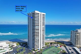 Perched high above the shoreline, Water Glades 22B presents a rare opportunity to own a fully redesigned oceanfront residence with sweeping views of both the Atlantic Ocean and the Intracoastal Waterway. From its 22nd-floor vantage point, this two-bedroom, two-bath home captures an ever-changing coastal panorama, offering front-row seats to sunrise over the ocean and glowing sunset skies over the waterway.The residence opens into a bright, contemporary living environment where walls of glass frame the horizon and natural light fills the space throughout the day. The open living and dining areas flow effortlessly to an expansive wraparound balcony, creating a seamless indoor-outdoor experience and a constant connection to the surrounding water...(SEE MORE)Anchoring the living space is a striking, custom kitchen designed for both form and function. A quartz waterfall island takes center stage, complemented by sleek cabinetry and refined finishes. Premium appliances are integrated seamlessly for a clean, modern aesthetic- making the kitchen as practical as it is visually compelling. The primary suite offers a tranquil retreat with direct balcony access and unobstructed ocean views. A thoughtfully designed closet system provides ample storage, while the ensuite bath delivers a spa-like experience with marble finishes, dual vessel sinks, wall-mounted fixtures, and a frameless walk-in shower featuring built-in seating. Designed with flexibility in mind, the guest suite functions effortlessly as a bedroom, office, or media space. Thoughtfully designed built-ins, tranquil Intracoastal views, and a dedicated workspace create a versatile retreat suited for guests or everyday living. The guest bath continues the home's elevated design with oversized porcelain tile and modern fixtures. Throughout the residence, no detail has been overlooked. Wide-plank porcelain flooring, solid-core doors, custom lighting, and impact-rated glass enhance both style and performance. An in-unit washer and dryerrare for the buildingadds everyday convenience. The wraparound balcony is a defining feature, offering commanding water views in every direction and serving as an extension of the living spaceideal for entertaining or quiet moments overlooking the coastline. Water Glades residents enjoy a full suite of resort-style amenities, including two heated pools, private beach access, fitness center, tennis and pickleball courts, clubhouse, BBQ areas, on-site management, and 24-hour manned security within a pristine oceanfront setting. Situated on the peaceful northern end of Singer Island, the property provides easy access to Palm Beach Gardens, PGA Boulevard, Worth Avenue, and Palm Beach International Airportdelivering a refined coastal lifestyle with exceptional convenience. Elevated oceanfront living with timeless design and unforgettable views.